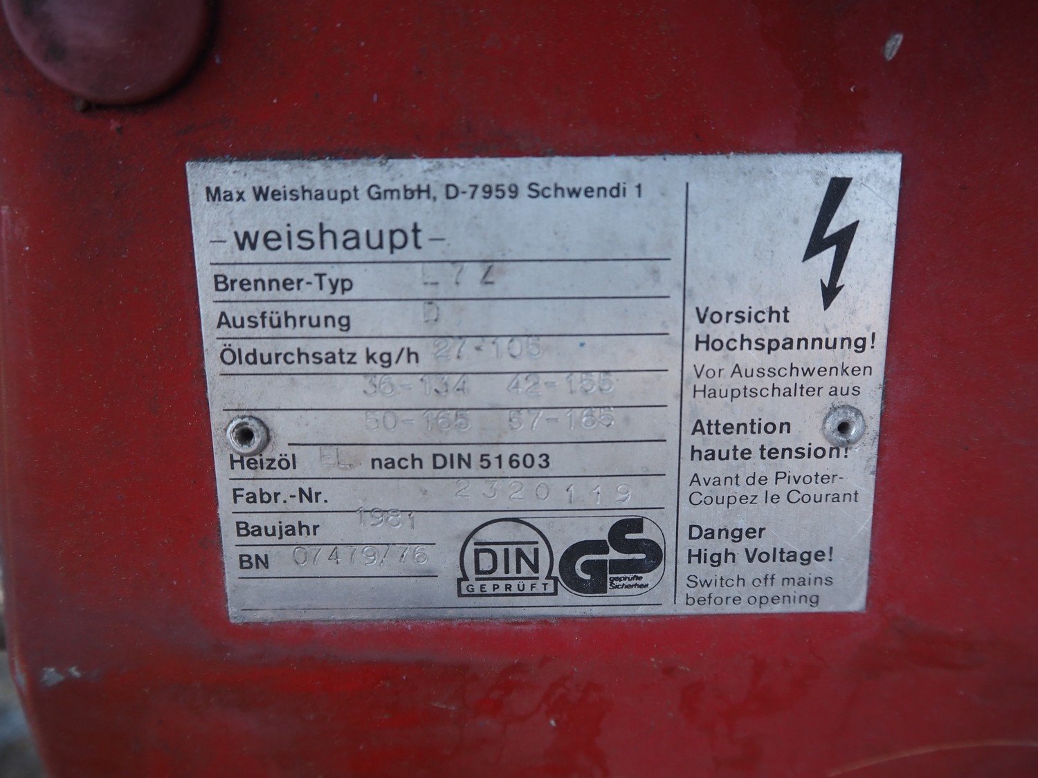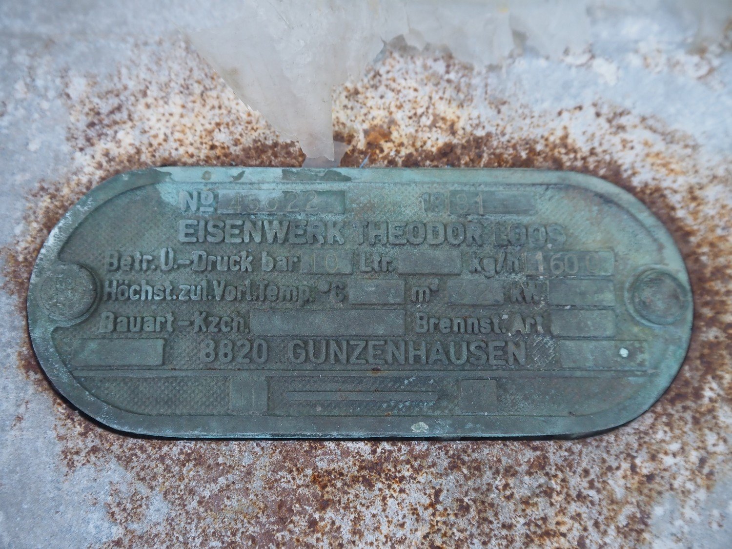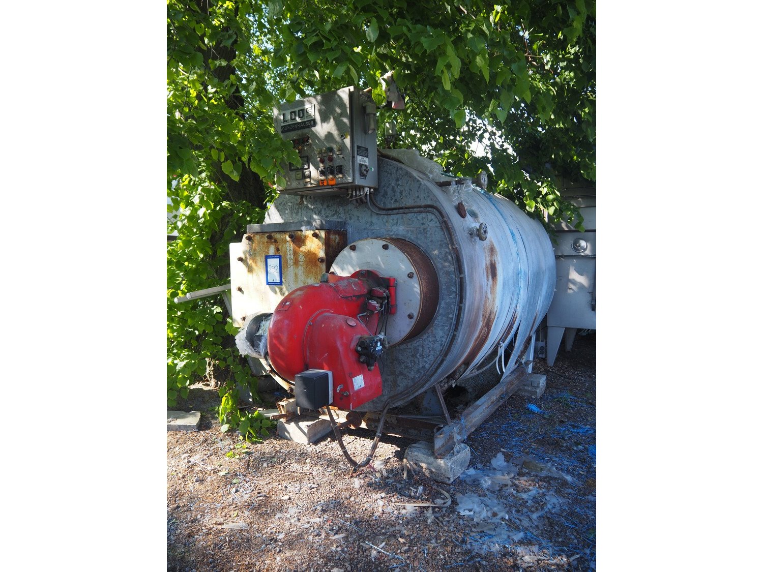Theodor Loos steam boiler, number: 45622, year of construction: 1981, capacity: 1600 kg per hour, Weishaupt burner, type: L7Z, fabrication number: 2320119, year of construction: 1981, dimensions: 3430 mm x 1700 mm x 2250 mm. Technical condition unknown.