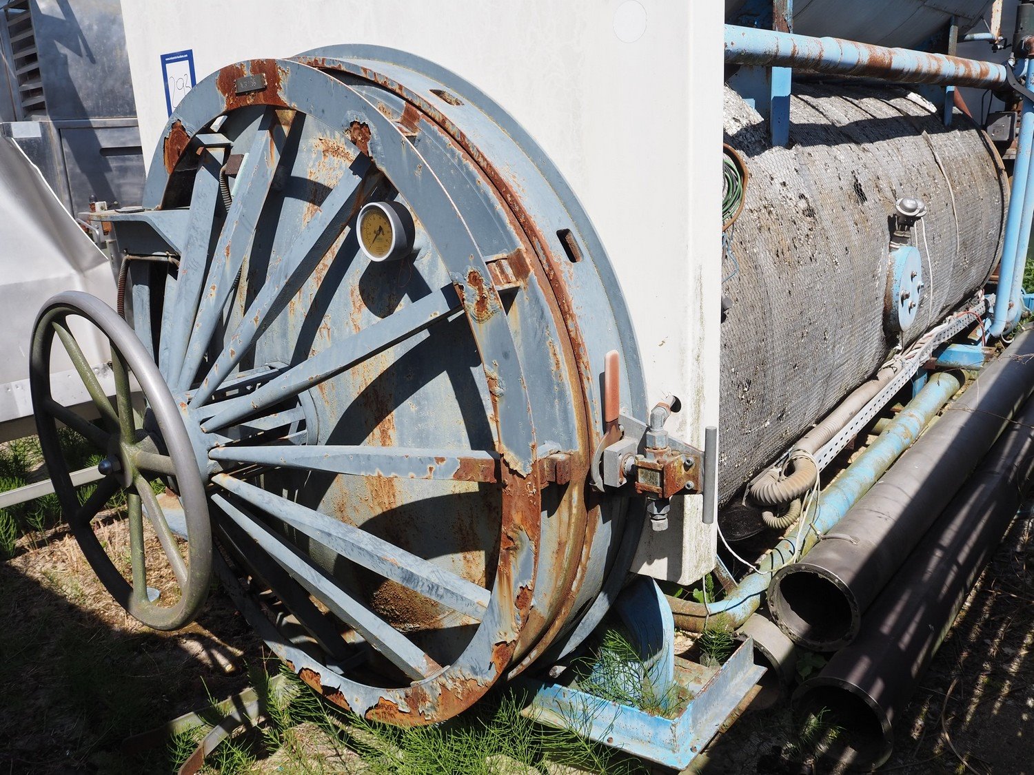 Stock Rotomat autoclave, type: RE 4, fabrication number: 39812-1, year of construction: 1990, volume: 5000 liter, steam heated, dimensions: 5500 mm x 1800 mm x 3100 mm. Including 4 baskets.