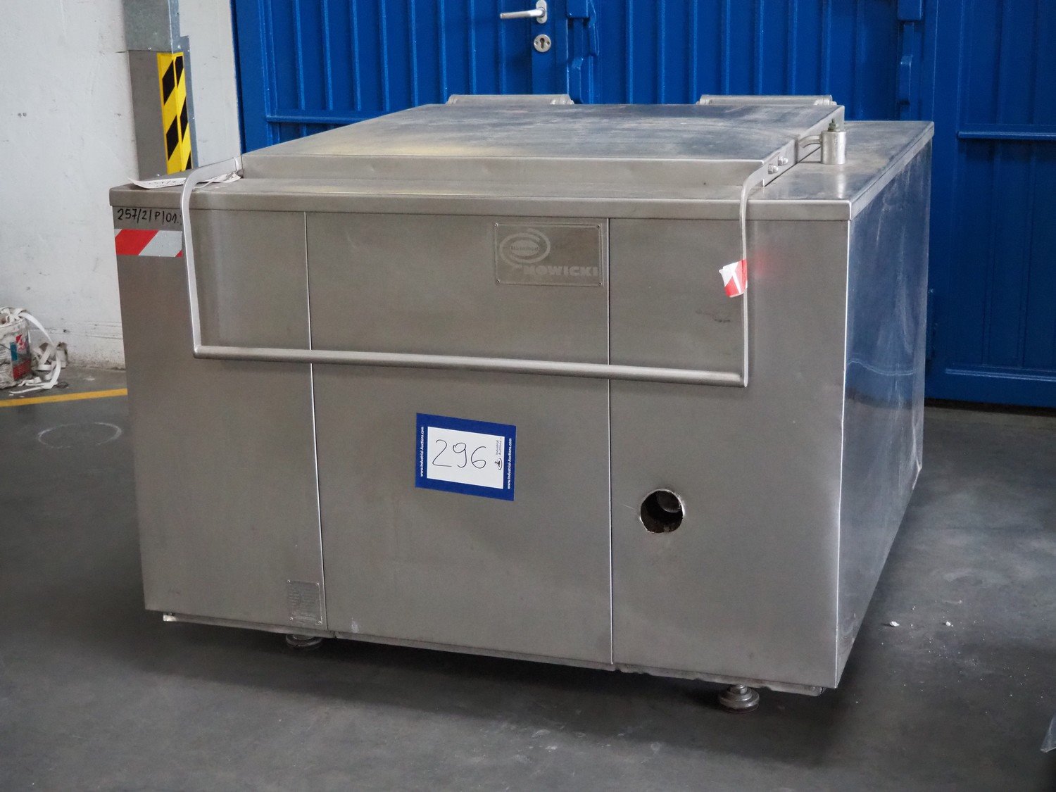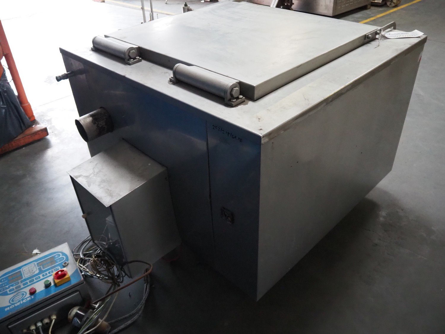 Nowicki cooking vessel, type: KWO-500, fabrication number: 40202042, year of construction: 2002, 220 V, 11-33 kW, weight: 670 kg, capacity: 500 liter, dimensions: 1400 mm x 1400 mm x 1100 mm.