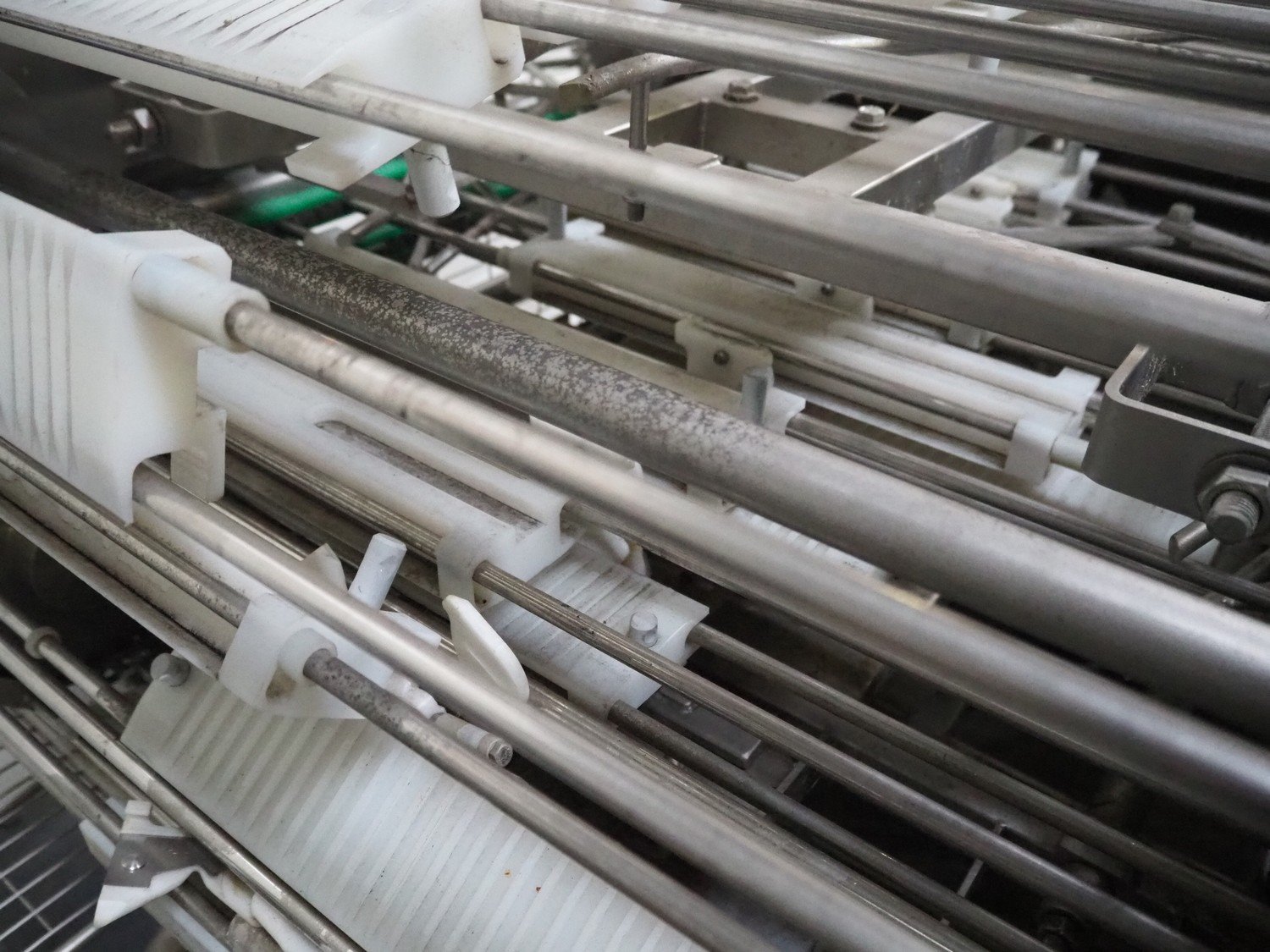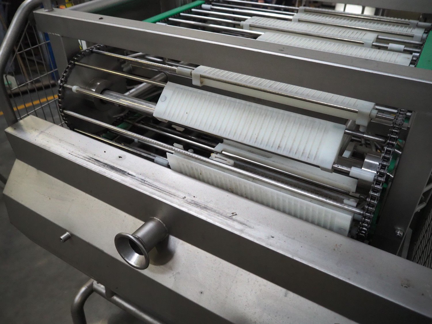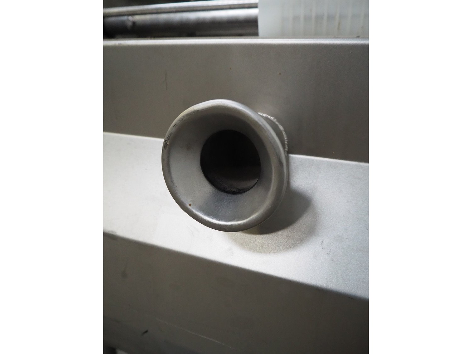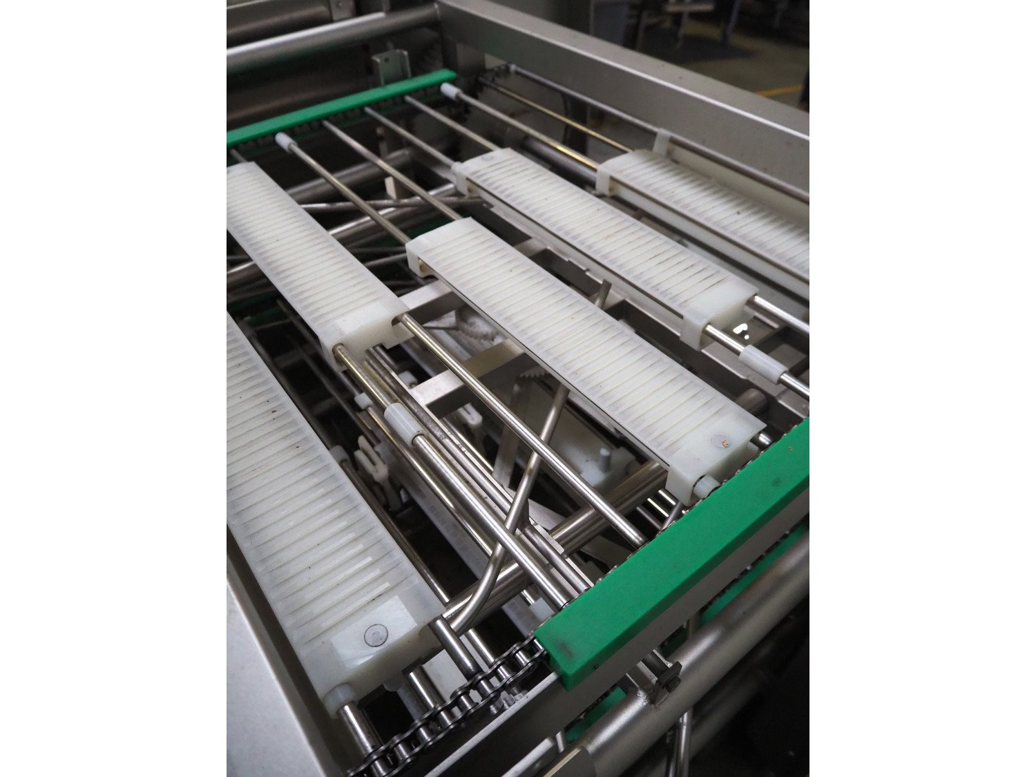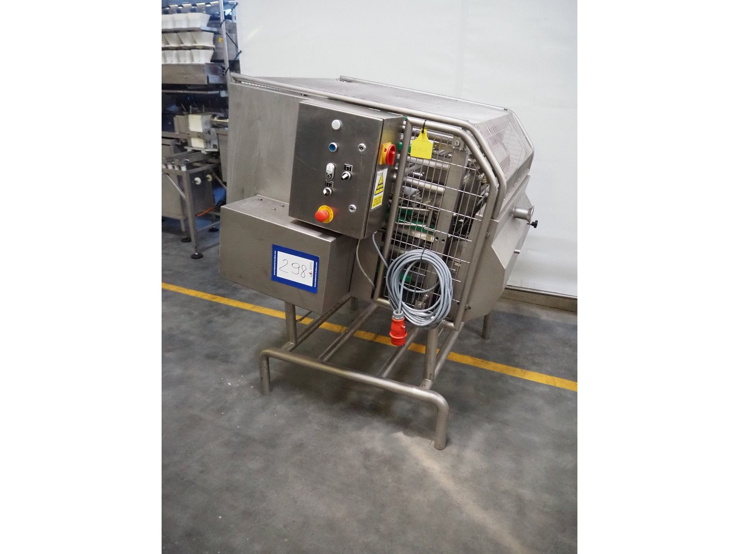SAS Nijal twisting and cutting machine for sausages, machine: Torsadeuse Coupeuse Automatique, type: P10, serial number: 1870706, year of construction: 2006, working width: 700 mm, total dimensions: 1250 mm x 1200 mm x 1500 mm.