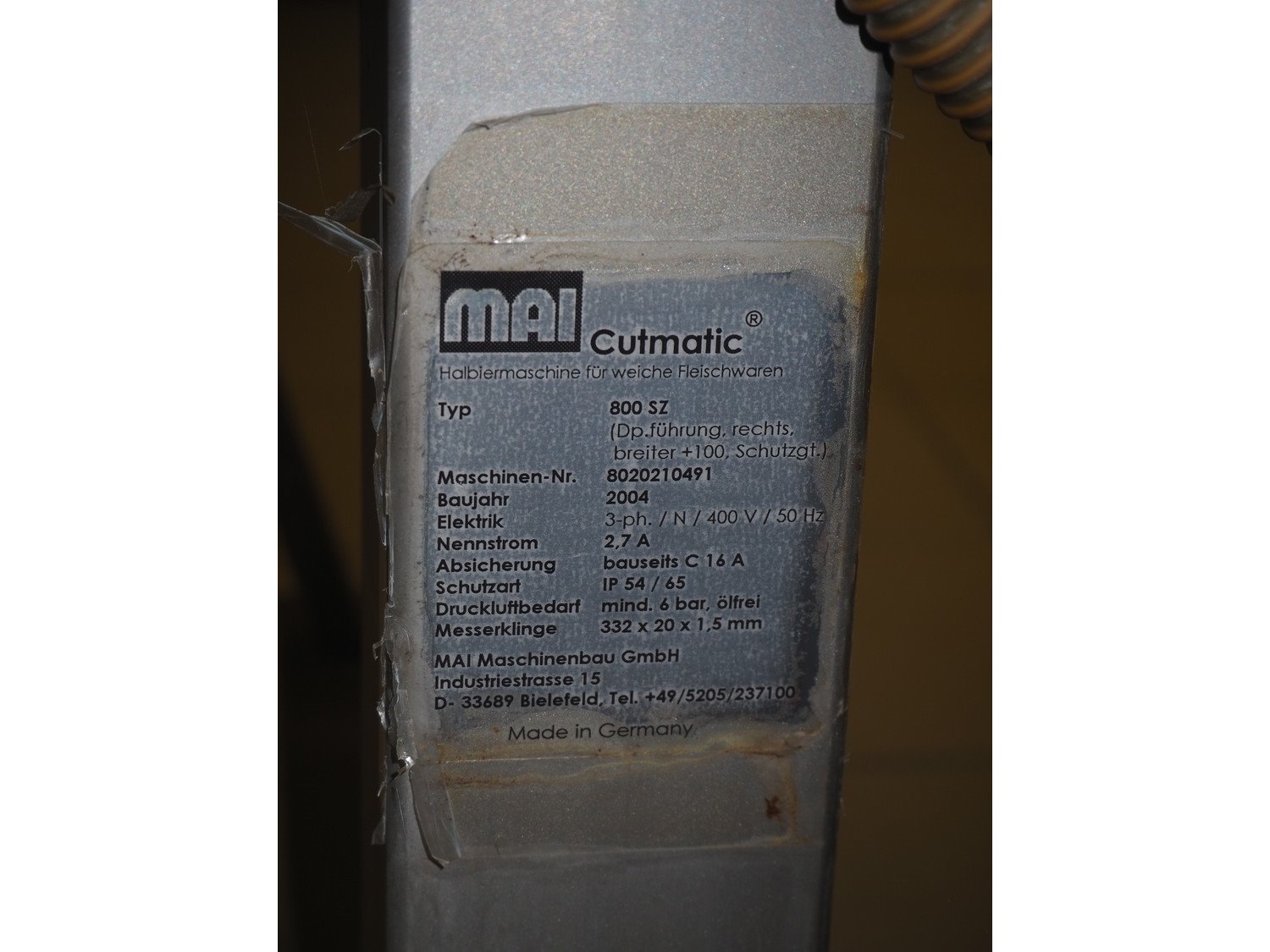 MAI saw, type: 800 SZ, number: 8020210491, year of construction: 2004, 400 V, 3-Ph, 50 Hz, 2.7 A, working width: 980 mm, total dimensions: 1440 mm x 1400 mm x 1550 mm.
