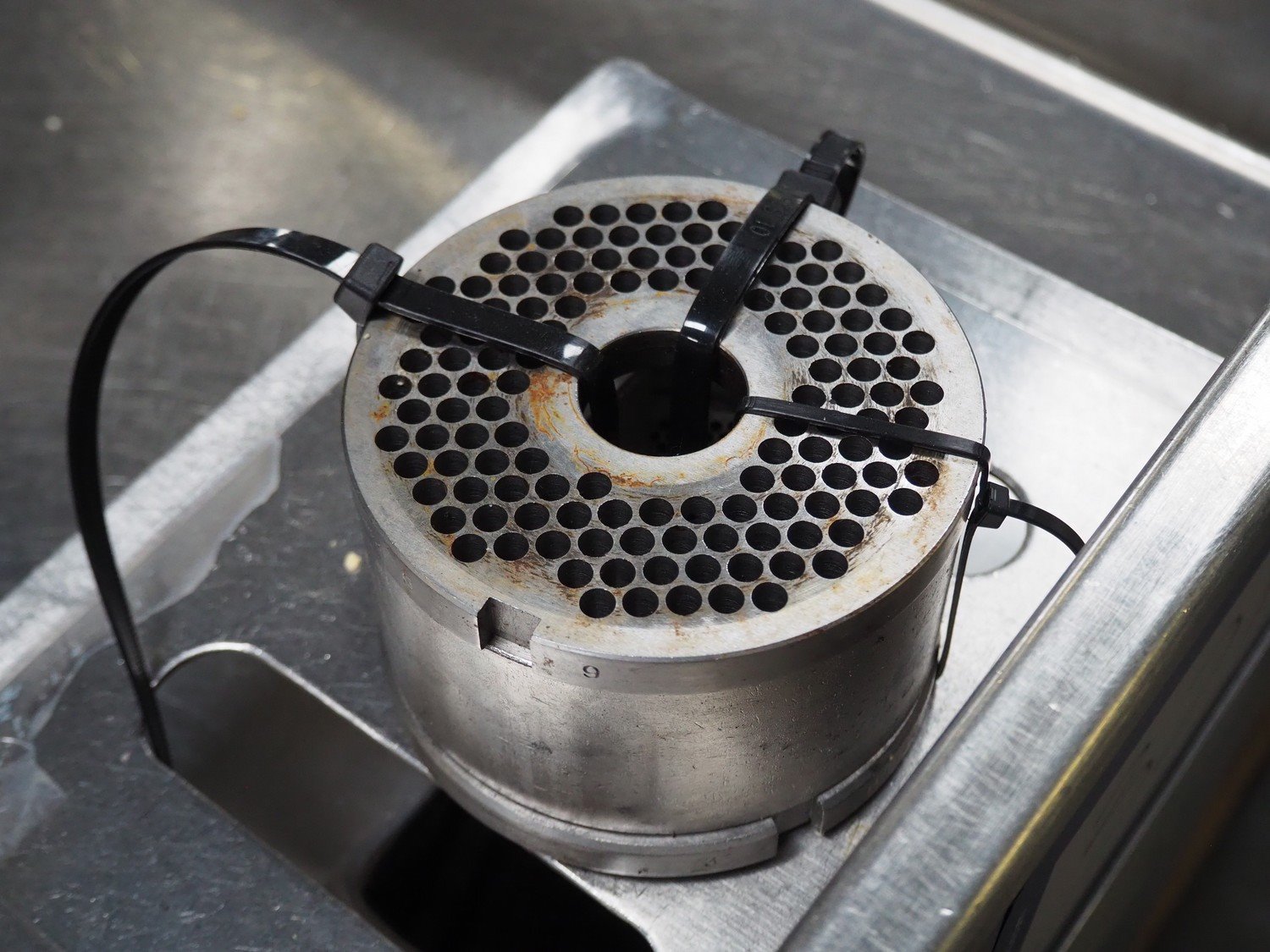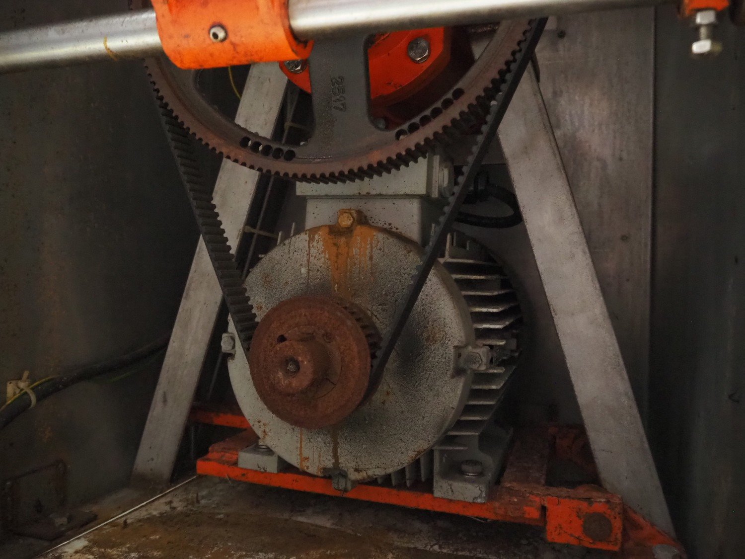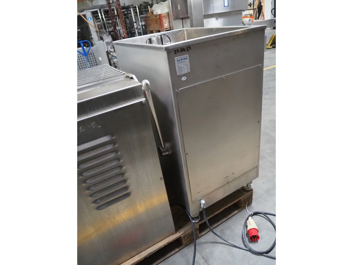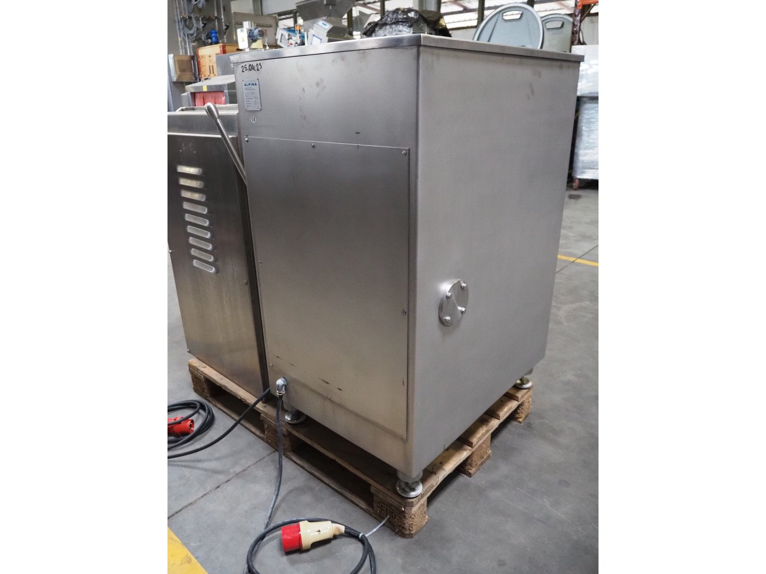 Hoegger Alpina grinder, type: SW 114 N, machine number: 205, 400 V, 3 Ph, 50 Hz, 13 A, plate diameter: 114 mm, total dimensions: 1000 mm x 600 mm x 1300 mm.
