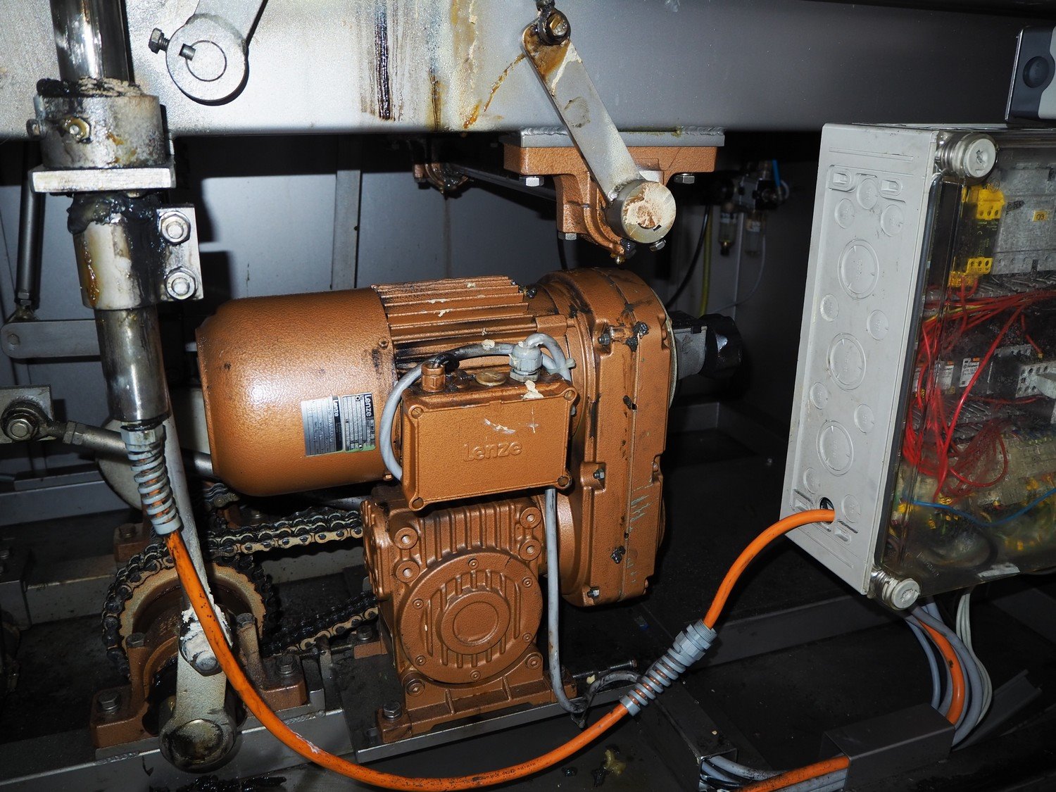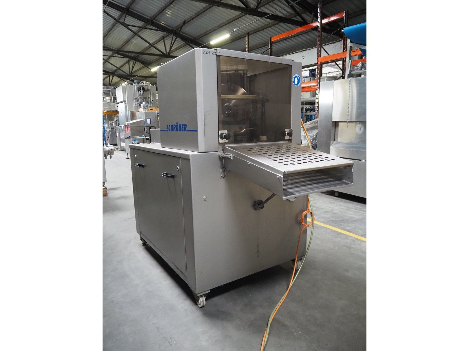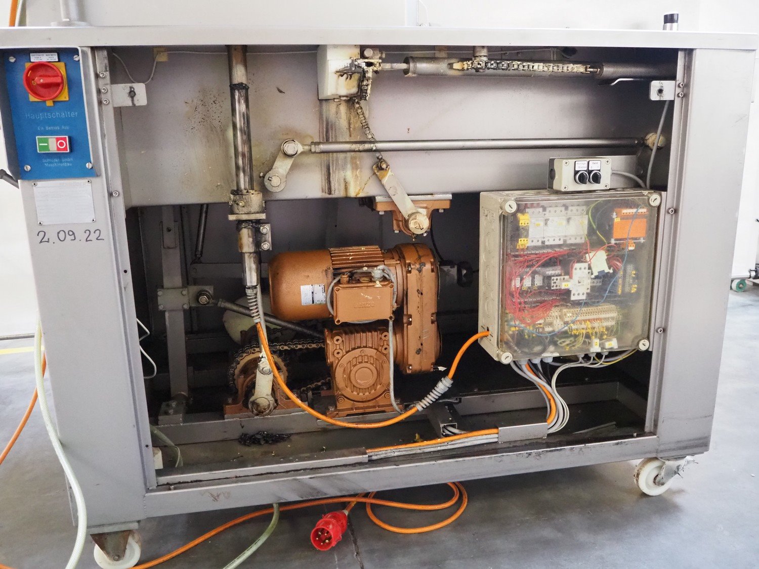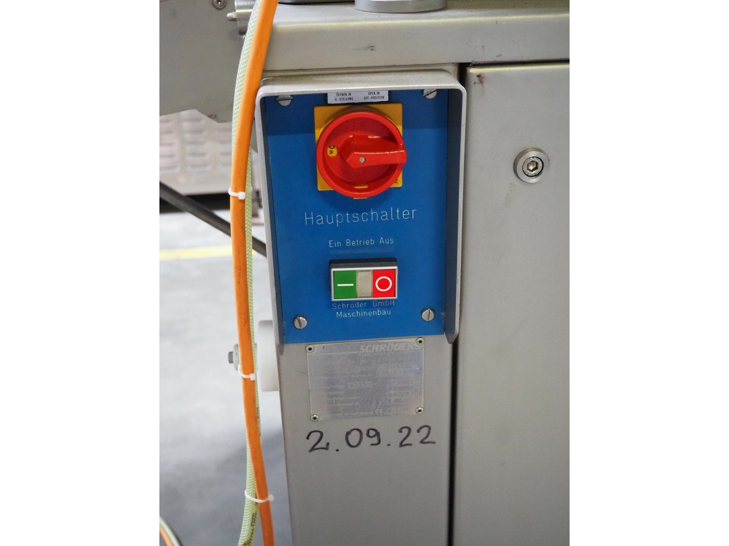 Schröder Maschinenbau GmbH mobile slicer, type: HS 90/400, number: HS 81396, year of construction: 1996, 230/400 V, 50 Hz, 7.3/3.8 A, 2 kW, 6 bar, s/s walking beam, width: 260 mm, total dimensions: 1800 mm x 1200 mm x 1780 mm.