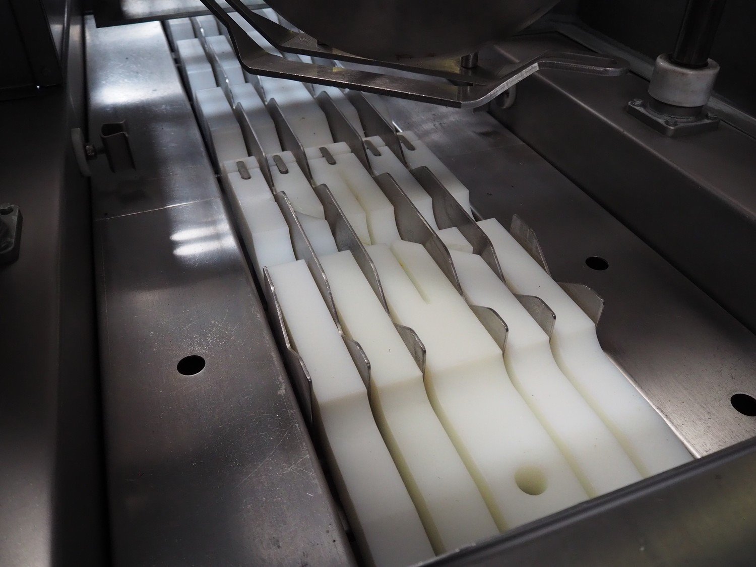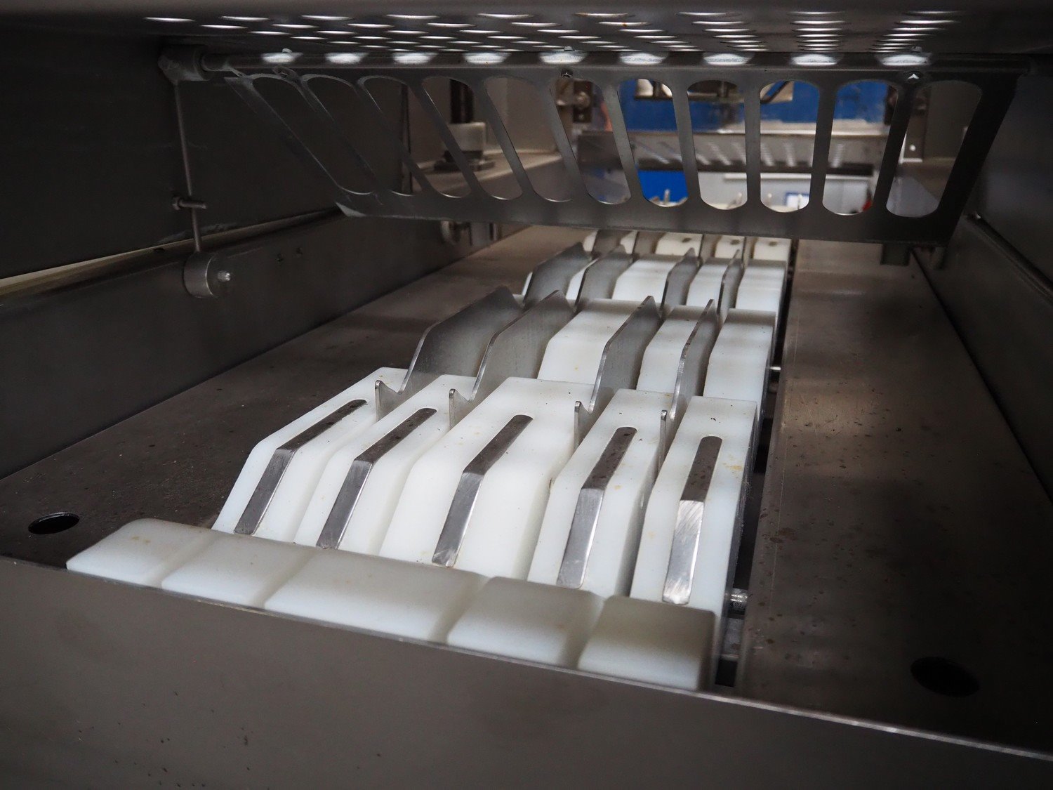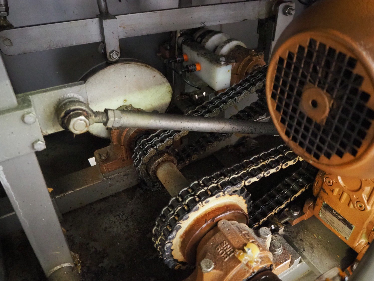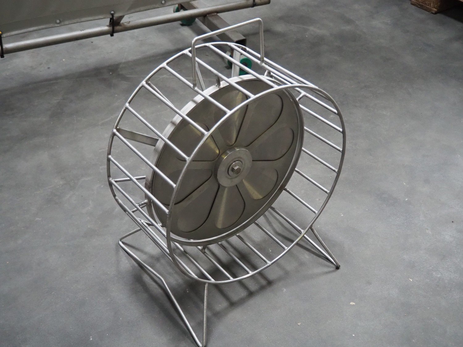 Schröder Maschinenbau GmbH mobile slicer, type: HS 90/400, number: HS 81396, year of construction: 1996, 230/400 V, 50 Hz, 7.3/3.8 A, 2 kW, 6 bar, s/s walking beam, width: 260 mm, total dimensions: 1800 mm x 1200 mm x 1780 mm.