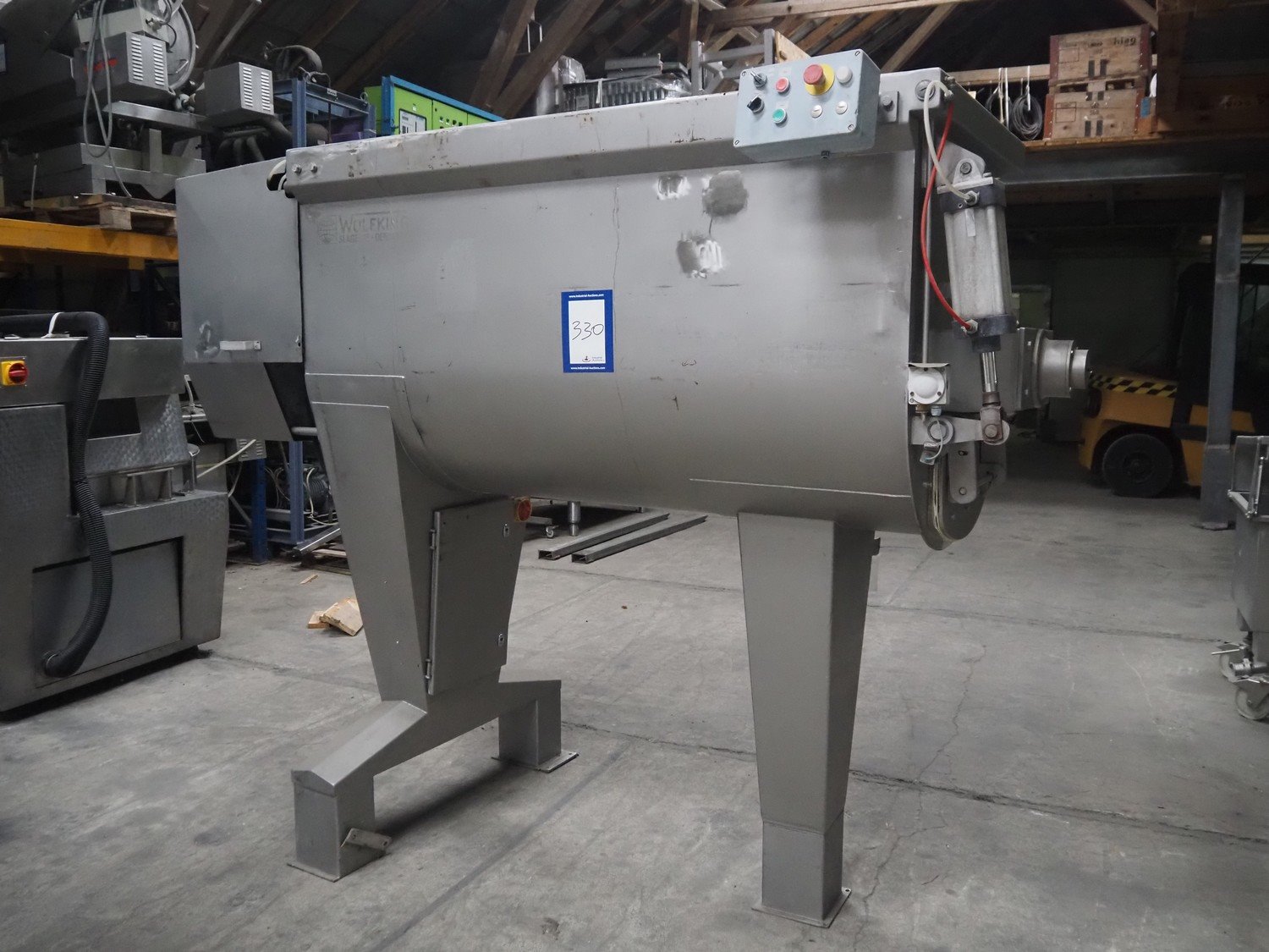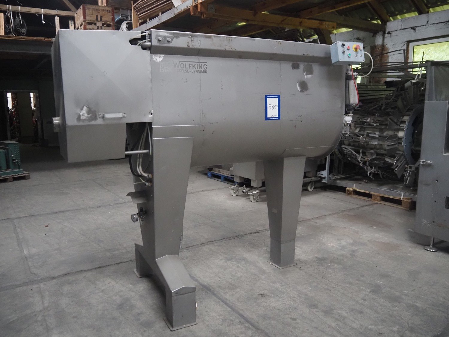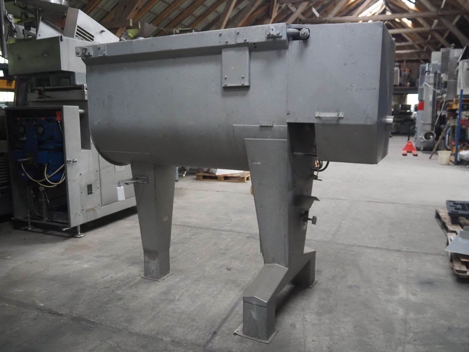 Wolfking ribbon/paddle mixer, type: 1000-SSM, number: 24541, volume: 1000 liter, dimensions: 2300 mm x 1150 mm x 2100 mm.