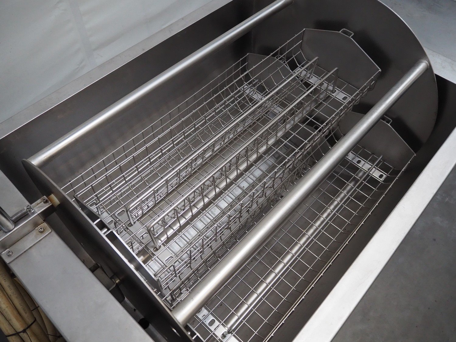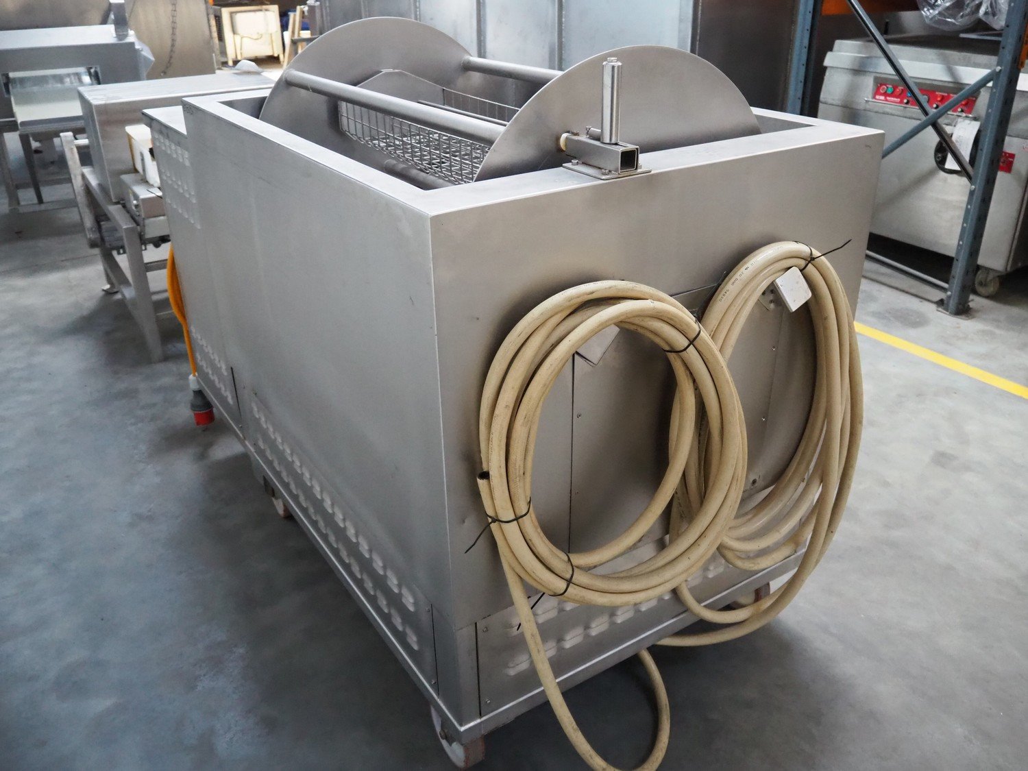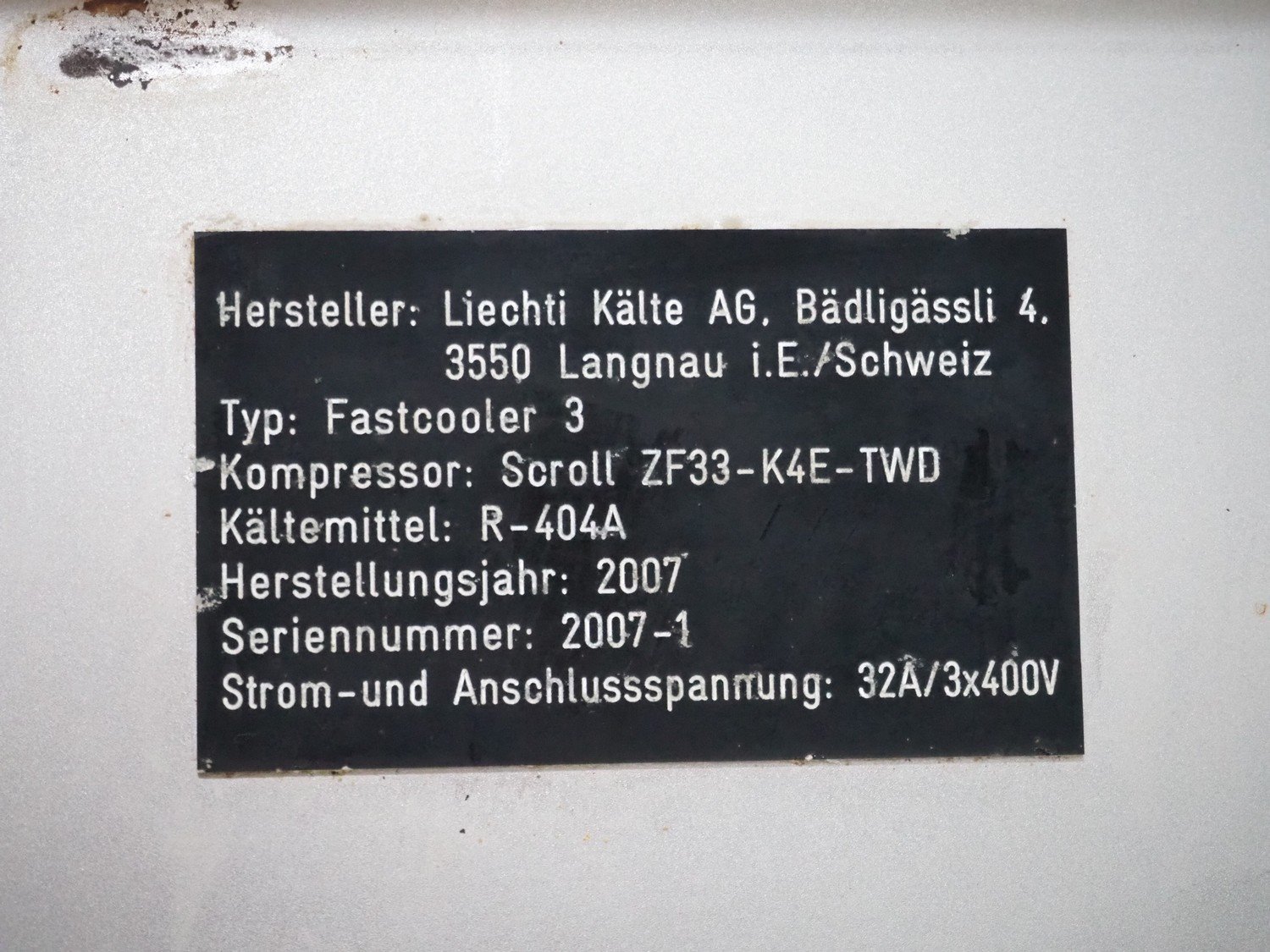 Liechti Kälte AG rotary cooler, type: Fastcooler 3, serial number: 2007-1, year of construction: 2007, 400 V, 3 Ph, 32 A, Scroll cooling compressor, type: ZF33-K4E-TWD, refrigerant: R-404A, 4 baskets, dimensions each basket: 840 mm x 265 mm x 140 mm, total dimensions: 1770 mm x 900 mm x 1250 mm.