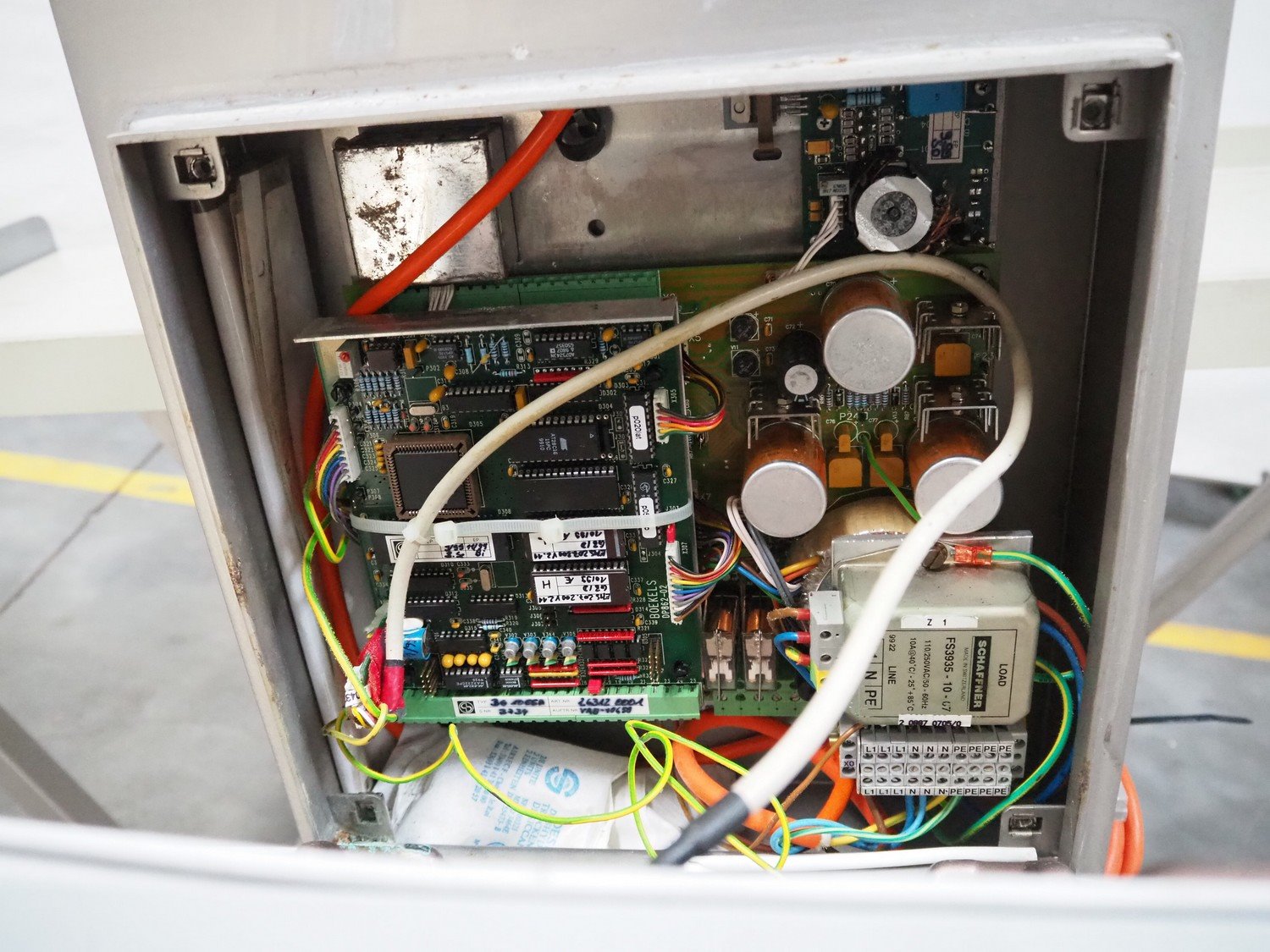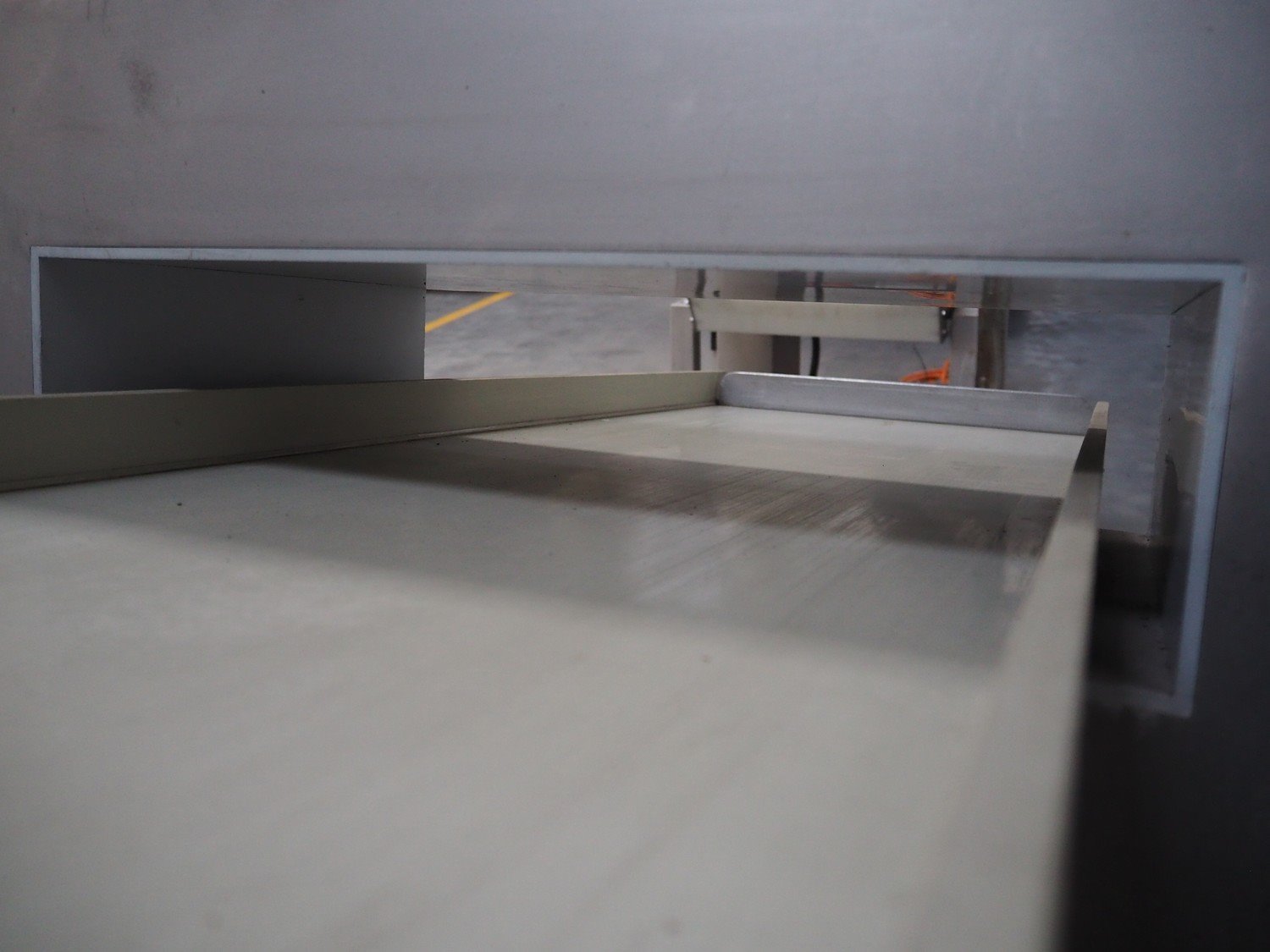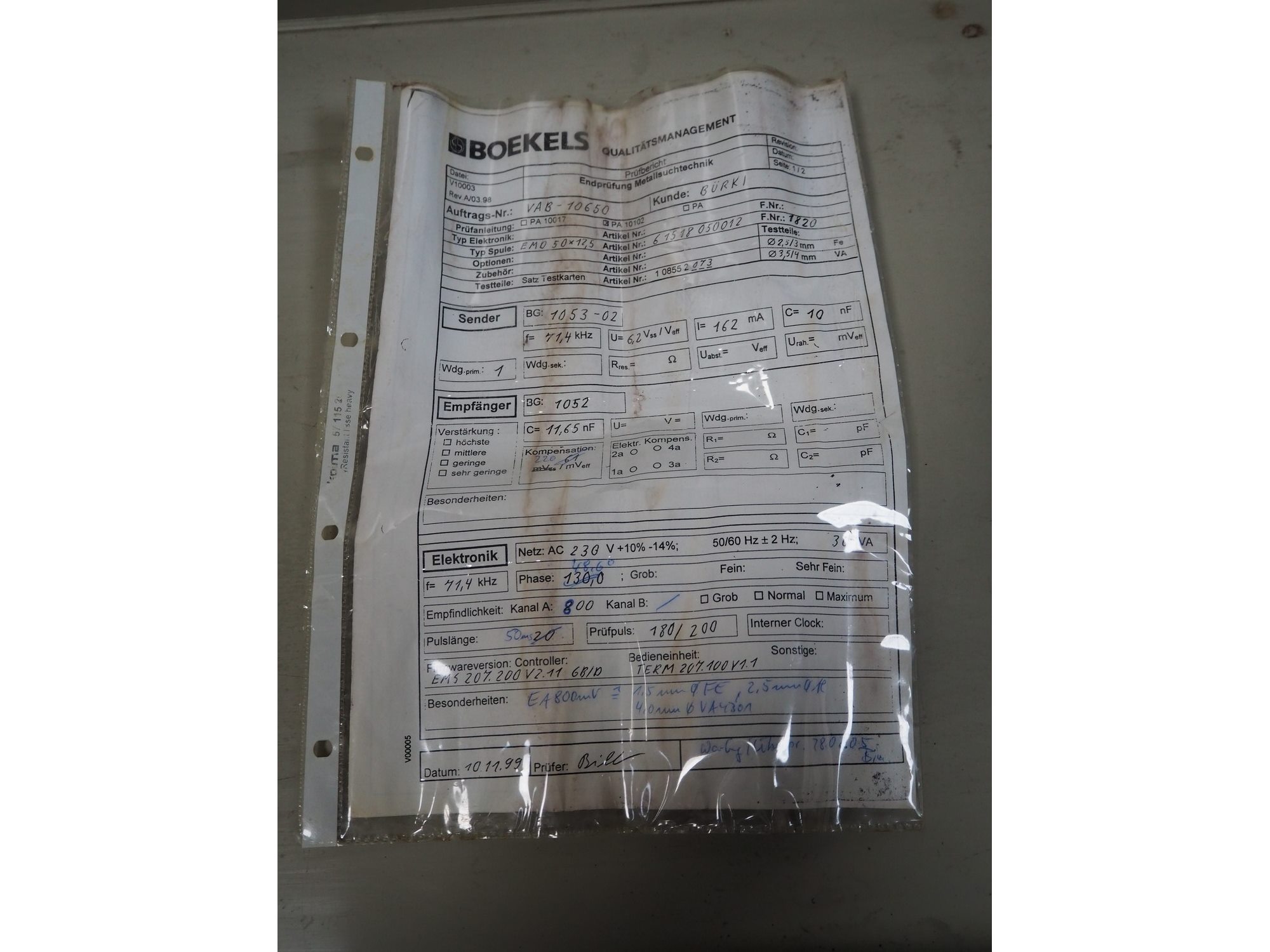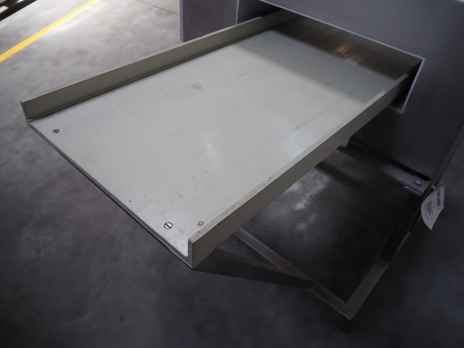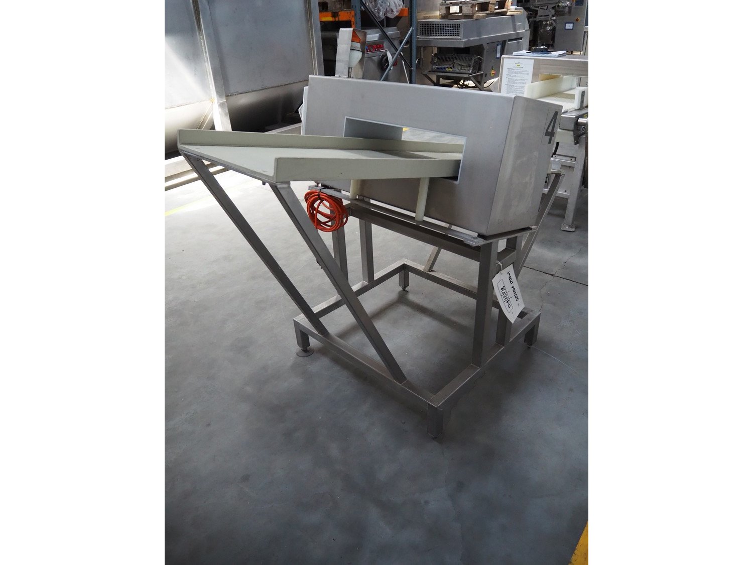 Boekels metal detector, year of construction: 1999, 230 V, 50/60 Hz, without belt, belt width: 400 mm, clearance: 410 mm x 100 mm, elevating height: 1000 mm, total dimensions: 1550 mm x 950 mm x 1250 mm.