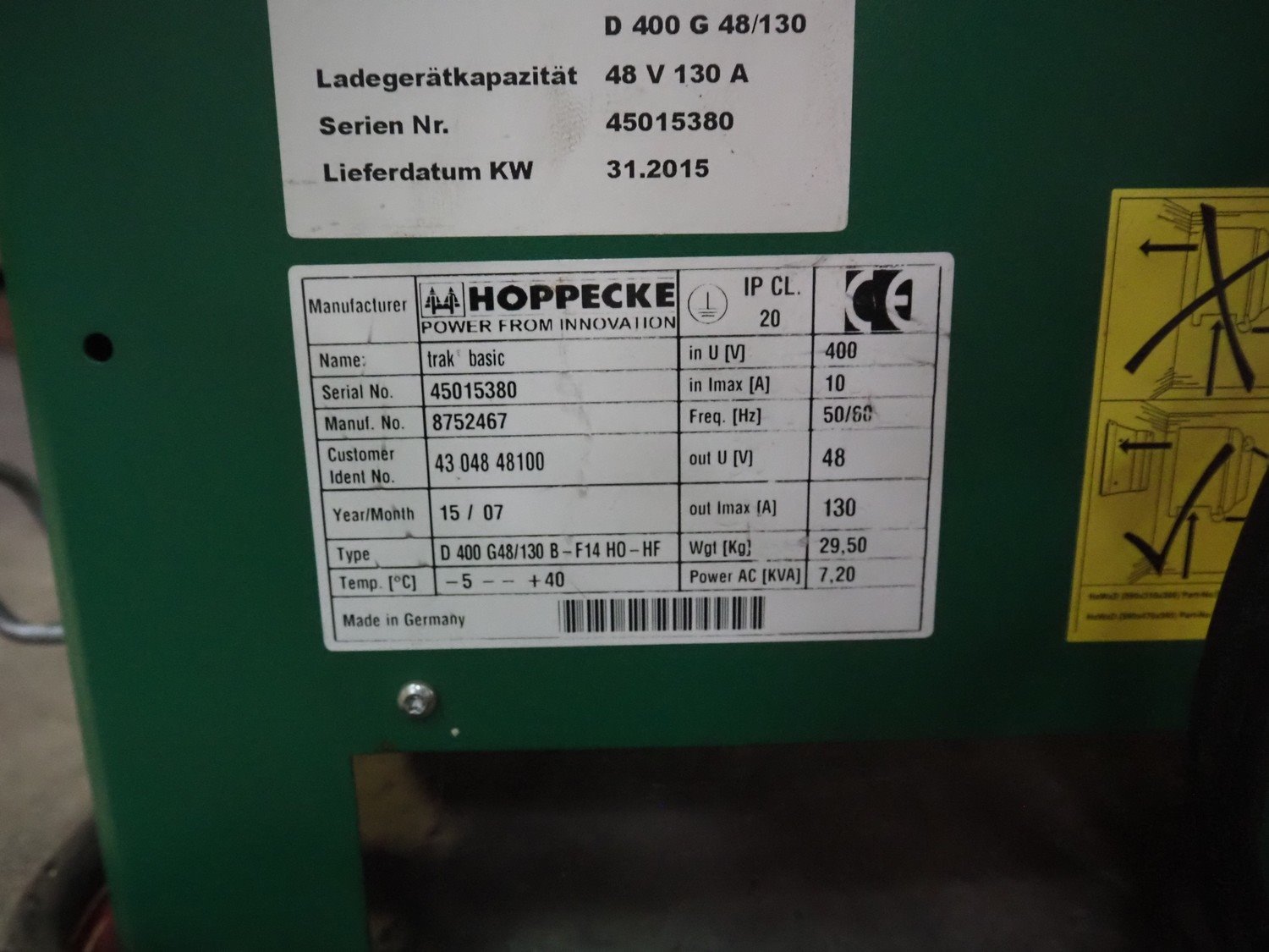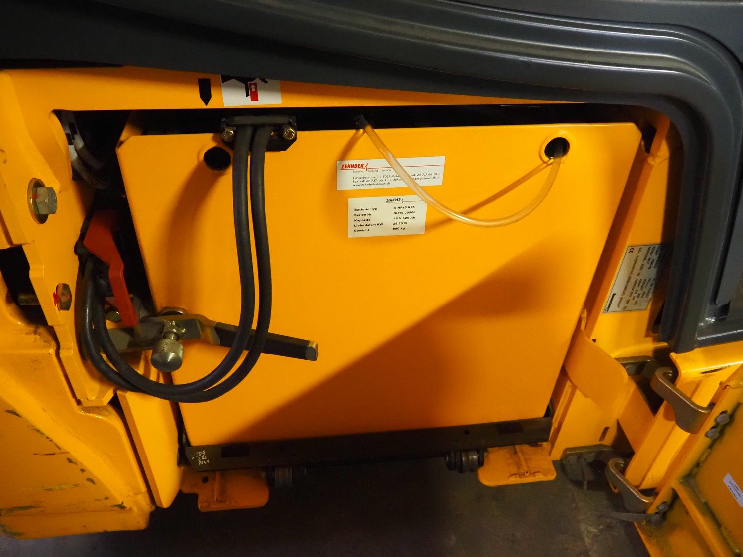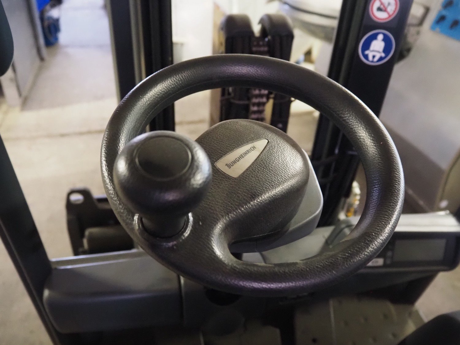 Jungheinrich forklift truck, type: EFG 216K, serial number: FN496878, year of construction: 2015, capacity: 1600 kg, weight: 2293 kg, Kaup bale clamp, clamp dimensions: 1180 mm x 990 mm, Hoppecke battery, type: trak basic, serial number: 45015380, 400 V, 50 Hz, 10 A, 7.2 kVA, weight: 29.50 kg, total dimensions: 3160 mm x 11050 mm x 2060 mm.