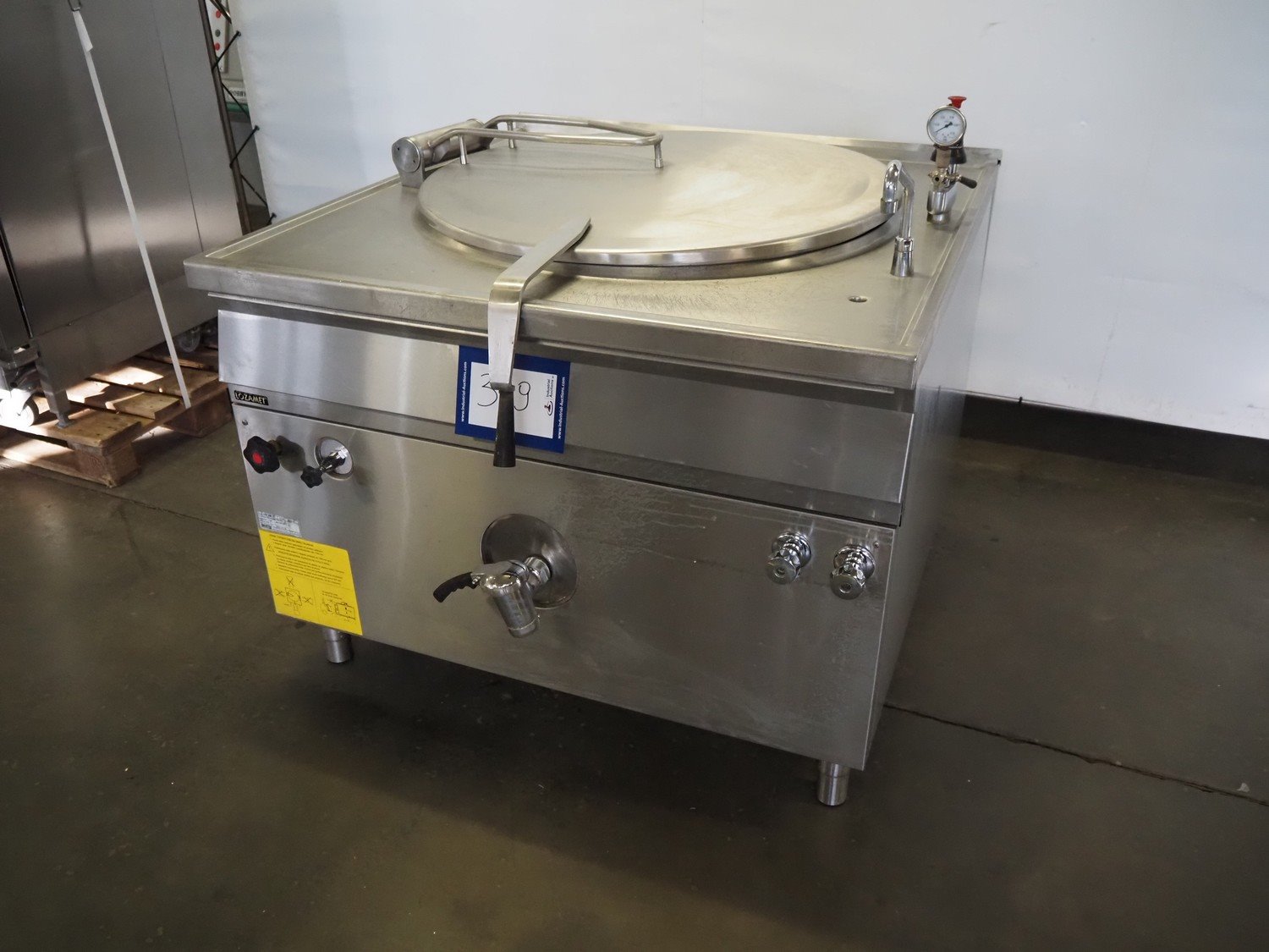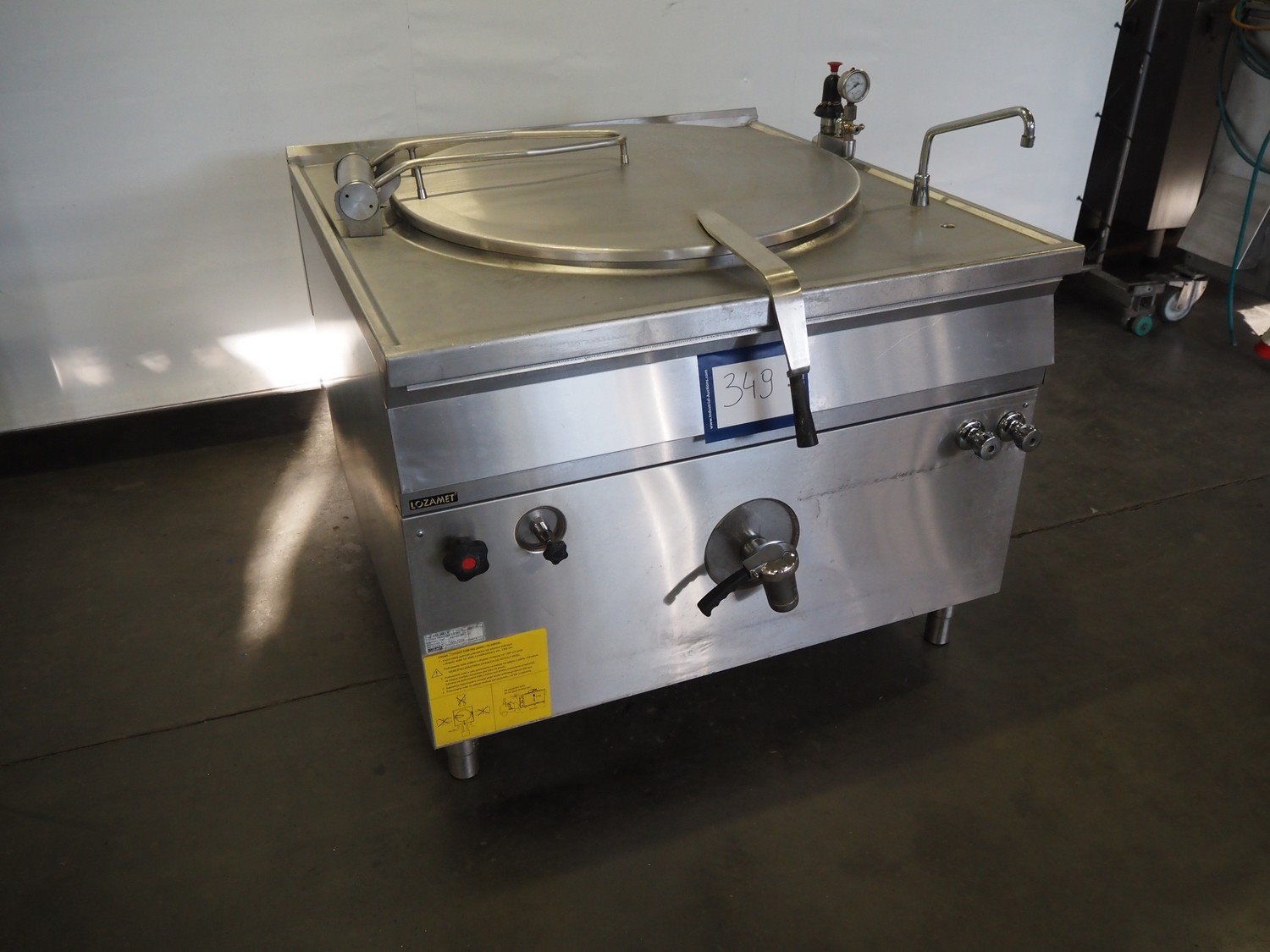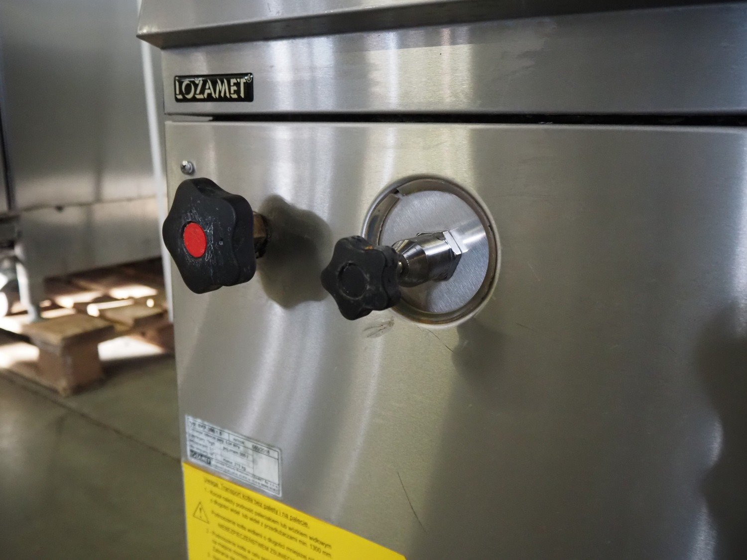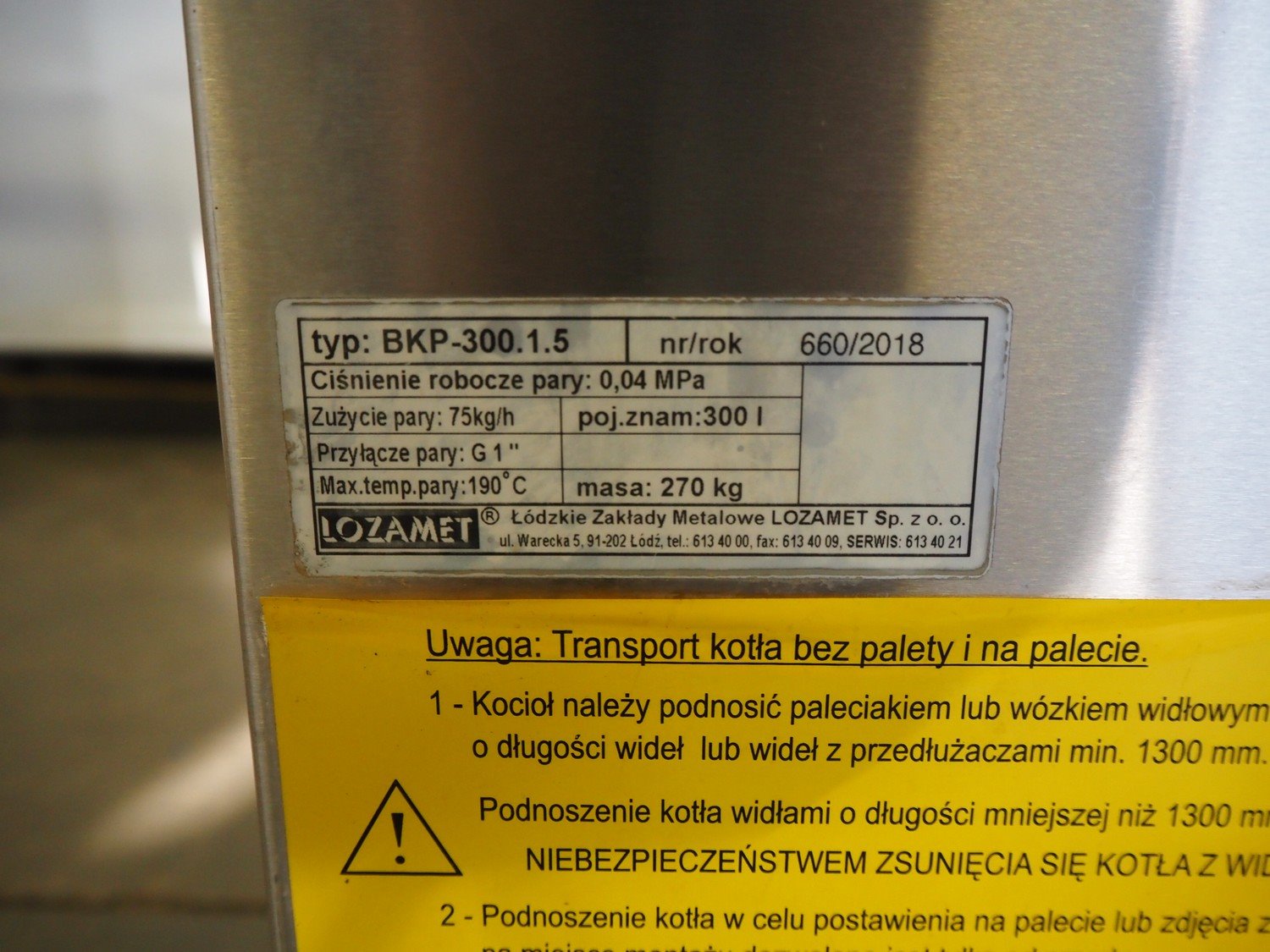 Lozamet cooking vessel, type: BKP-300.1.5 number: 660, year of construction: 2018, volume: 300 liter, weight: 270 kg, capacity: 75 kg per hour, gas heated, dimensions: 1300 mm x 1200 mm x 1150 mm.