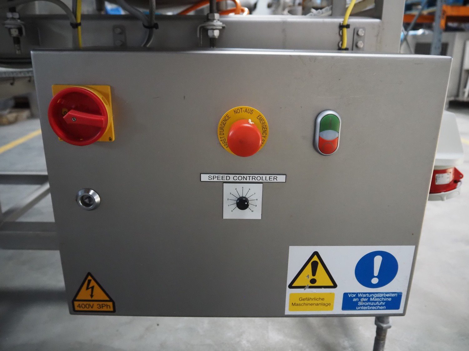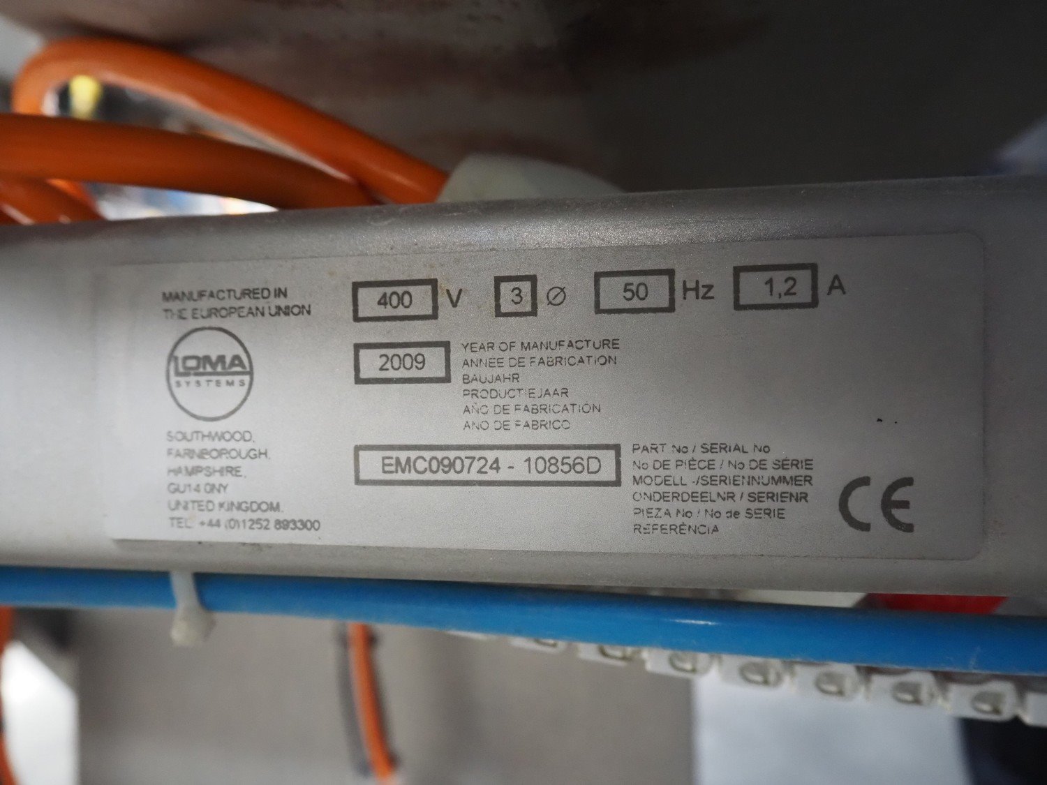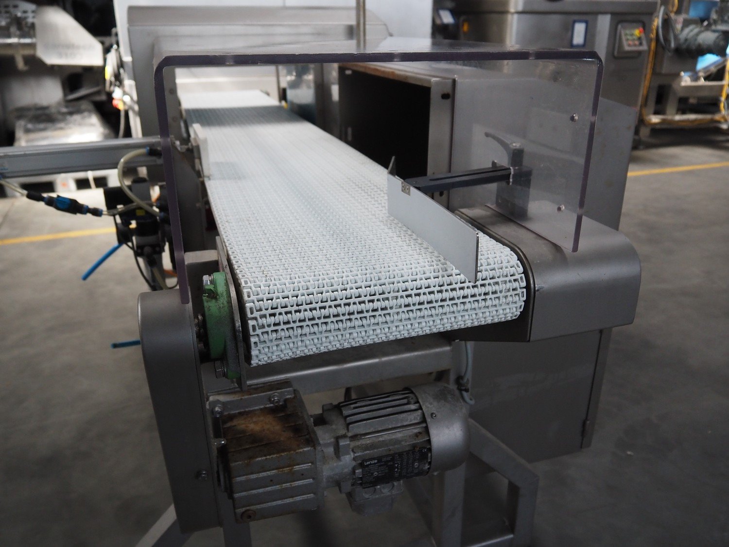 Loma Systems metal detector, model: IQ³, serial number: MDP304-10857D, year of construction: 2009, 230 V, 1 Ph, 50 Hz, 0.3 A, plastic mesh belt, belt width: 300 mm, clearance: 350 mm x 140 mm, total dimensions: 2000 mm x 1060 mm x 1550 mm.