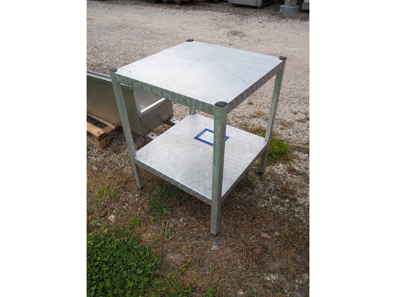 Aluminium table, dimensions: 640 mm x 640 mm x 830 mm.