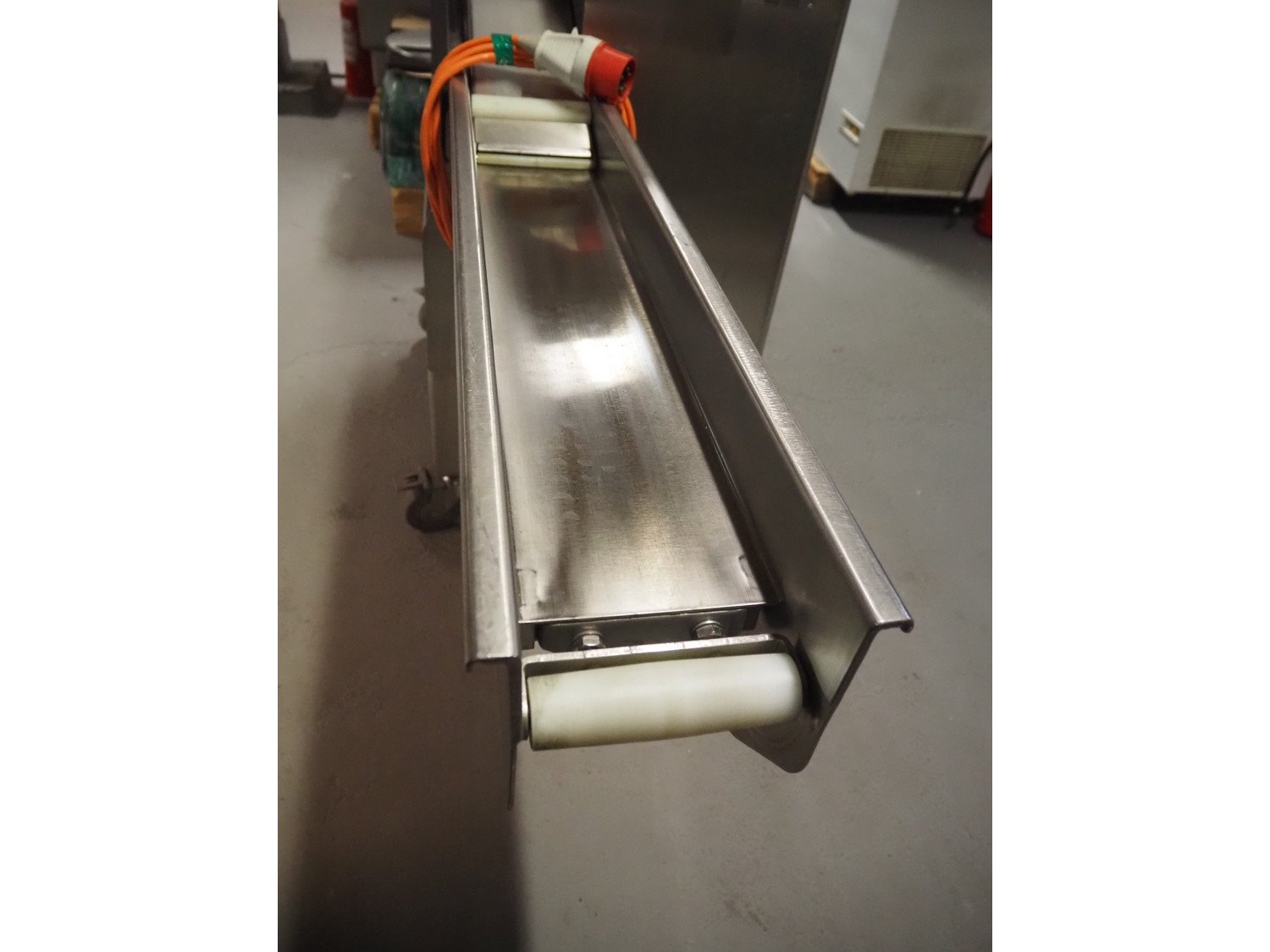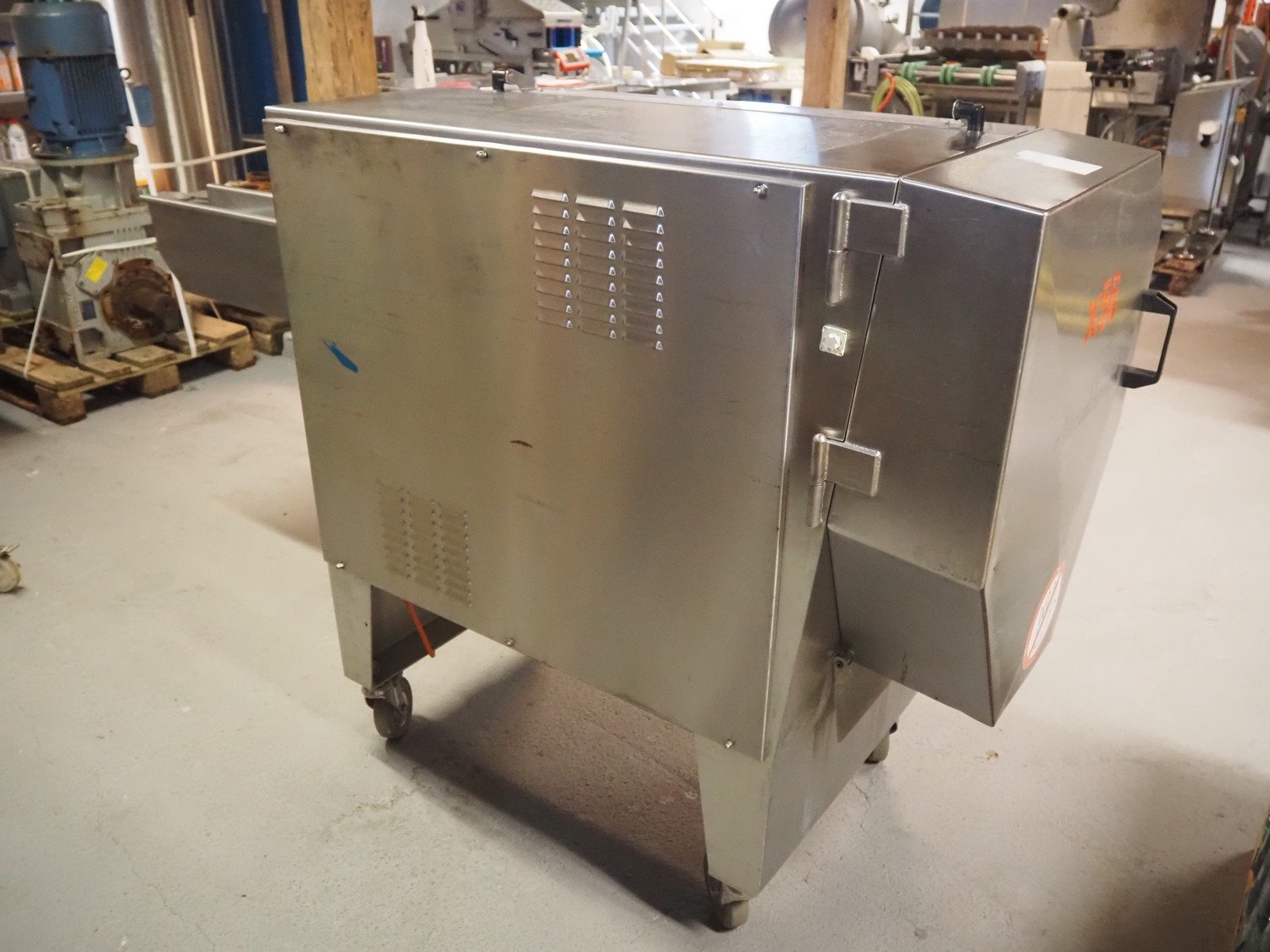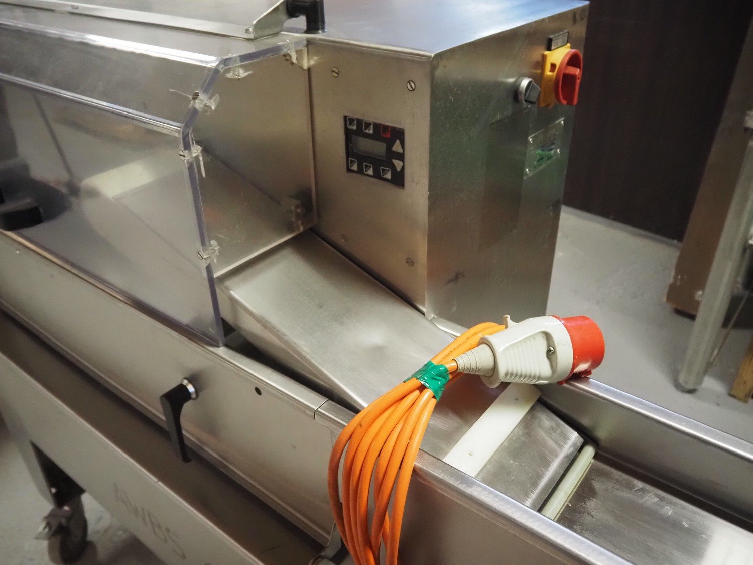 Alexanderwerk mobile belt slicer, type: AWBS 150, machine number: 04800029, 400 V, 50 Hz, 2 kW, belt width: 150 mm, clearance: 150 mm x 150 mm, total dimensions: 2240 mm x 630 mm x 1200 mm. Missing belt.