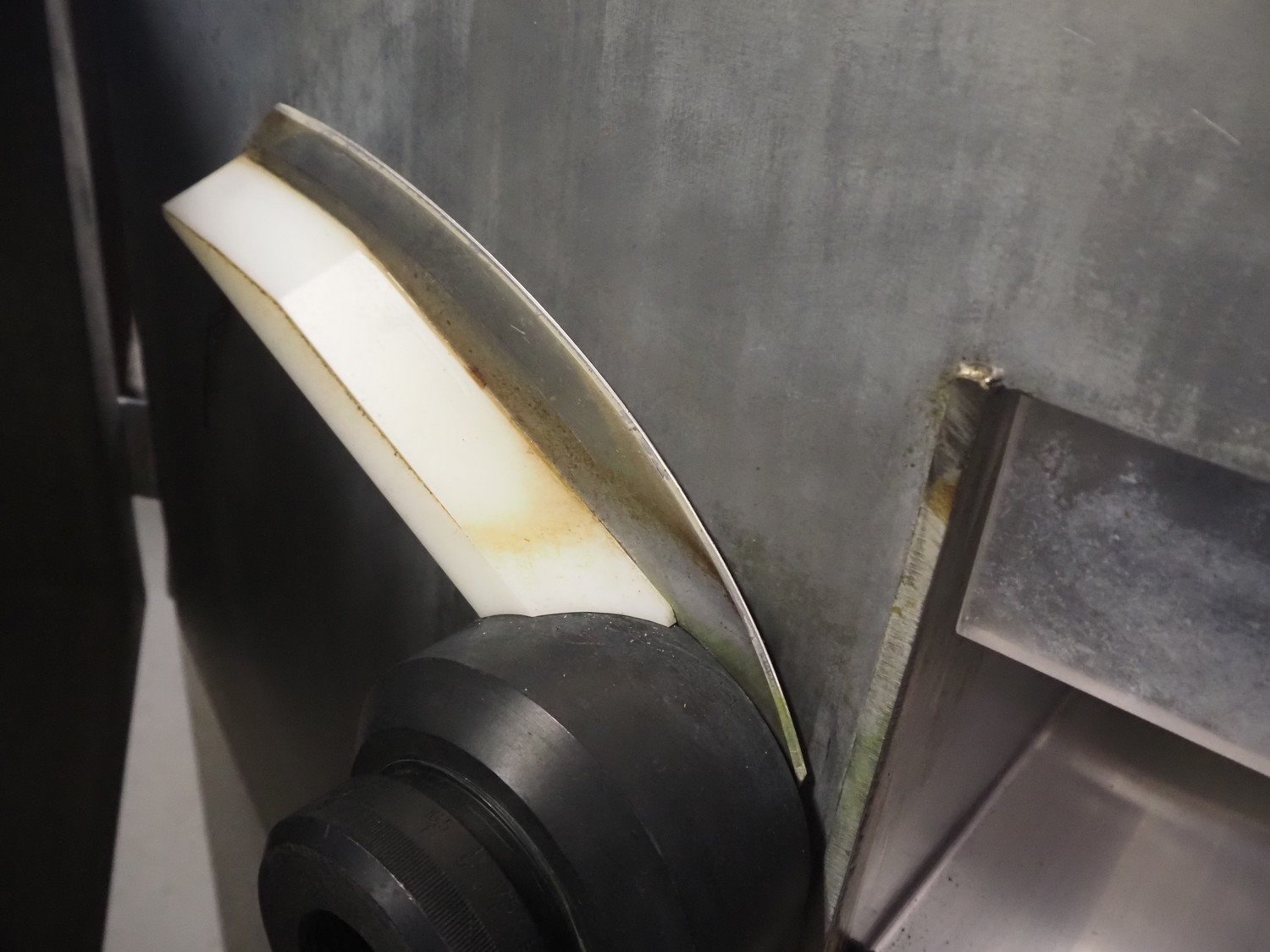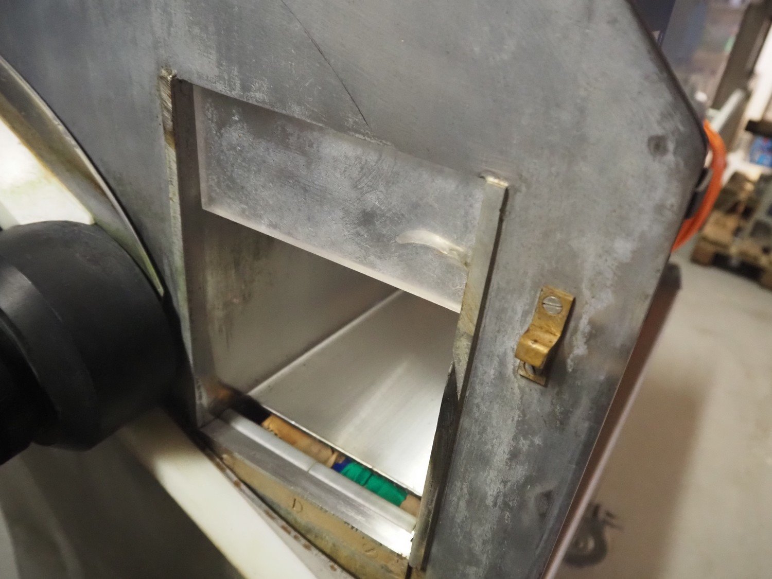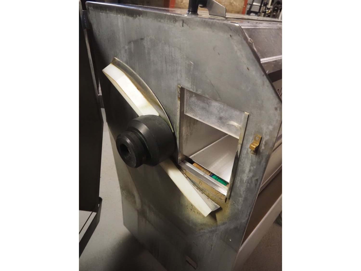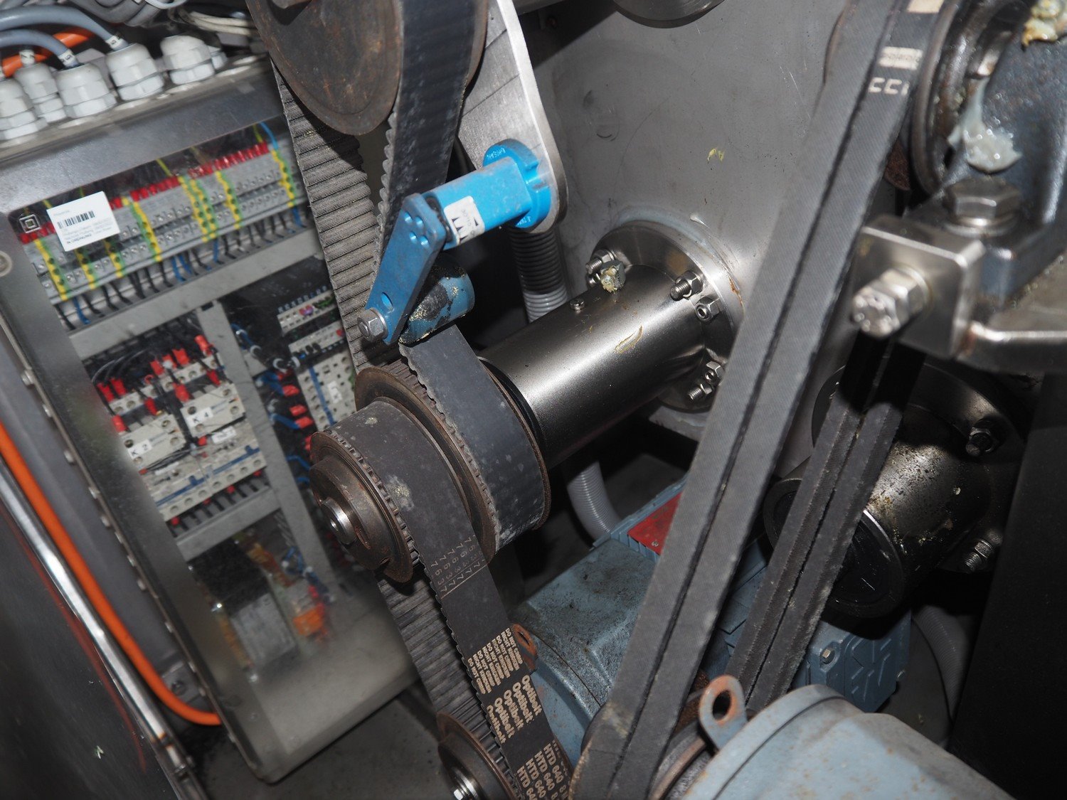 Alexanderwerk mobile belt slicer, type: AWBS 150, machine number: 04800029, 400 V, 50 Hz, 2 kW, belt width: 150 mm, clearance: 150 mm x 150 mm, total dimensions: 2240 mm x 630 mm x 1200 mm. Missing belt.