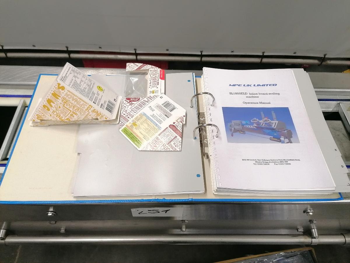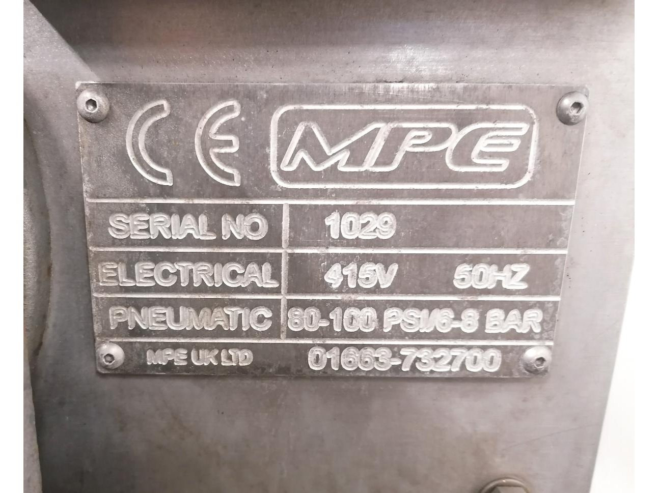 MPE GB Limited, Inline board sealing machine, serial: 1029, 415V, 50Hz, 6-8 bar, dimensions: 4300 mm x 1250 mm x 1950 mm.