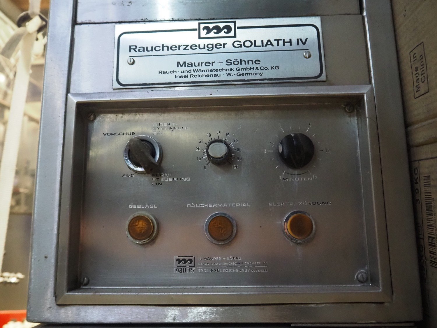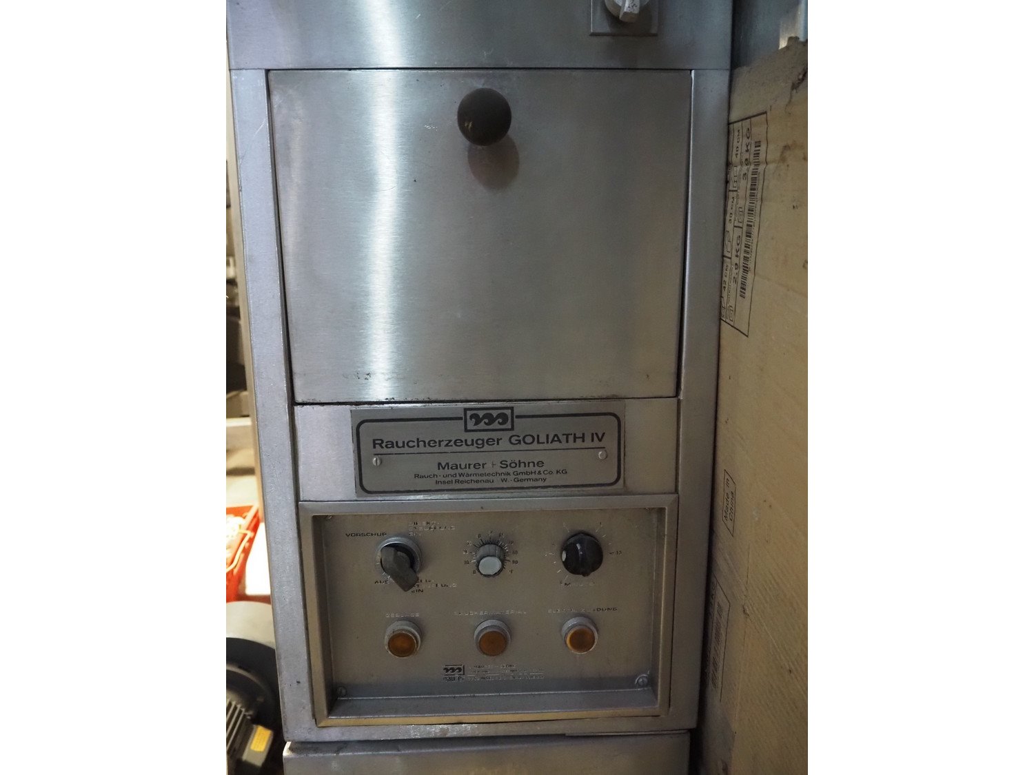 Maurer+Söhne cooking and smoking chamber with smoke generator, inside dimensions: 1100 mm x 900 mm x 1520 mm, total dimensions: 2100 mm x 1150 mm x 2500 mm.