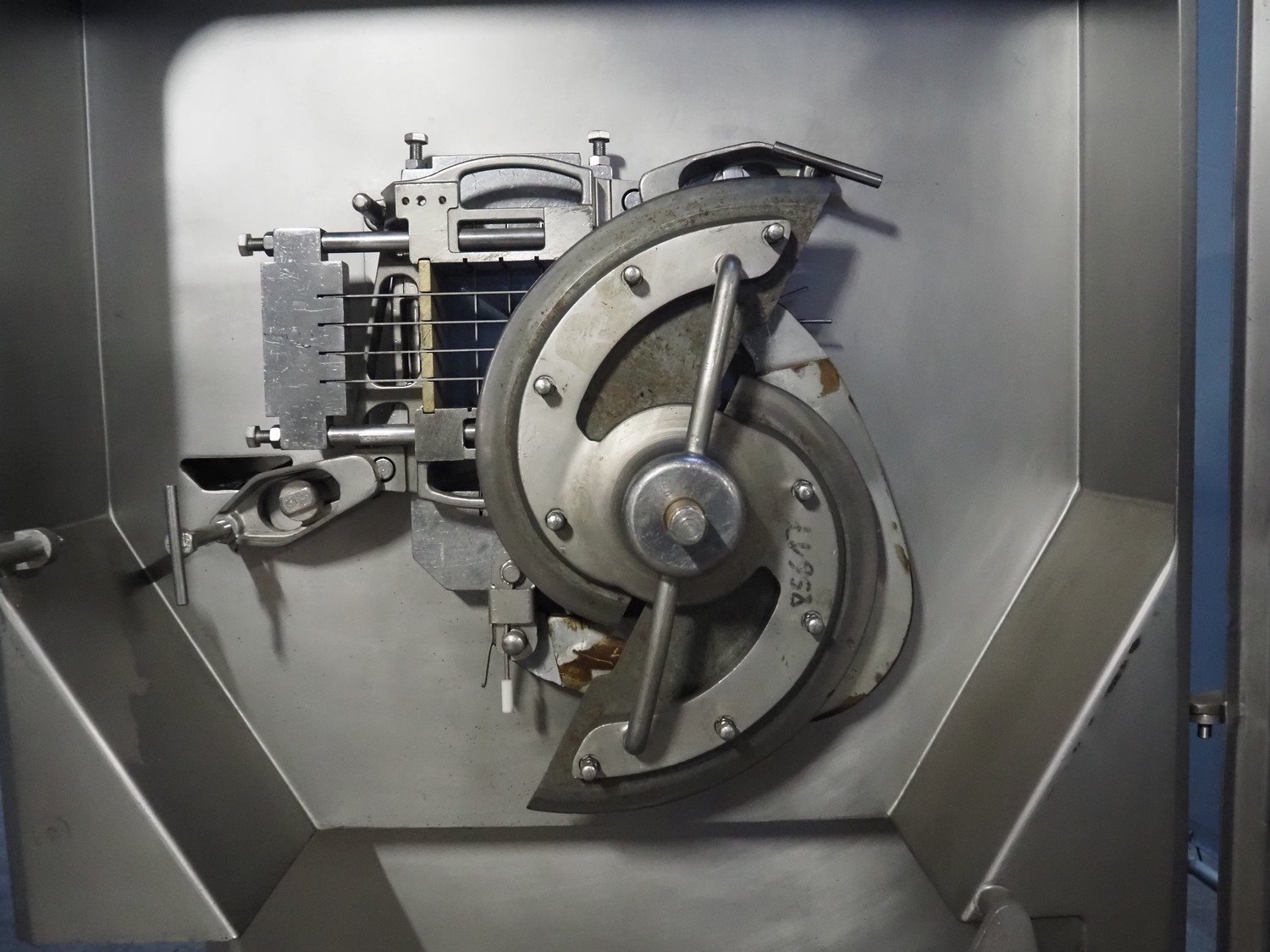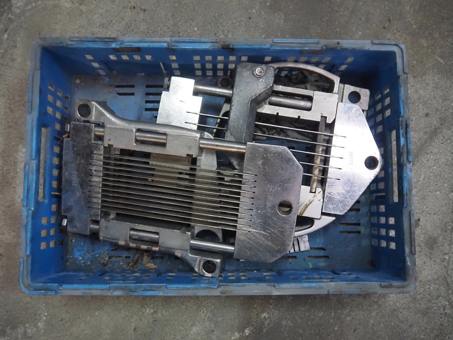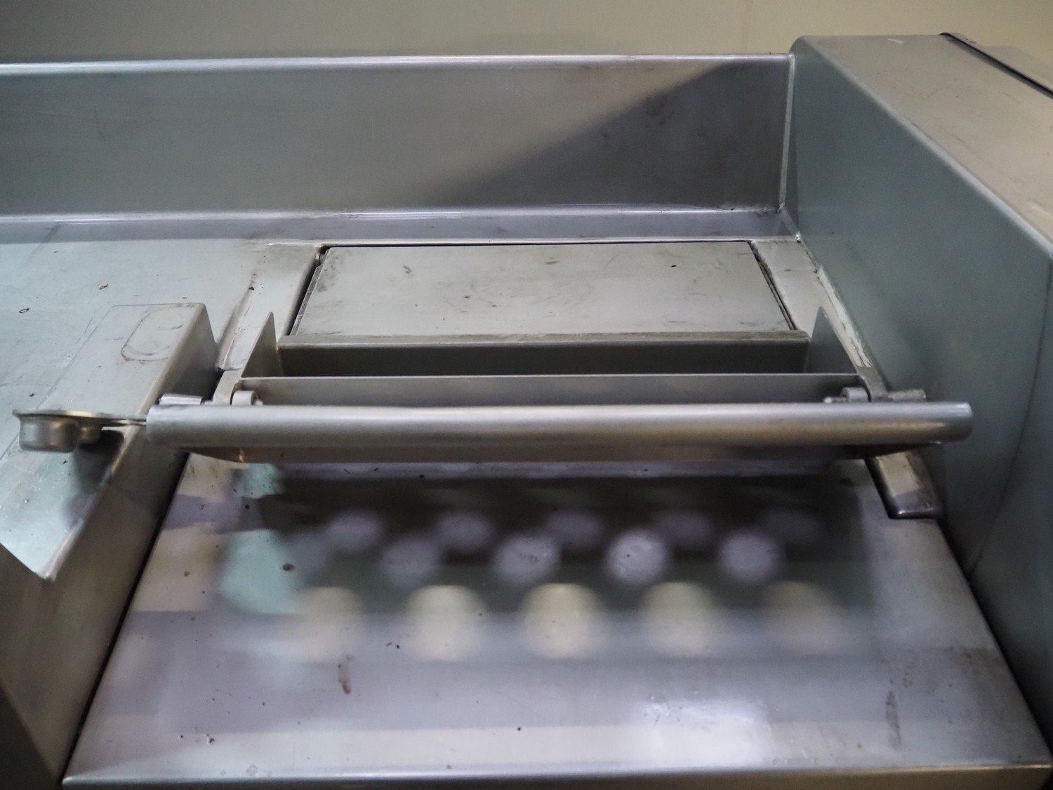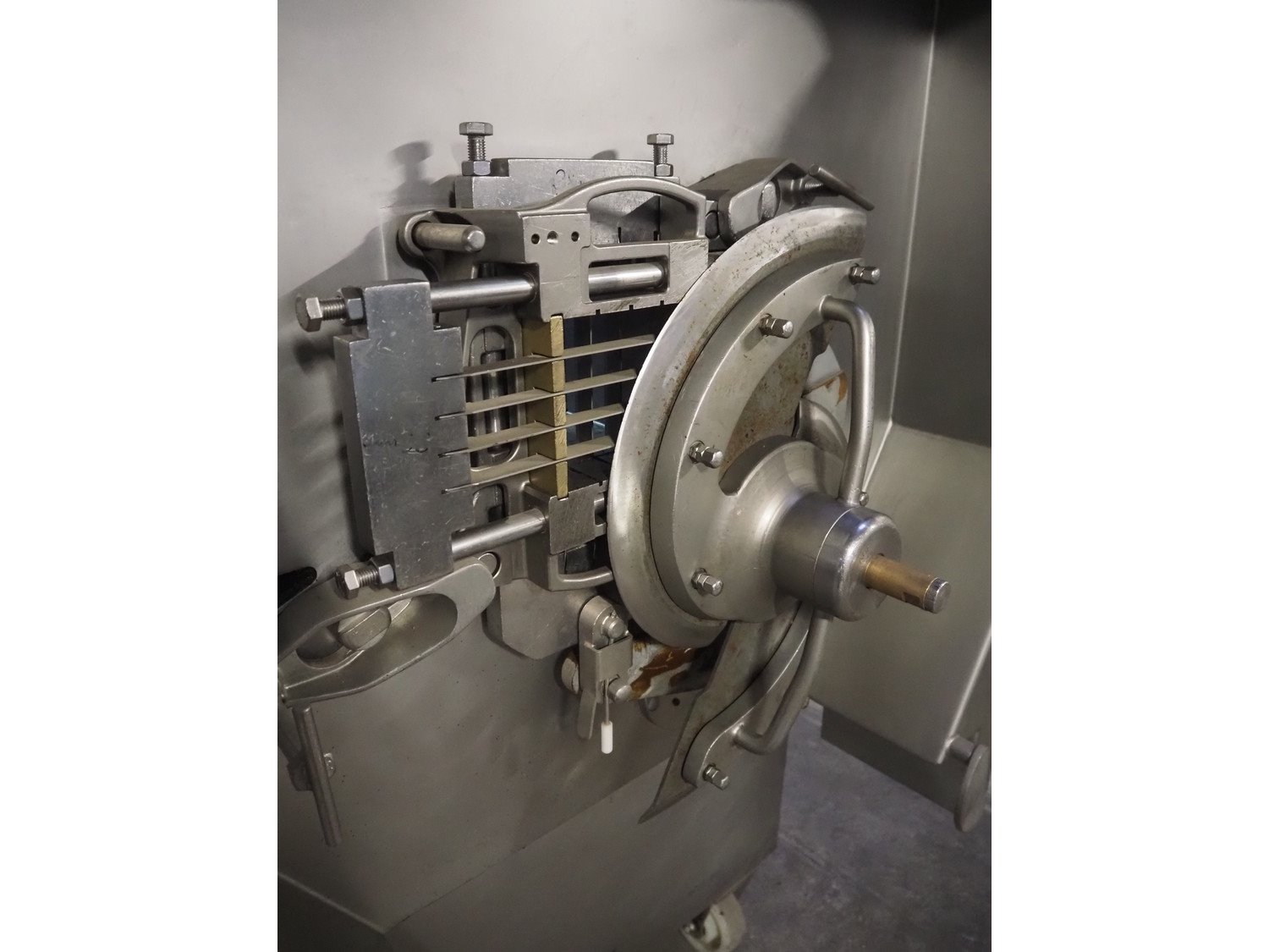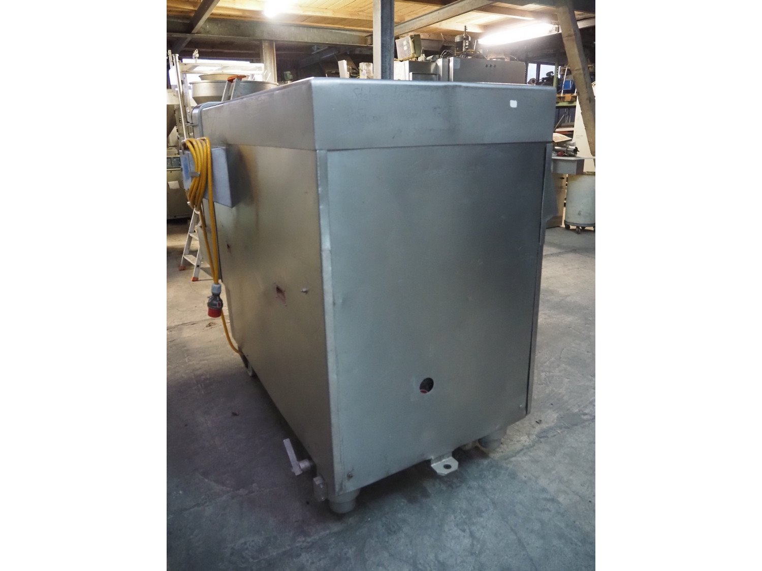 Treif mobile dicer, model: Phoenix-CE, chamber dimensions: 120 mm x 120 mm x 650 mm, distance between knives: 25 mm x 30 mm, total dimensions: 2350 mm x 960 mm x 1600 mm. Extra knife set, distance between knives: 10 mm and 20 mm. Without lifter.