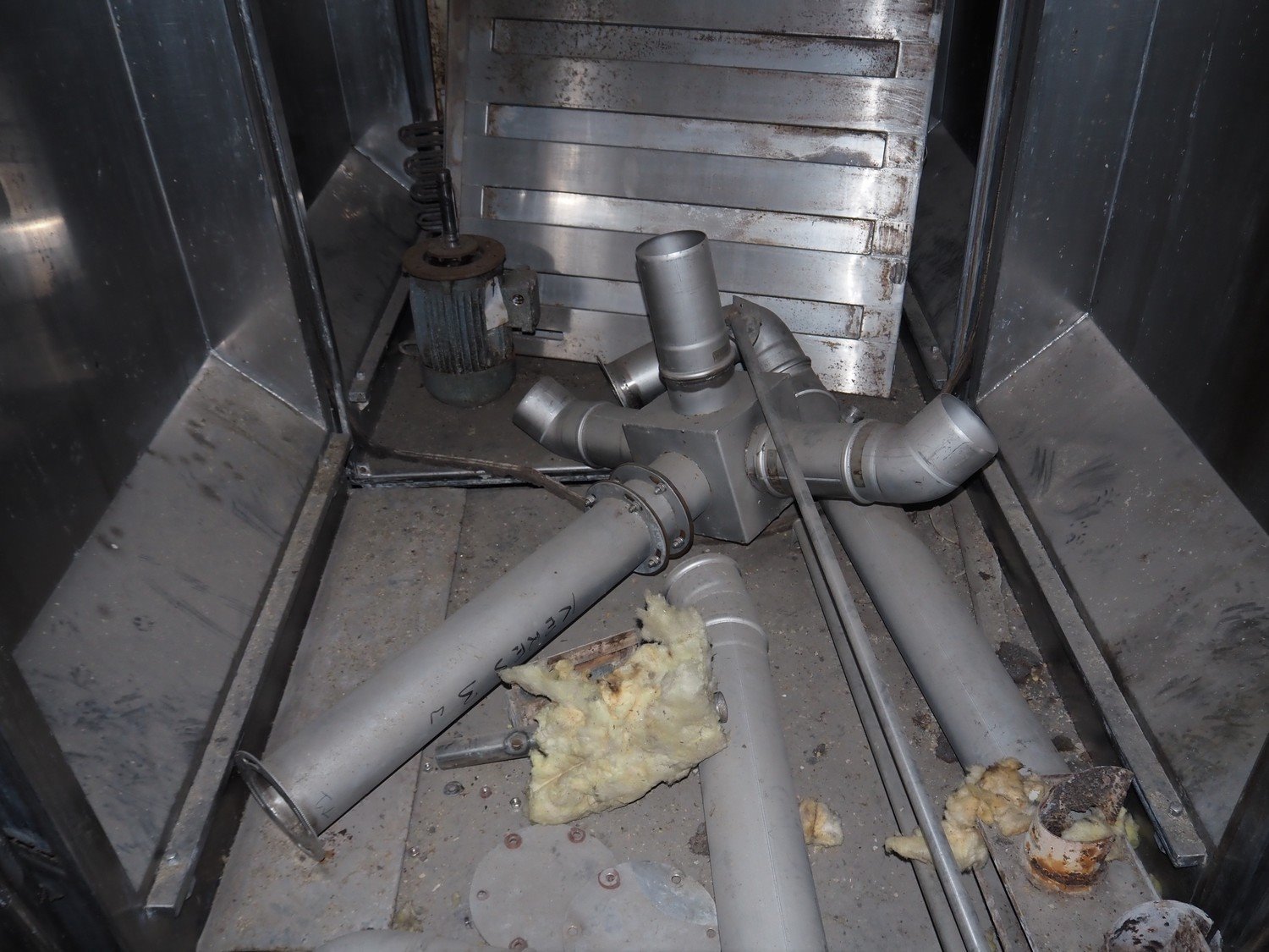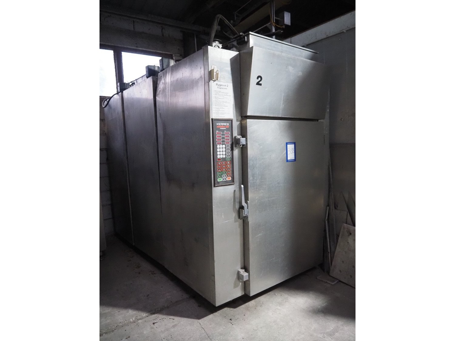 Kerres smoke chamber, inside dimensions: 3000 mm x 1090 mm x 1570 mm, total dimensions: 3200 mm x 1730 mm x 2800 mm.
