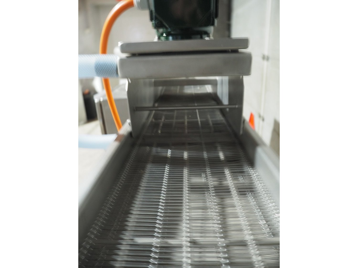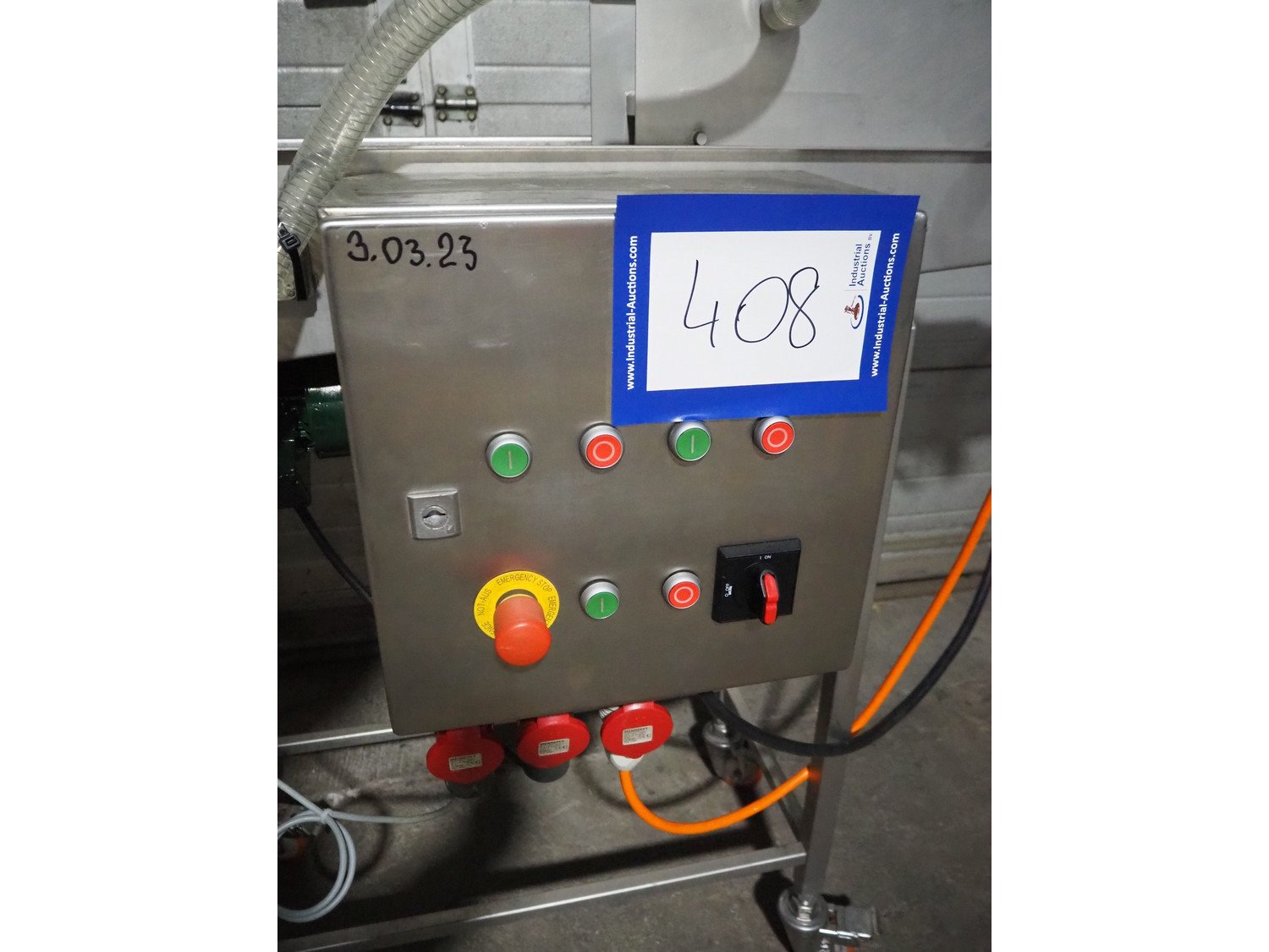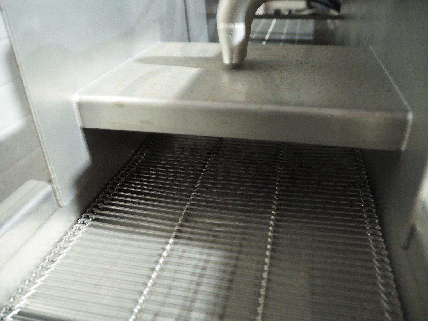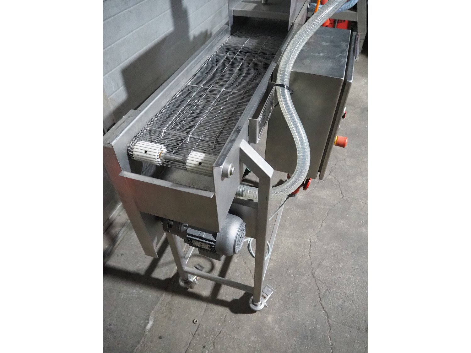 Alco mobile coating machine, type: APN 200 N, serial number: 03404211, year of construction: 2000, 400 V, 0.43 kW, s/s mesh belt, belt width: 200 mm, clearance: 200 mm x 50 mm, total dimensions: 1590 mm x 540 mm x 1170 mm.
