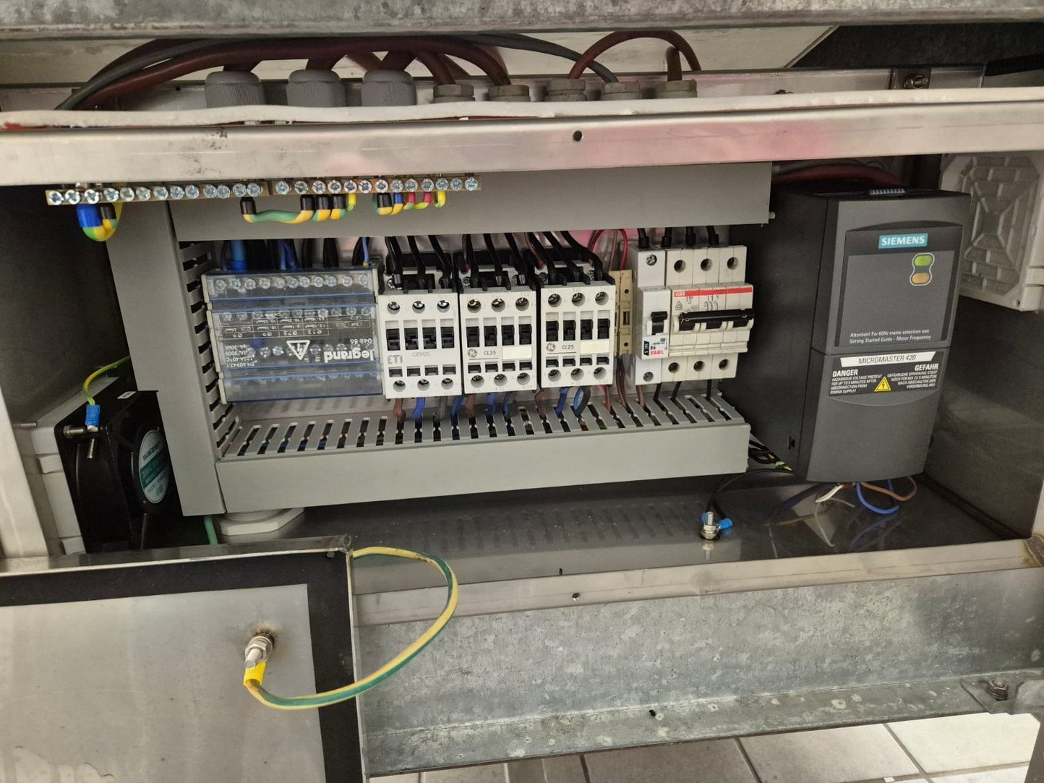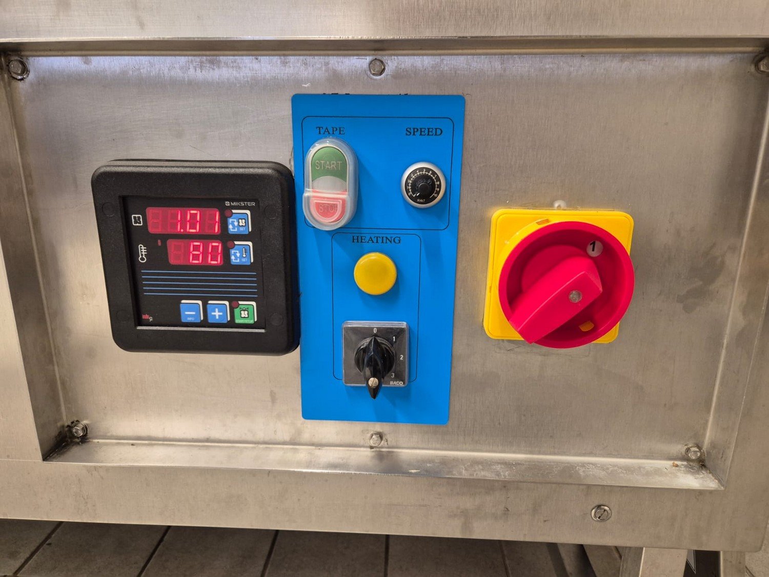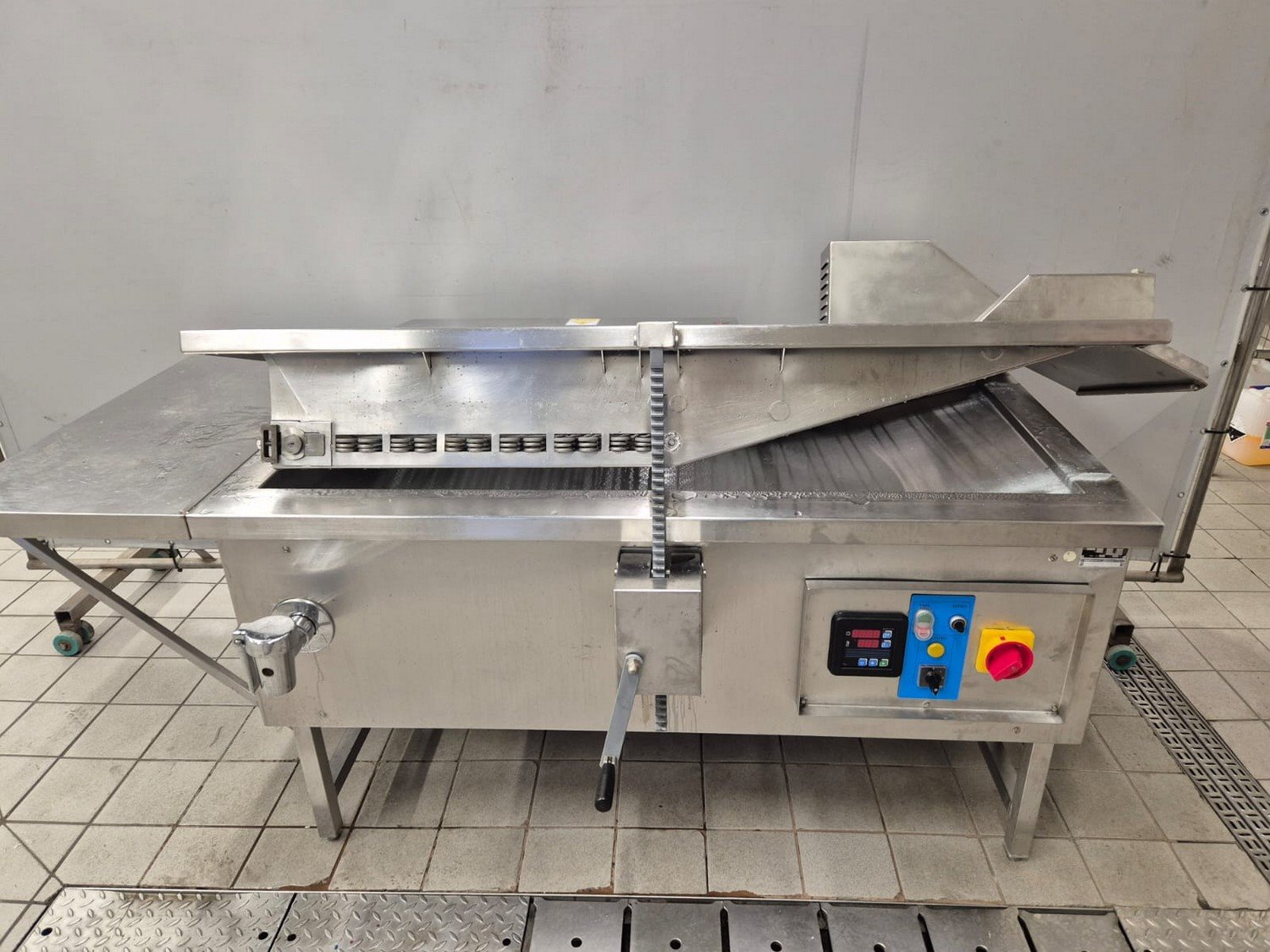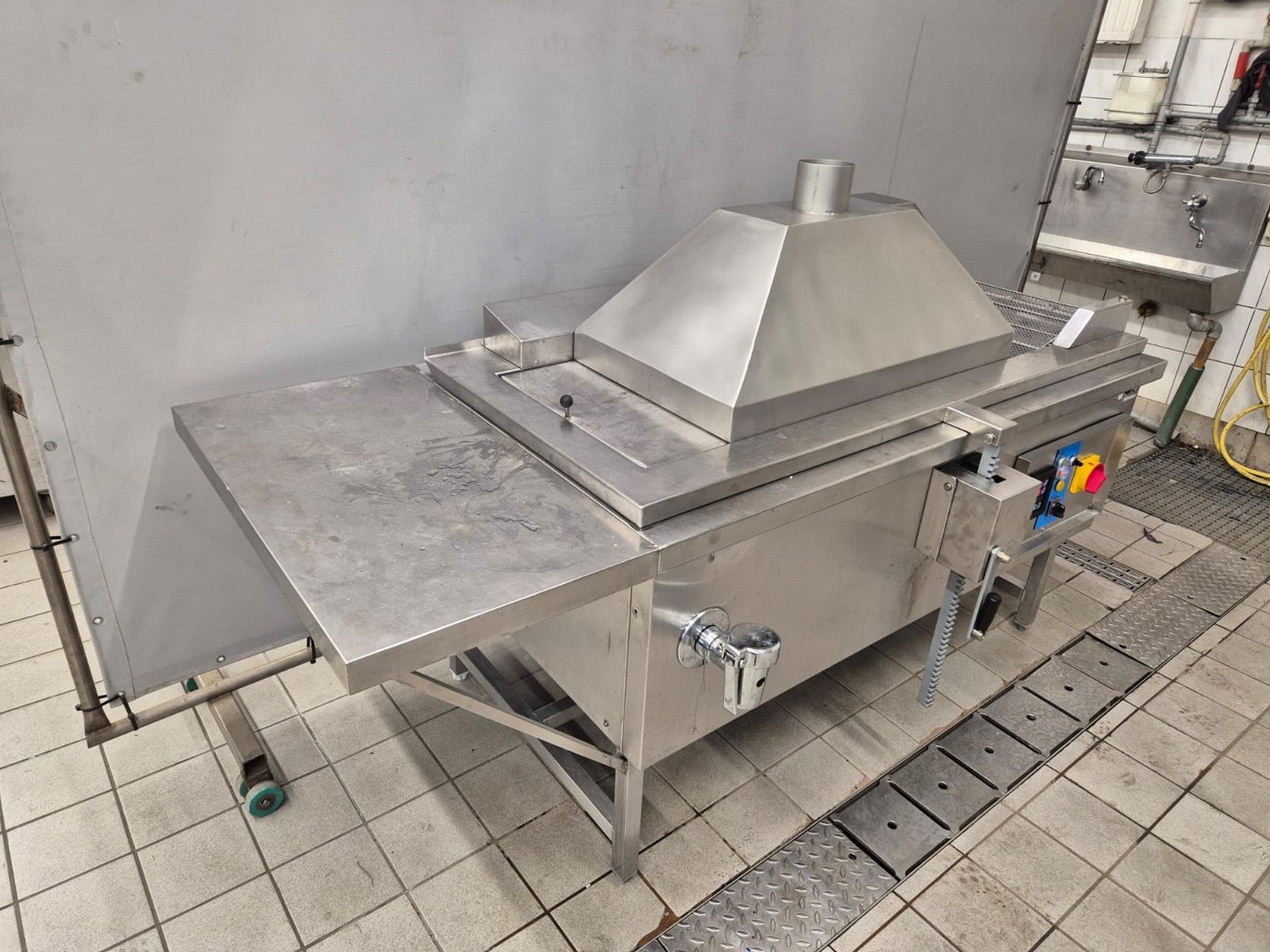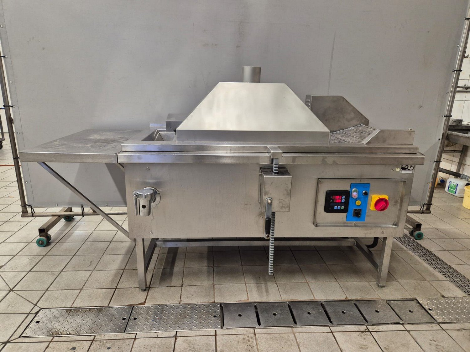 Küppersbusch continuous fryer, type: KGT 0009, 400 V, 3 Ph, 50 Hz, 39.8 kW, s/s mesh belt, belt width: 450 mm, total dimensions: 2250 mm x 1200 mm x 1100 mm. Overhauled by Servo.