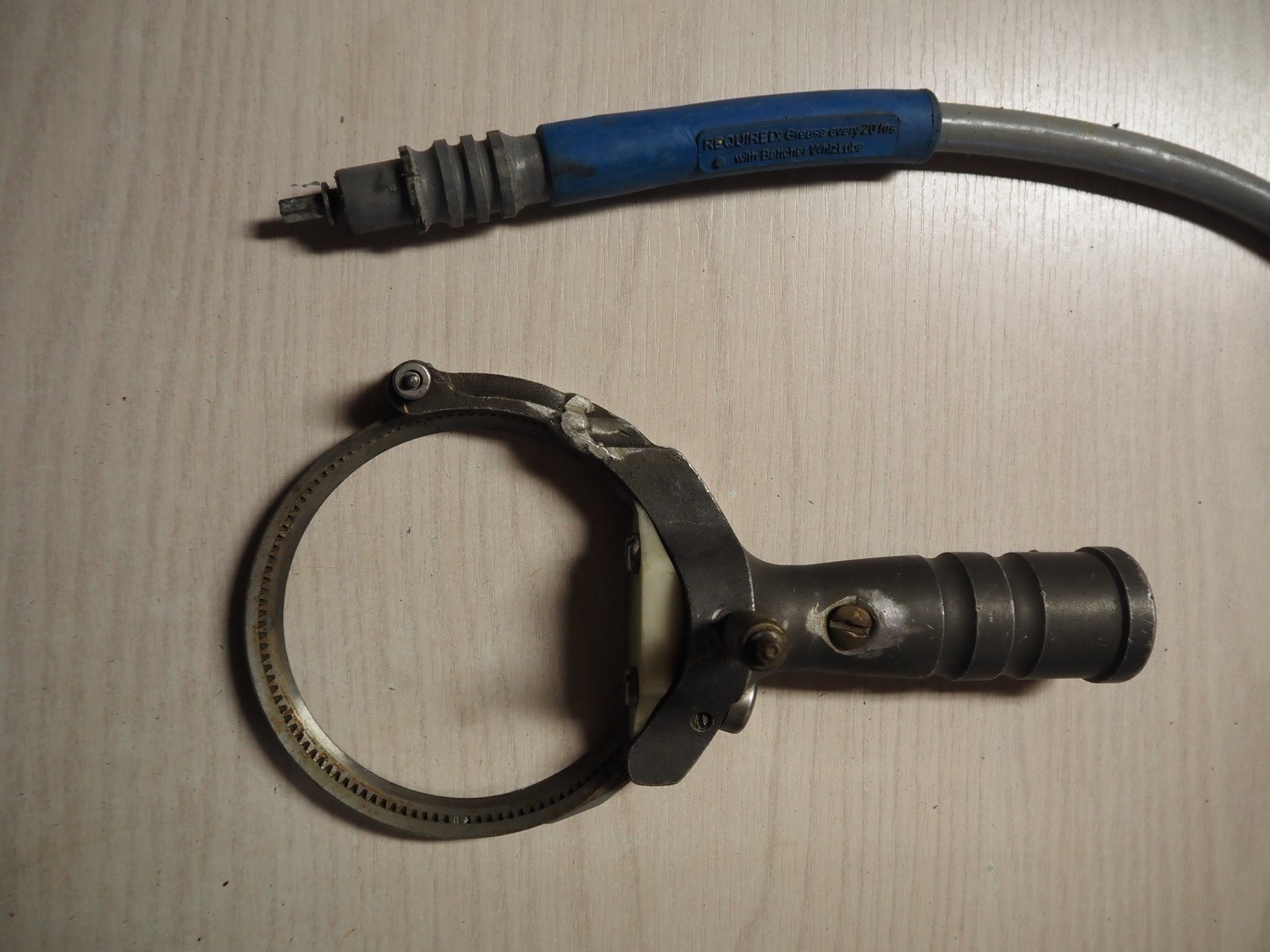 Bettcher Industries Inc. trimmer, type: Whizard, serial number: 06551601, 230 V, 1 Ph, 50 Hz, 2.6 A, 600 W, 4200 rpm, dimensions: 850 mm x 300 mm x 250 mm.