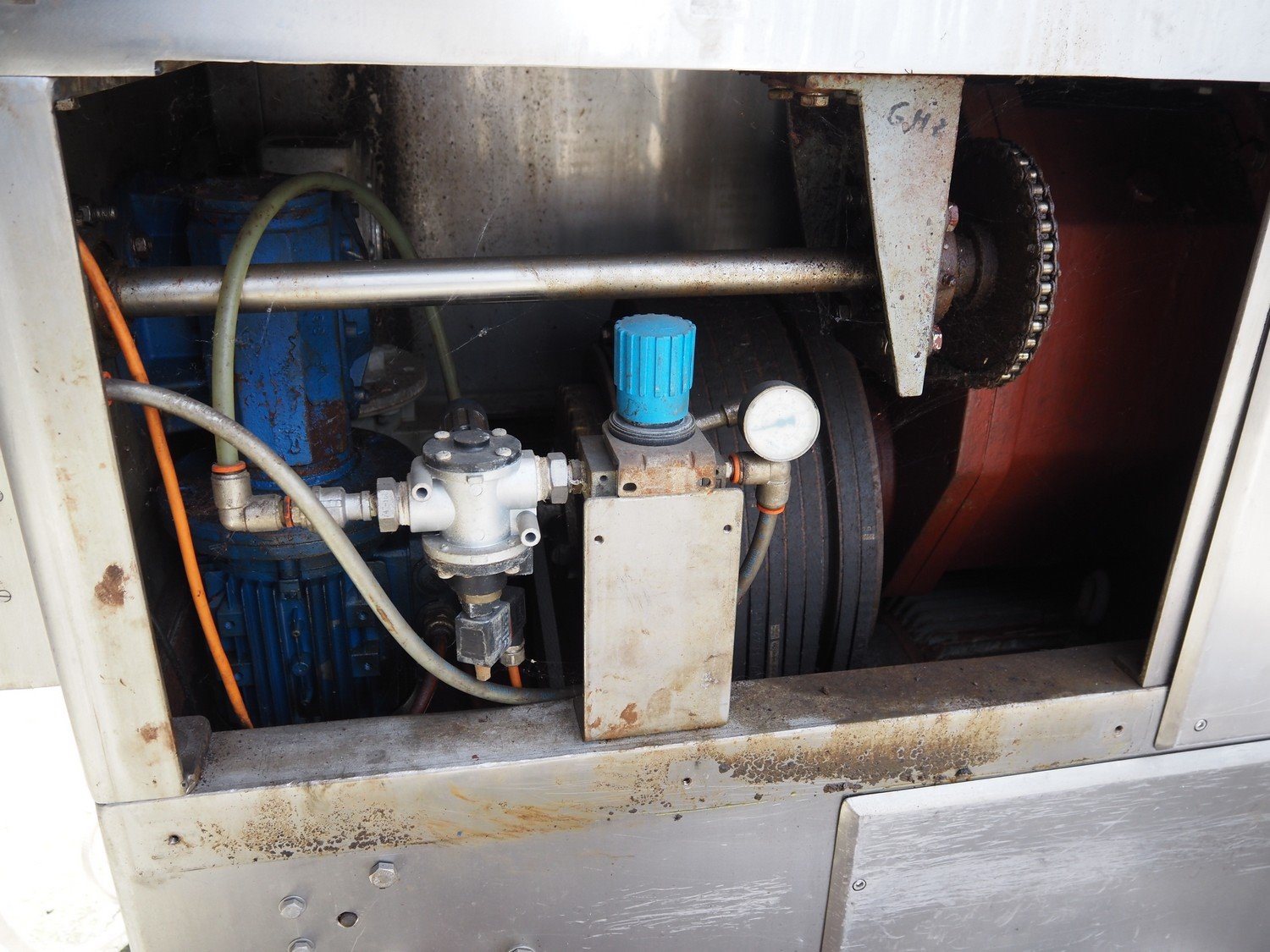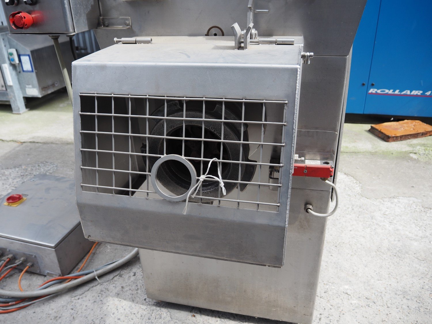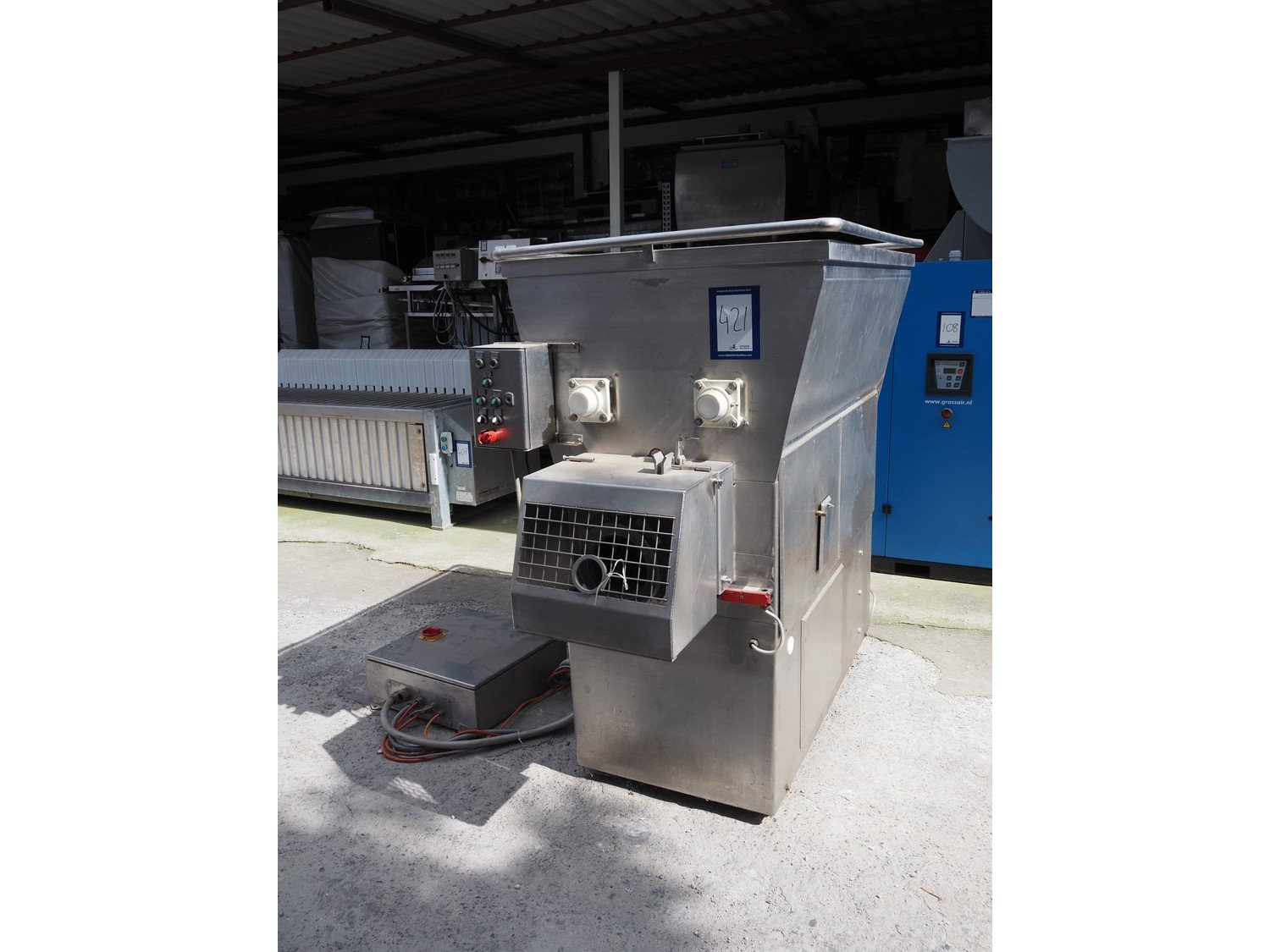 S/s grinder, diameter plate: 180 mm, dimensions: 960 mm x 2080 mm x 1800 mm. Including switch cabinet, dimensions: 600 mm x 600 mm x 250 mm.