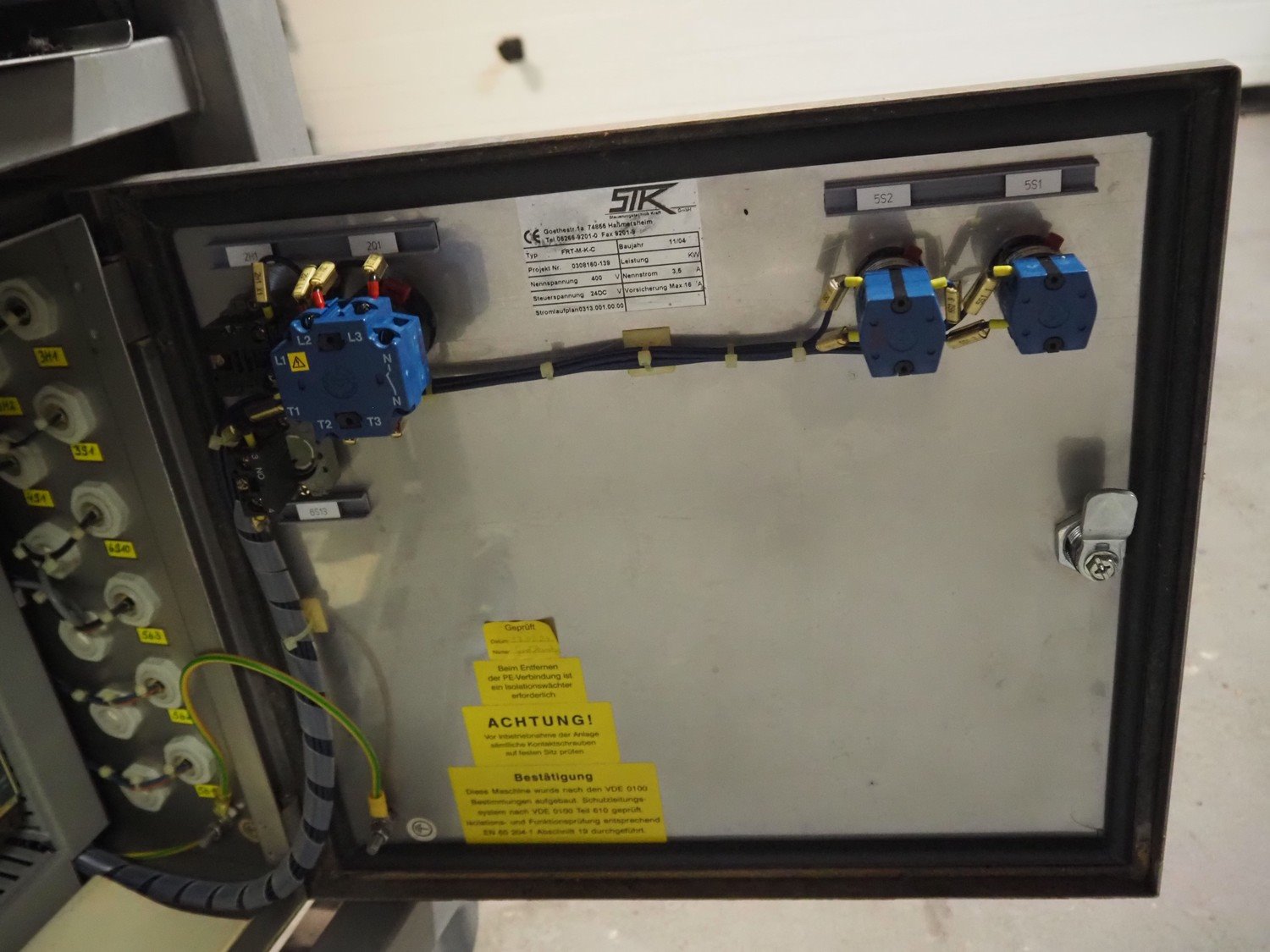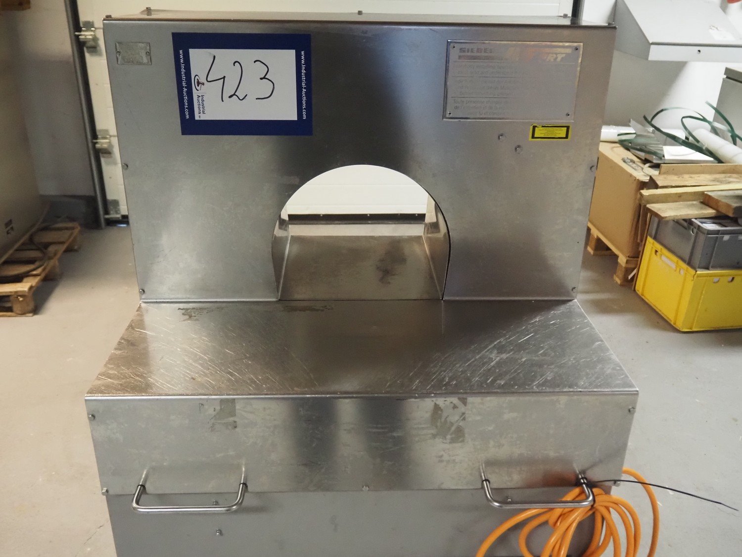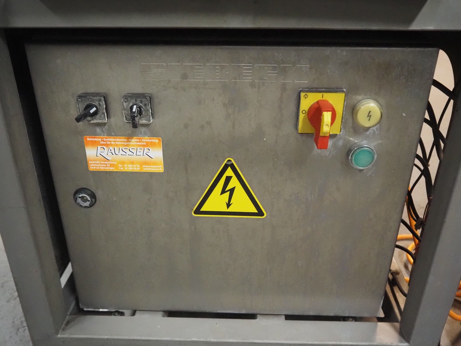 Siebeck mobile binding machine, type: FRT-MF, machine number: 04/04116830, year of construction: 2004, 400 V, 3 Ph, 50 Hz, 1.4 kW, clearance: 280 mm x 230 mm, total dimensions: 740 mm x 620 mm x 1370 mm.