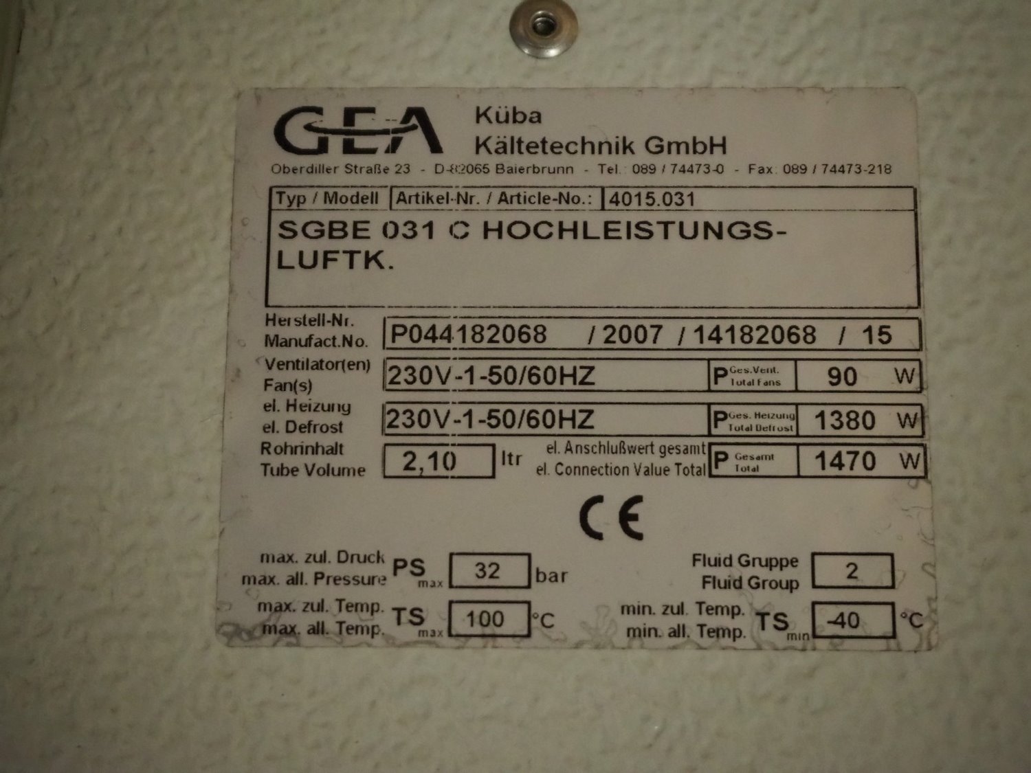 5 various evaporators, among others: 2 Küba evaporators, model: (2x) SGBE 031 C HOCHLEISTUNGS-LUFTK., Walter Roller GmbH & Co. Evaporator, model: HVS 403, various dimensions, among other: 750 mm x 540 mm x 460 mm and 600 mm x 400 mm x 450 mm.