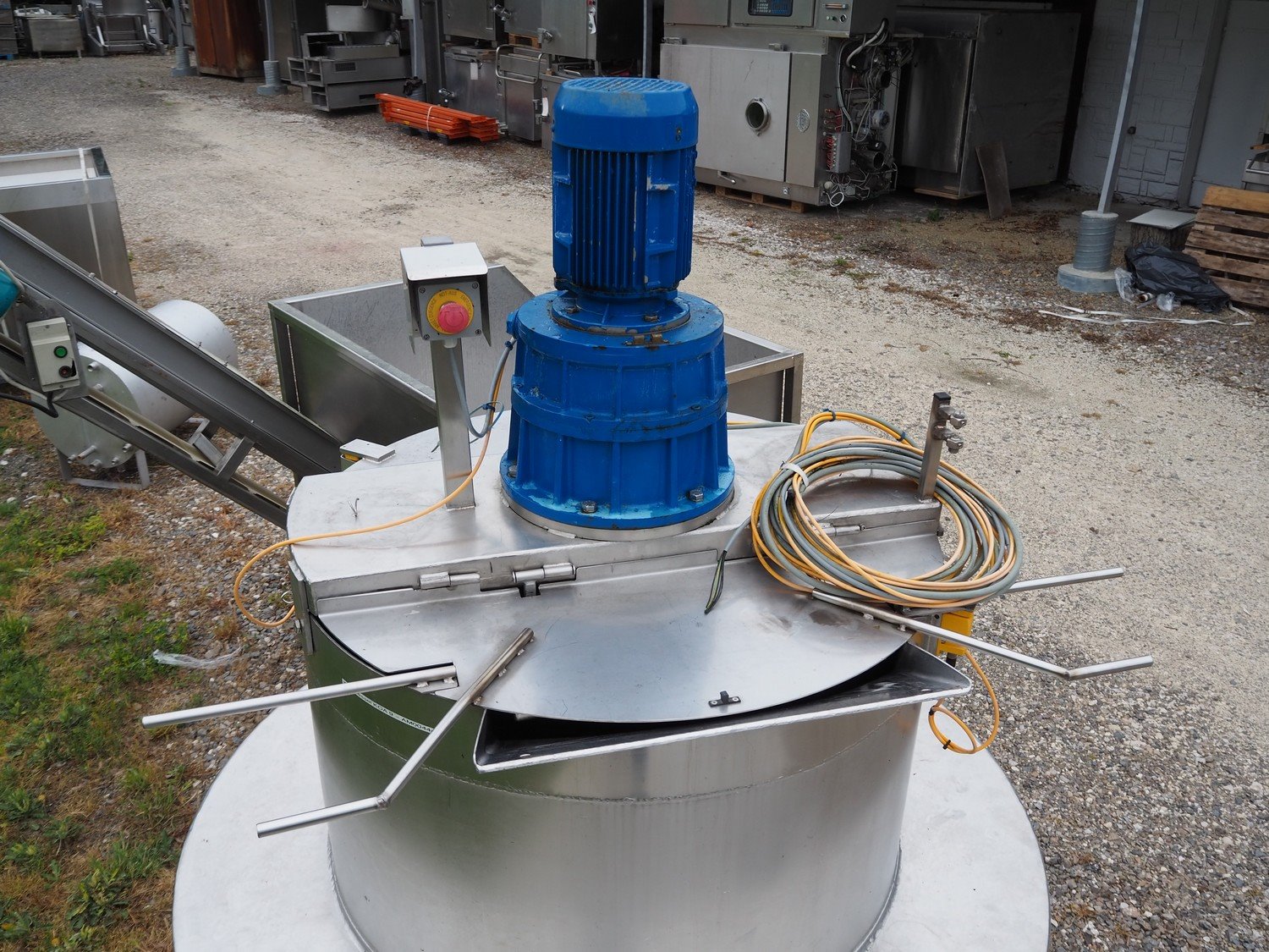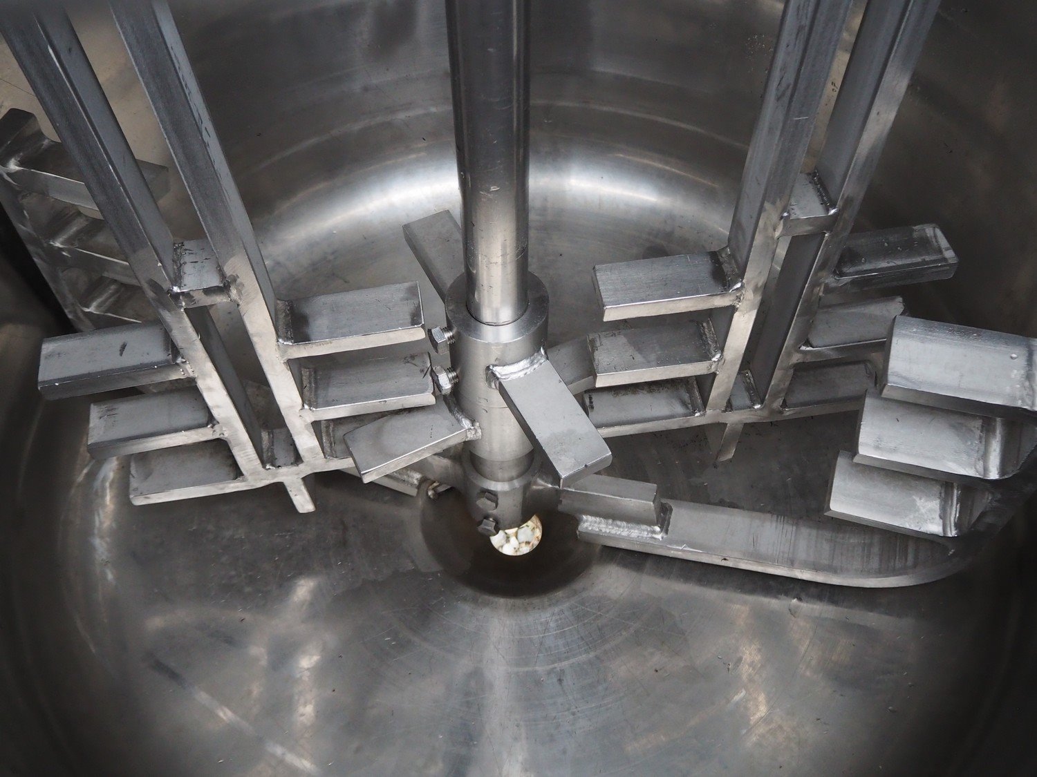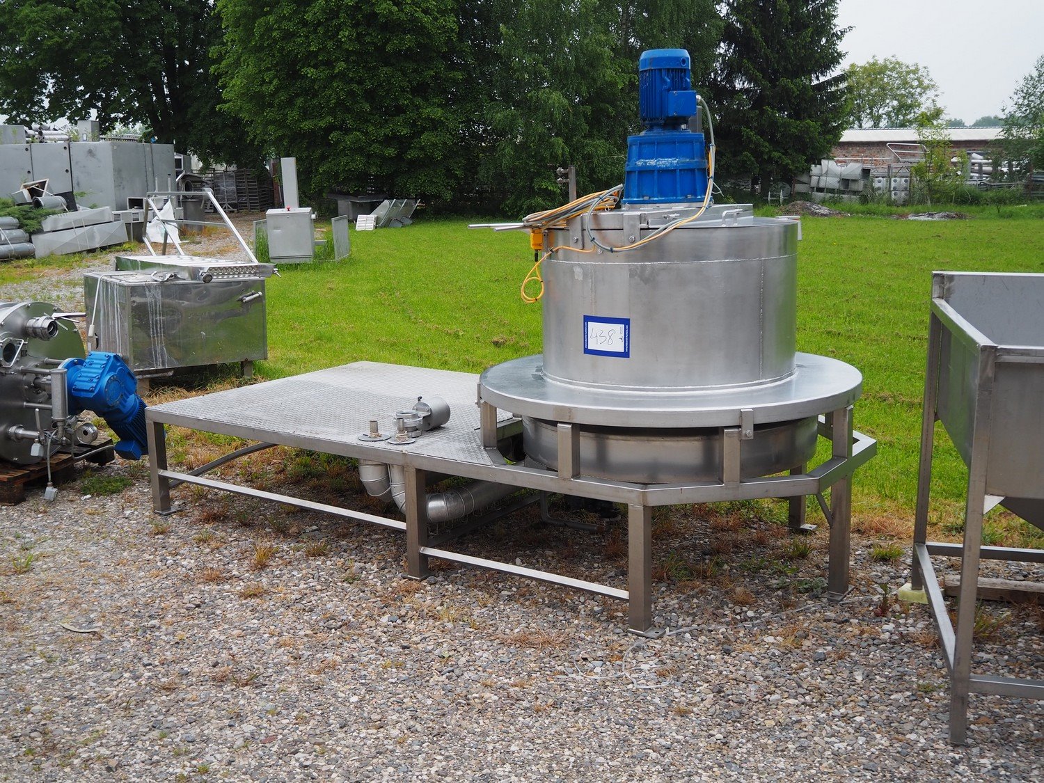 S/s cooking vessel with agitator on s/s platform, inside dimensions: Ø 1000 mm x 900 mm, total dimensions: 3200 mm x 1600 mm x 2150 mm.