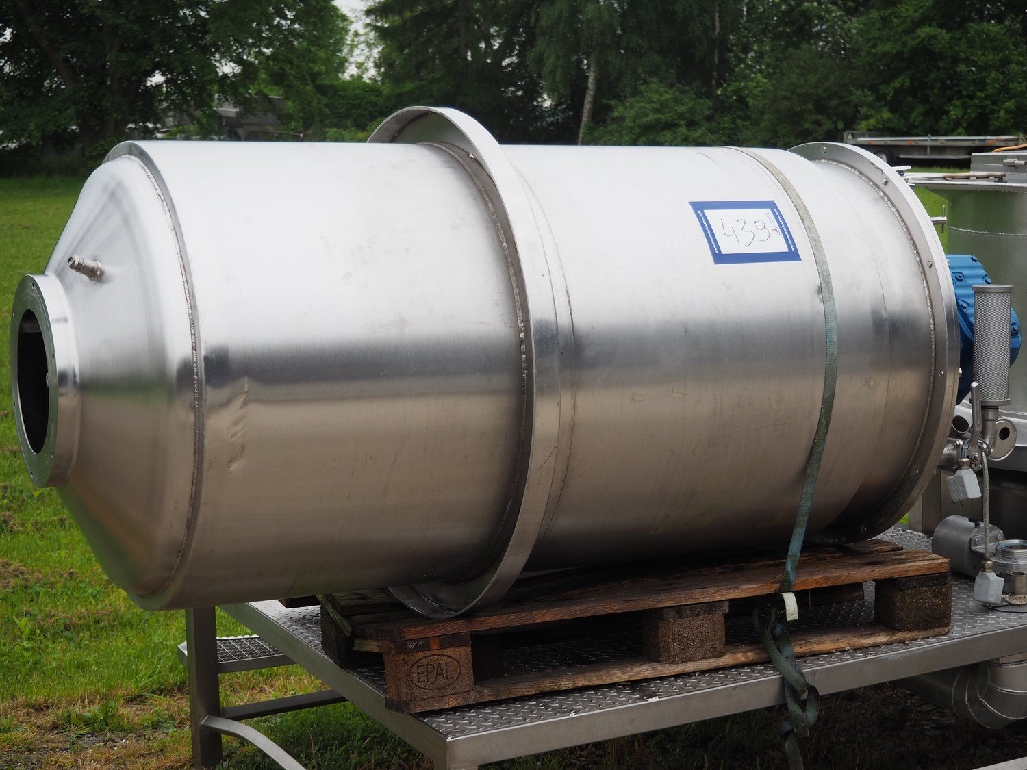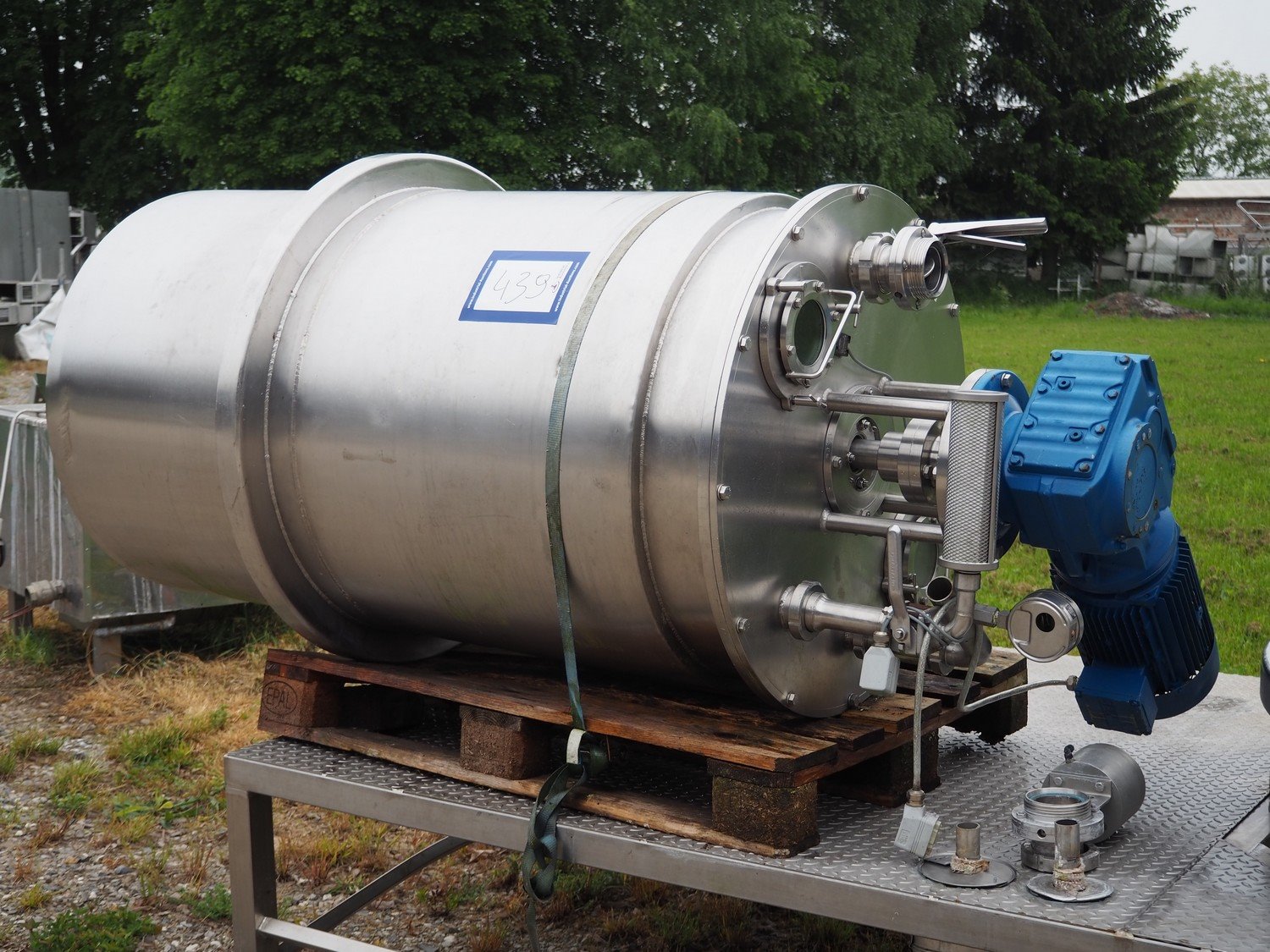 S/s tank with agitator, dimensions: Ø 900 mm x 2150 mm.