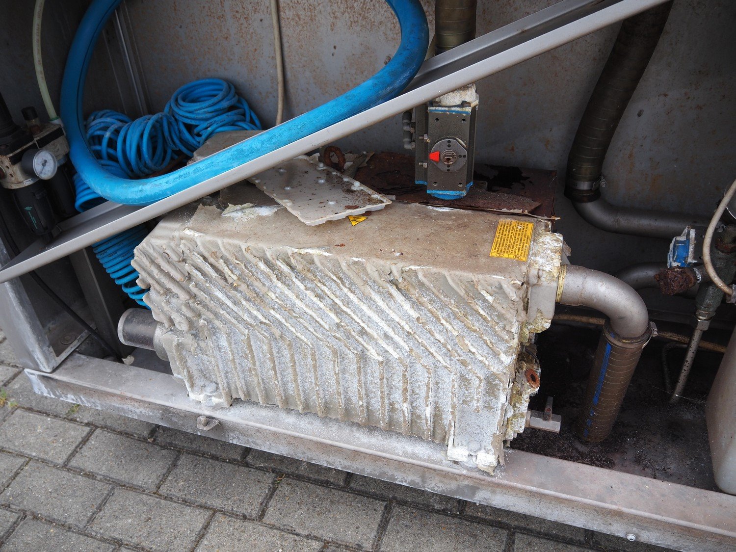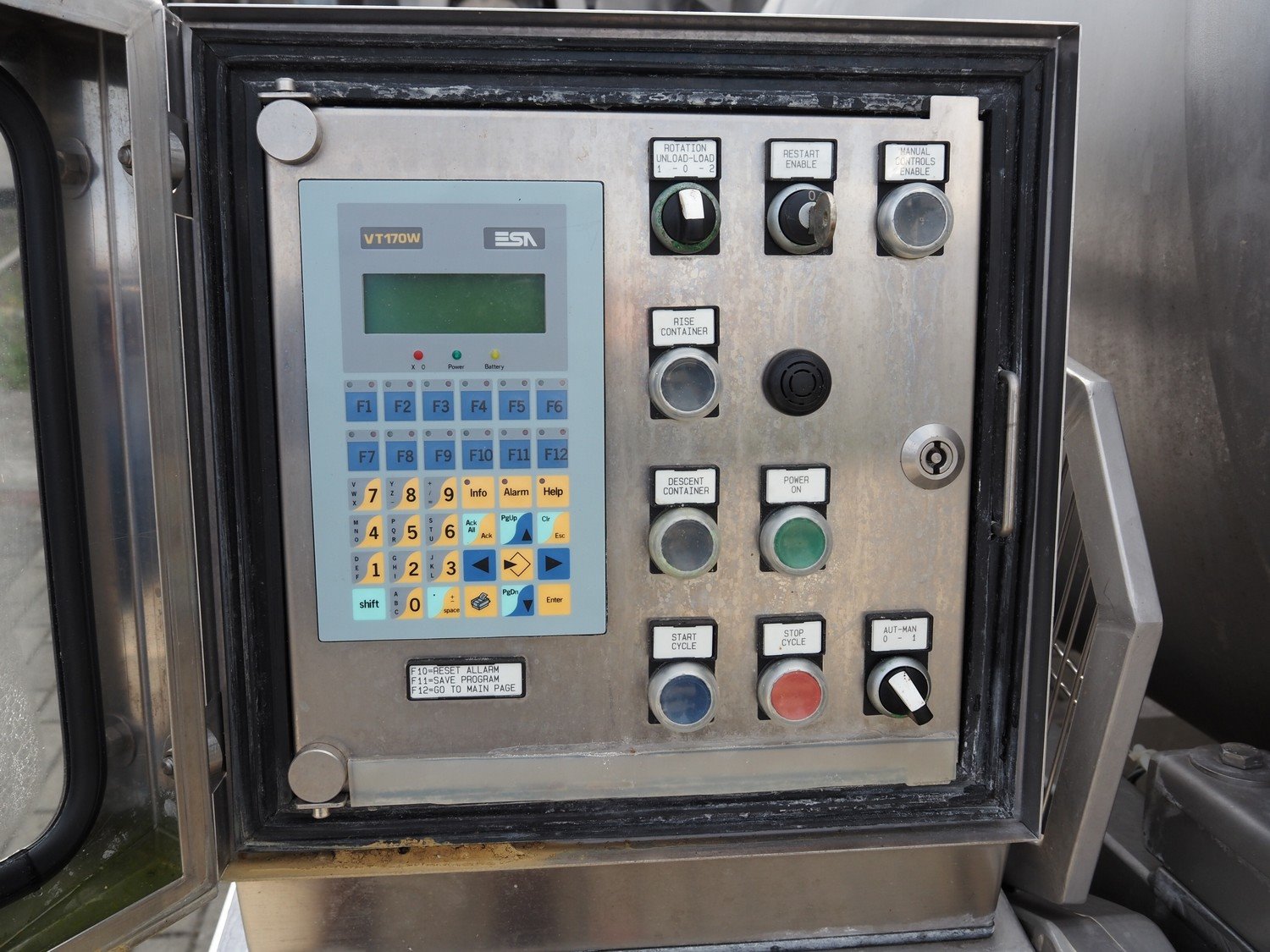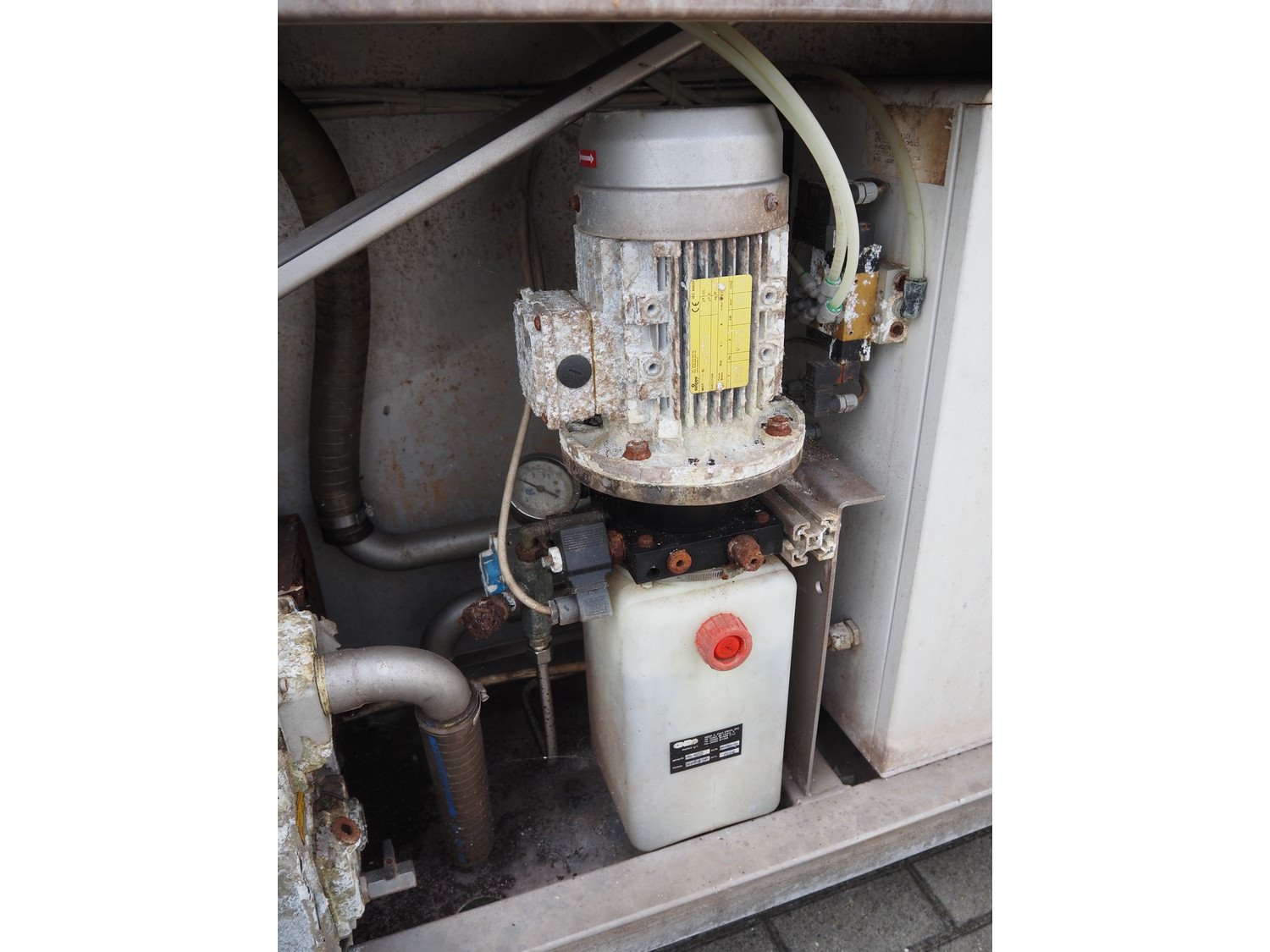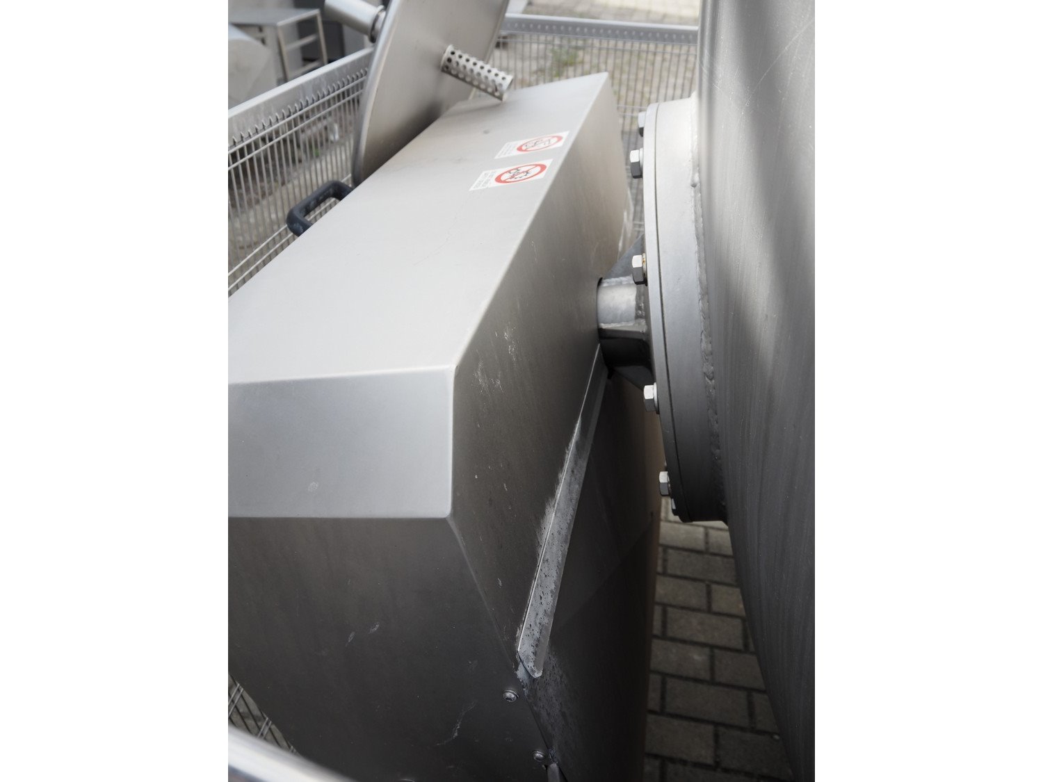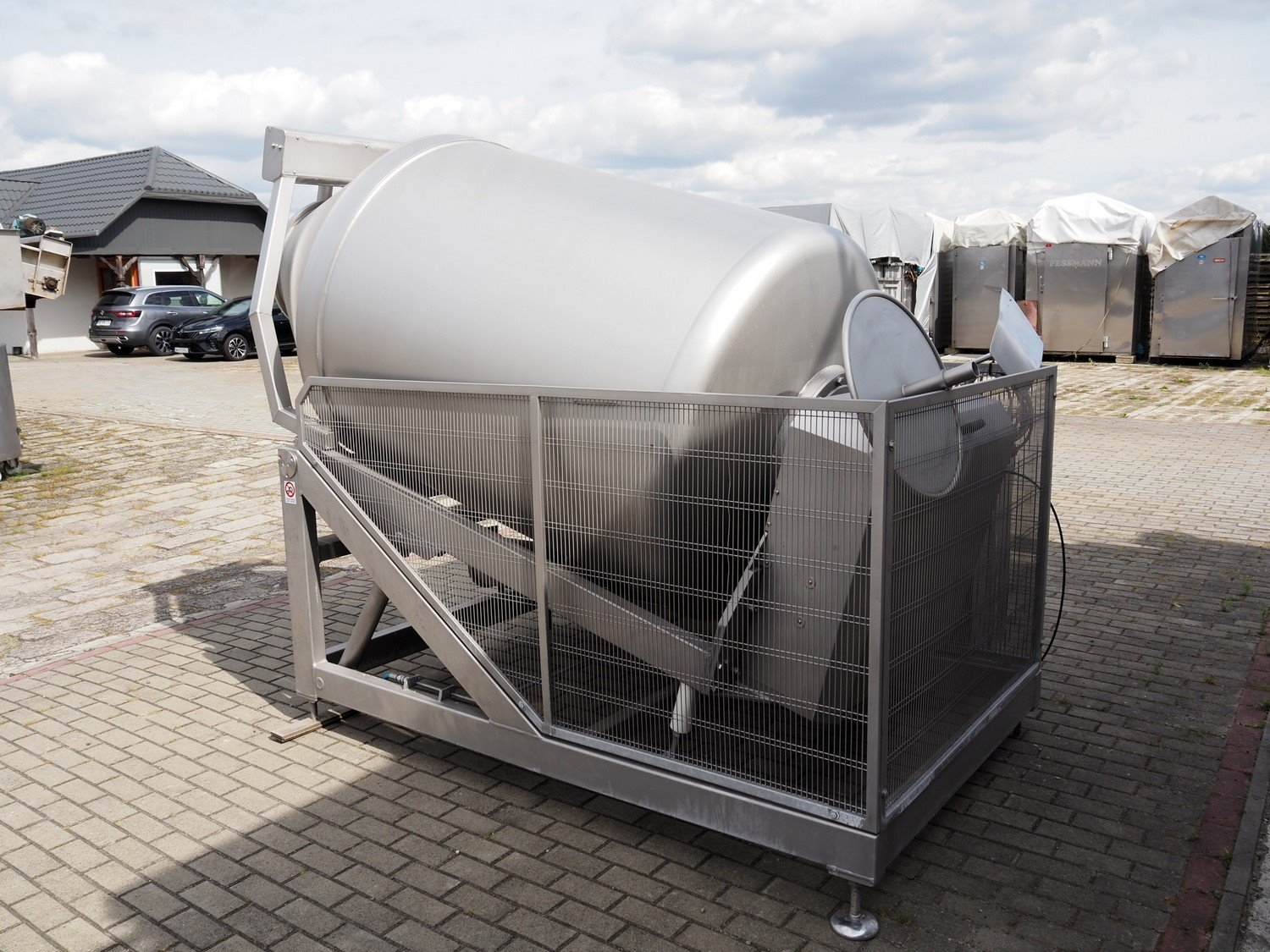 Travaglini S.p.A. vacuum tumbler, type: TUMBLER UNIT 1500, year of construction: 2008, 400 V, 3 Ph, 50 Hz, 4.5 kW, weight: 1300 kg, volume: 1500 liters, with Multivac vacuum pump, dimensions: 3100 mm x 1900 mm x 2200 mm.