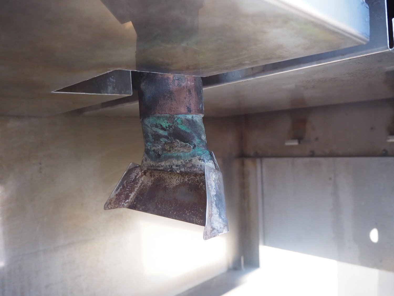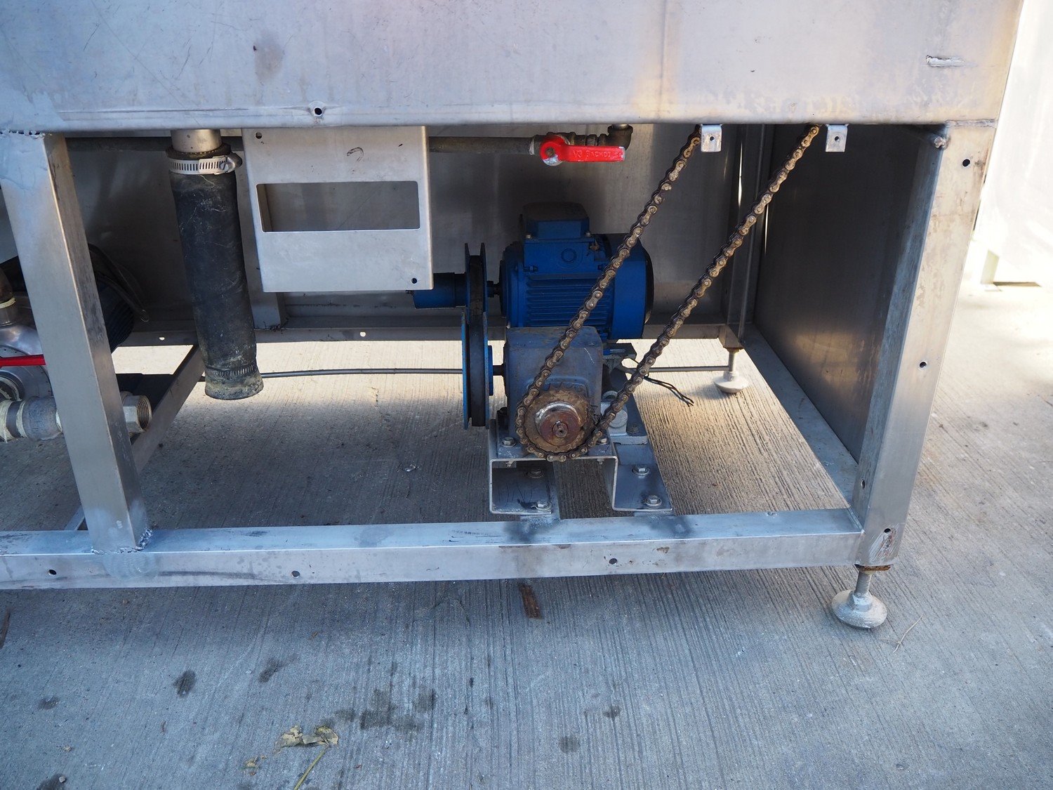 Cryovac shrink tunnel, s/s belt, belt width: 440 mm, clearance: 440 mm x 210 mm, total dimensions: 850 mm x 2000 mm x 1700 mm. Missing display.