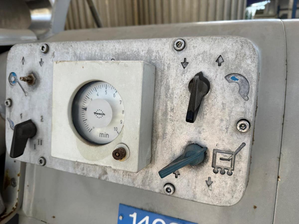Alpina bowl cutter with lifter for meat bins and ejector, steel bowl, dimensions bowl: Ø 1450 mm x 320 mm, total dimensions: 2800 mm x 2100 mm x 2100 mm.