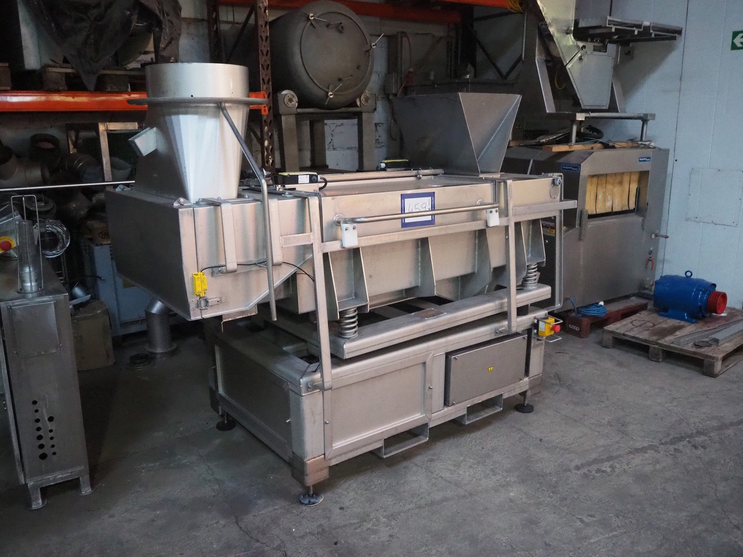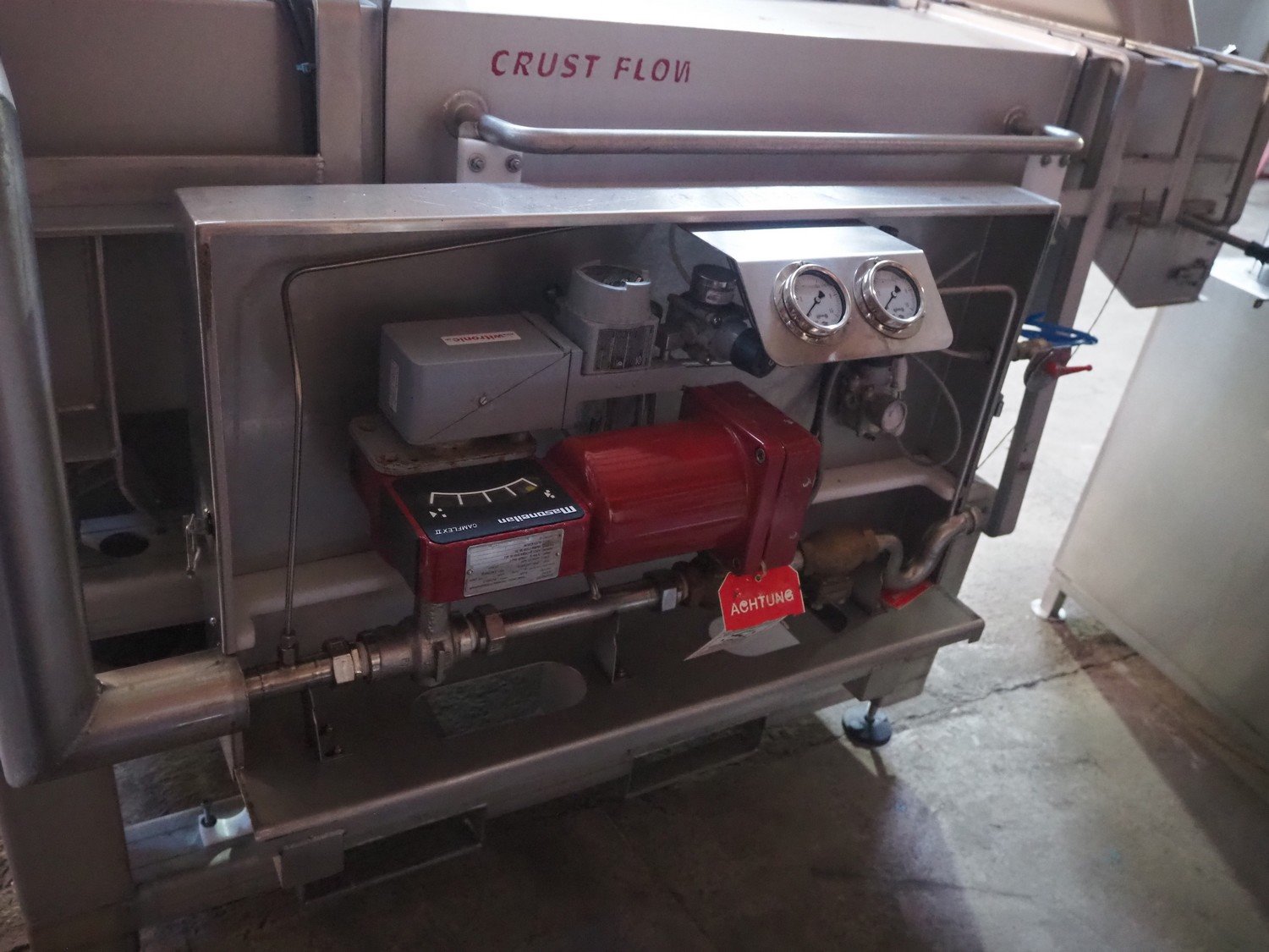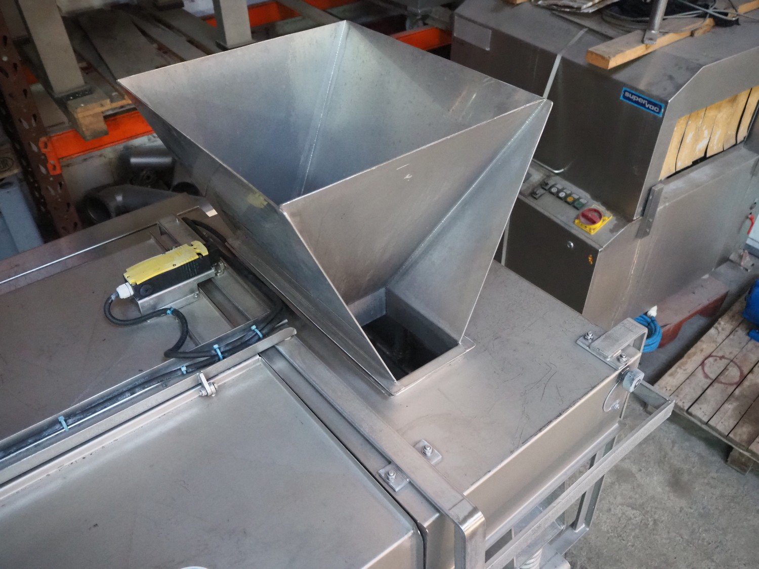 Serap shock freezing tunnel, type: crust flow V2, number: V 03.10, year of construction: 2014, 400 V, 3P+ PE, 1 kW, 1000 kg, s/s gutter, gutter width: 535 mm, total dimensions: 2180 mm x 1500 mm x 1800 mm.