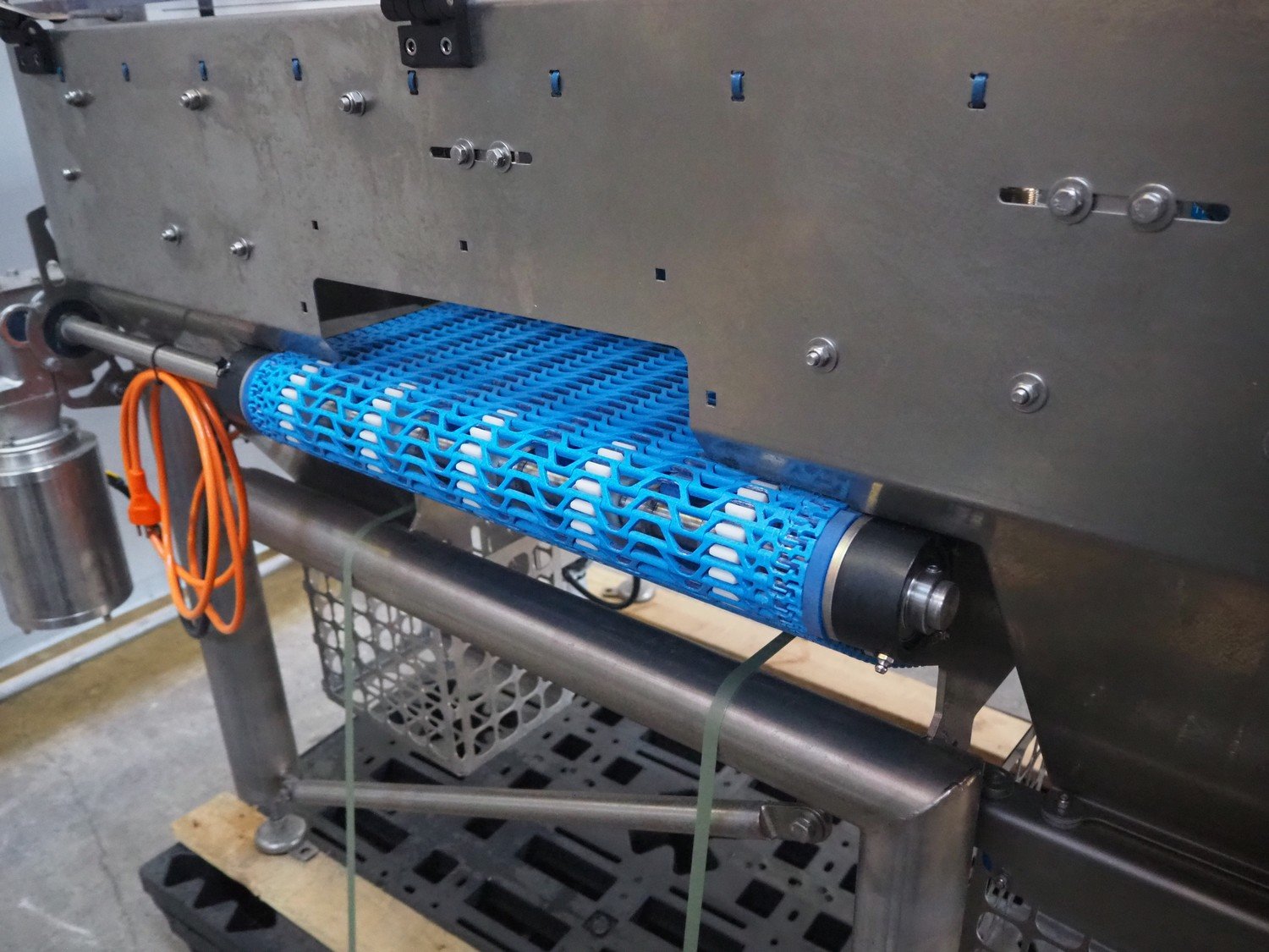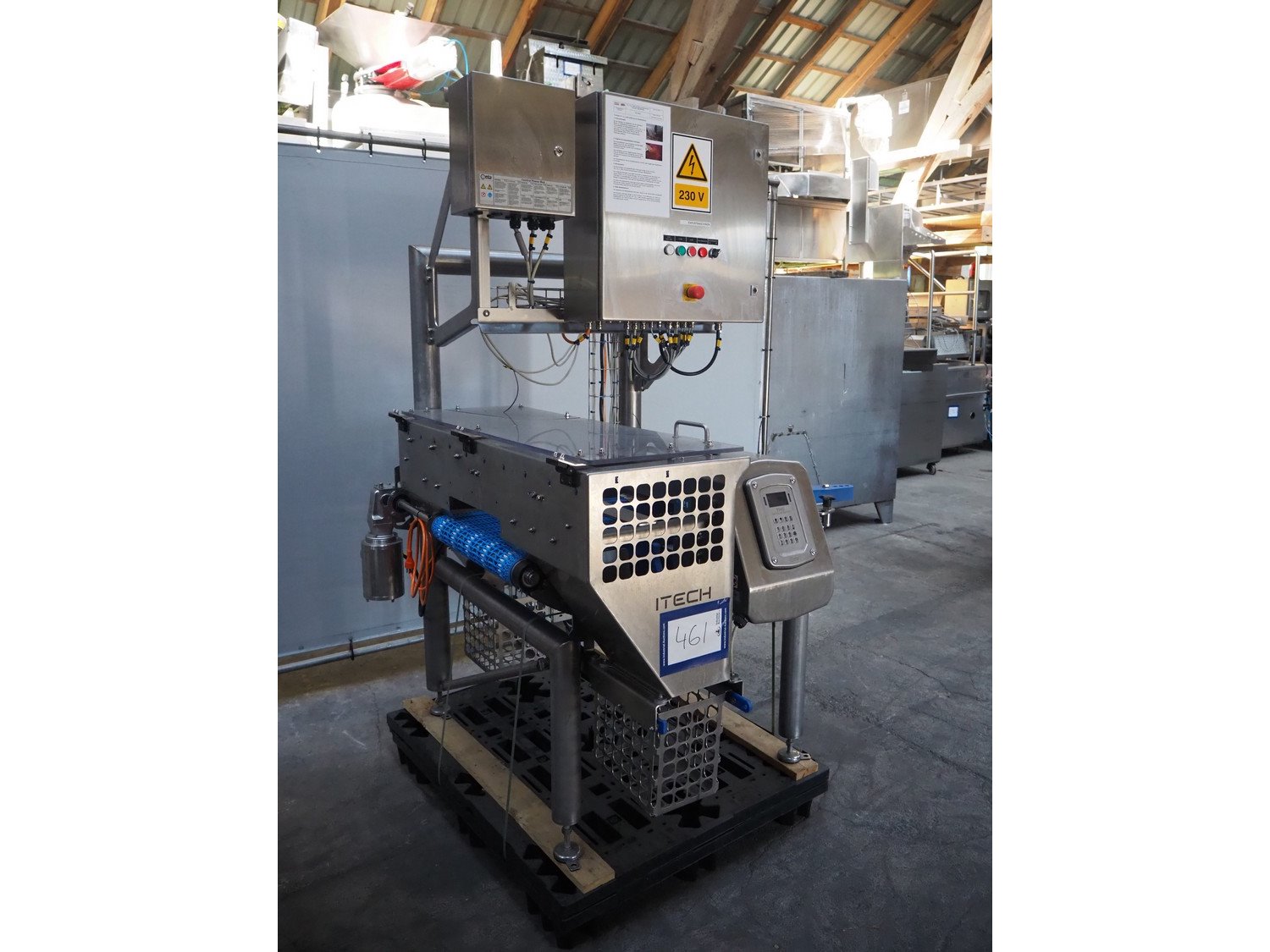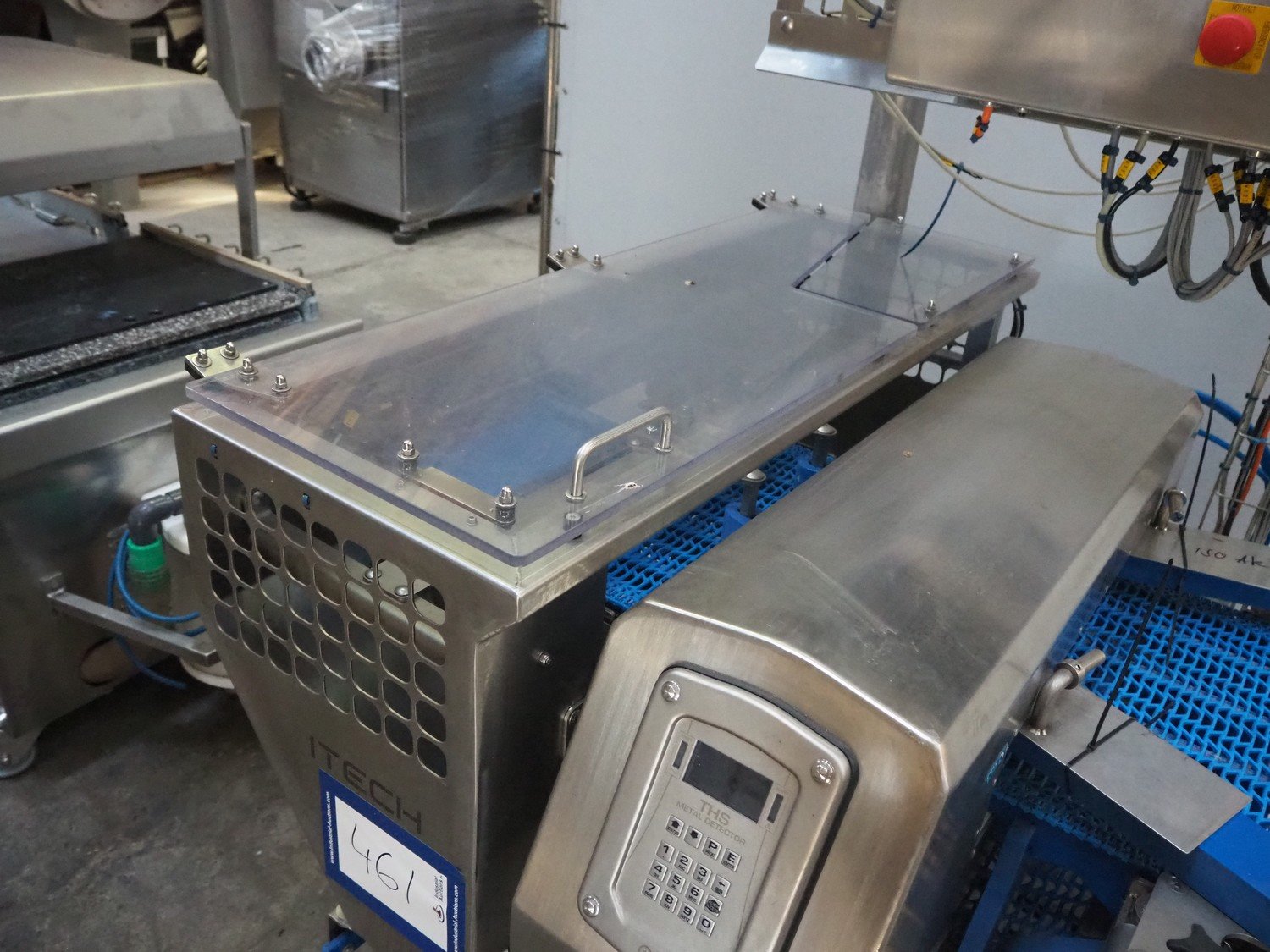 ITECH AG inlining system, type: Conveyor System A, number: 20619, year of construction: 2021, 230 V, 1 Ph, 50 Hz, 3 A, 0.6 kW, with CEIA THS metal detector, plastic mesh belt, belt width: 500 mm, clearance: 500 mm x 130 mm, total dimensions: 1500 mm x 1200 mm x 2160 mm.