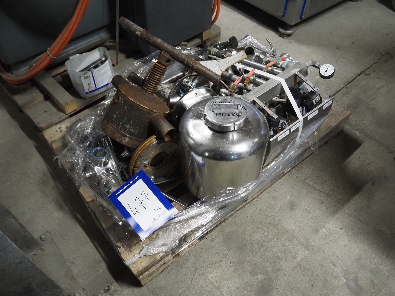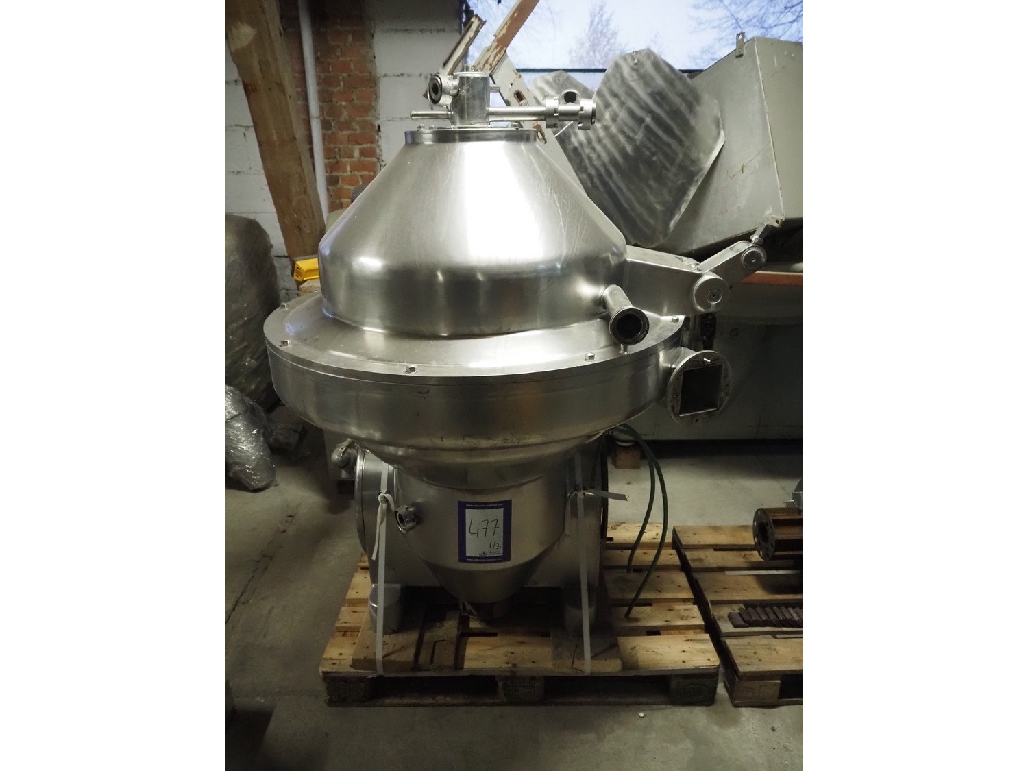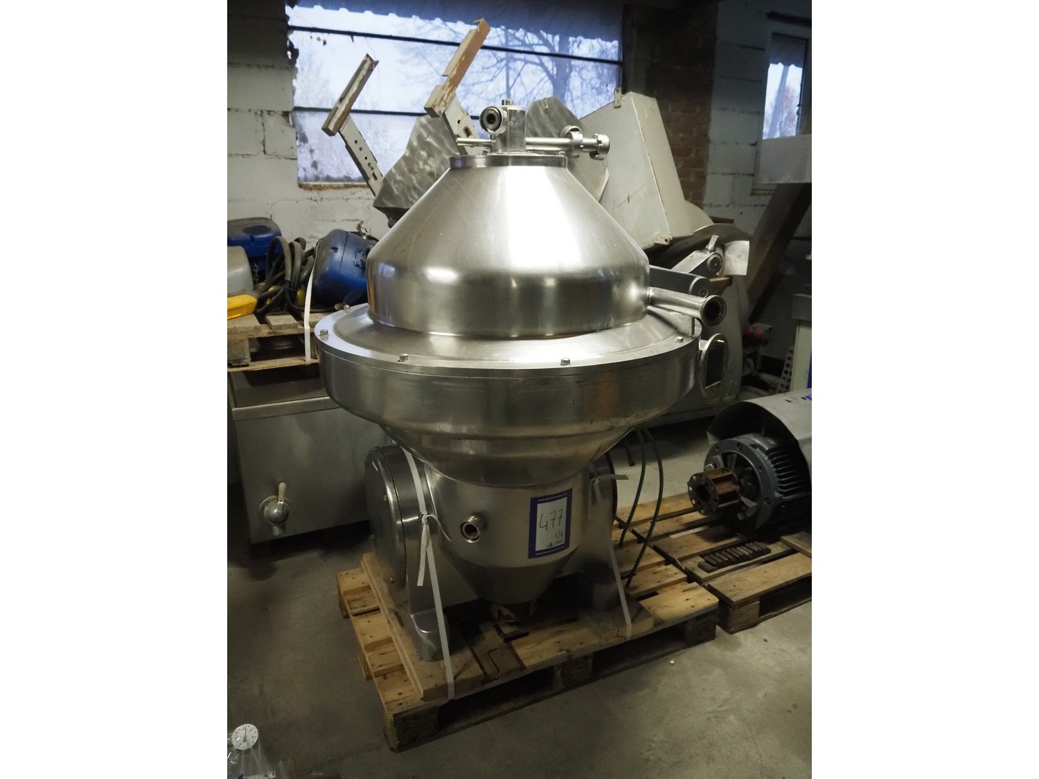 VEB machinenfabrik milk separator, type: SMZA/1, year of construction: 1975, dimensions: 1300 mm x 1100 mm x 1800 mm. 1 pallet with motor and 1 pallet with parts.