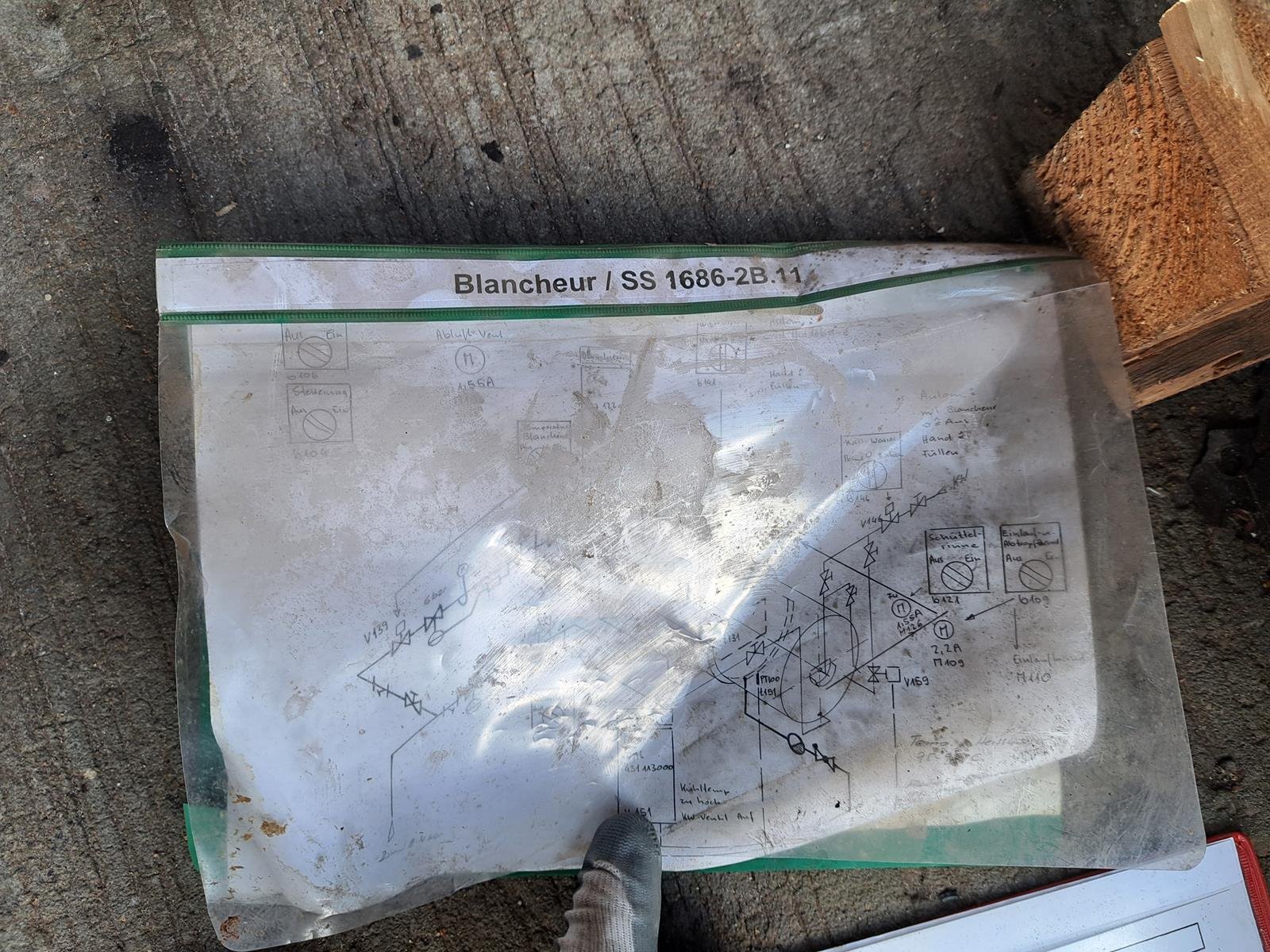 Hero Schweiz BLB blancher, steam heated, dimensions: 3900 mm x 1600 mm x 1800 mm. Including pallet with switch cabinet.