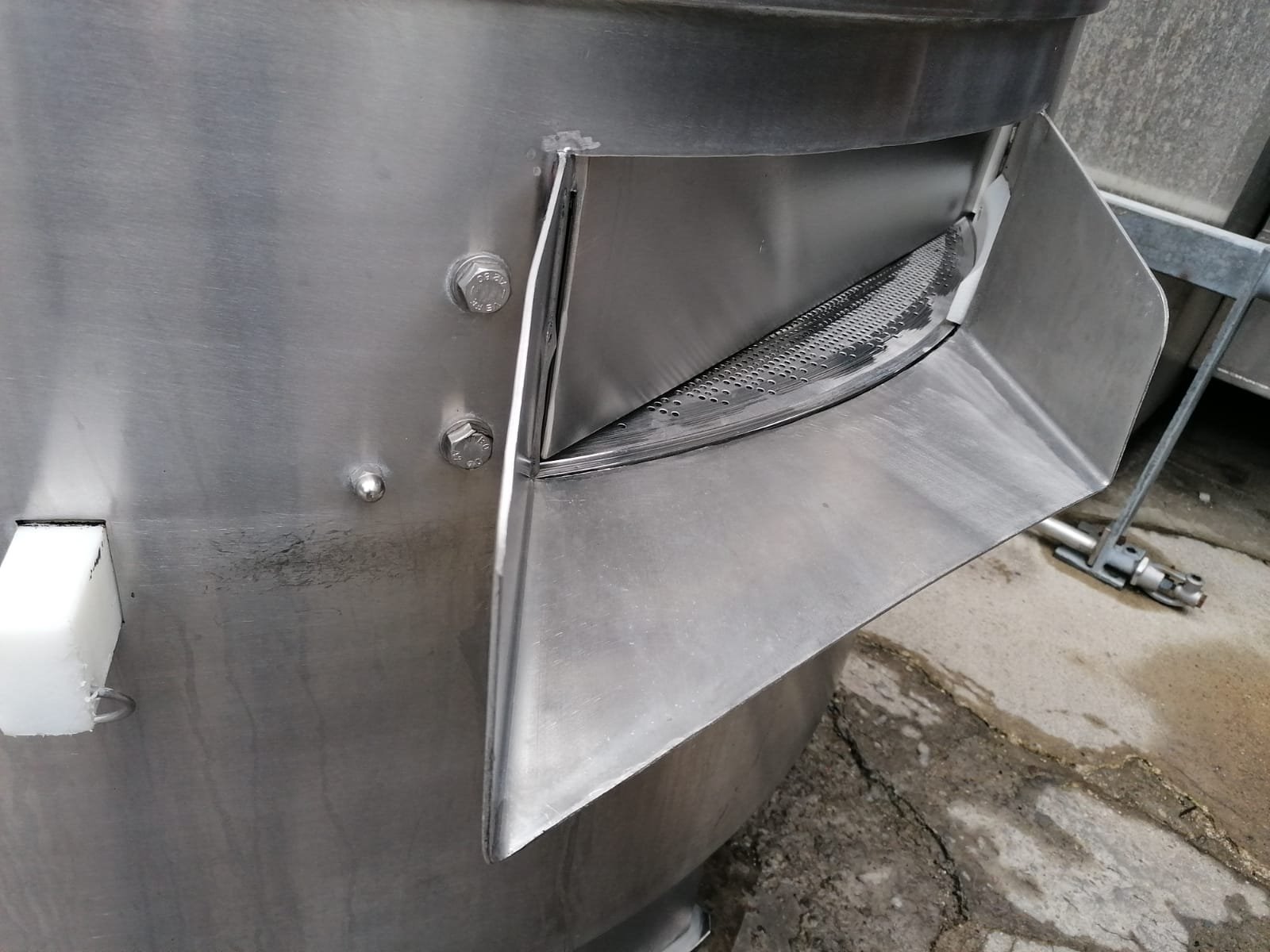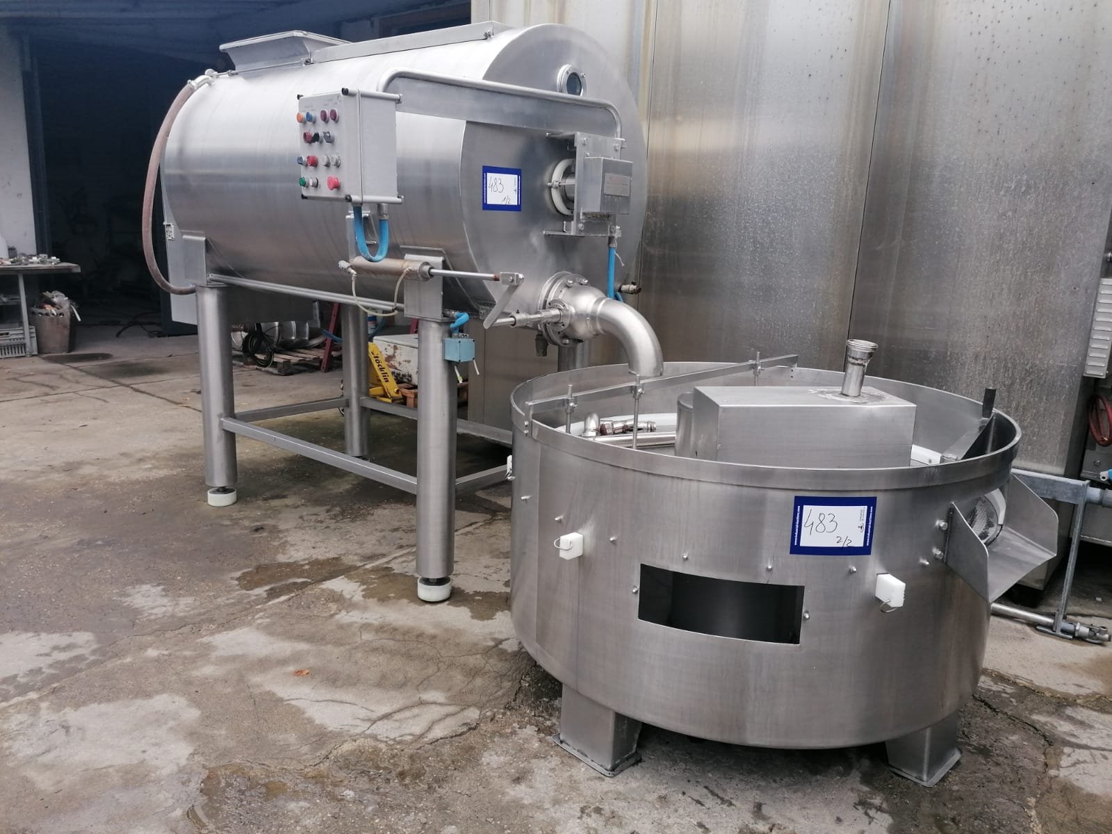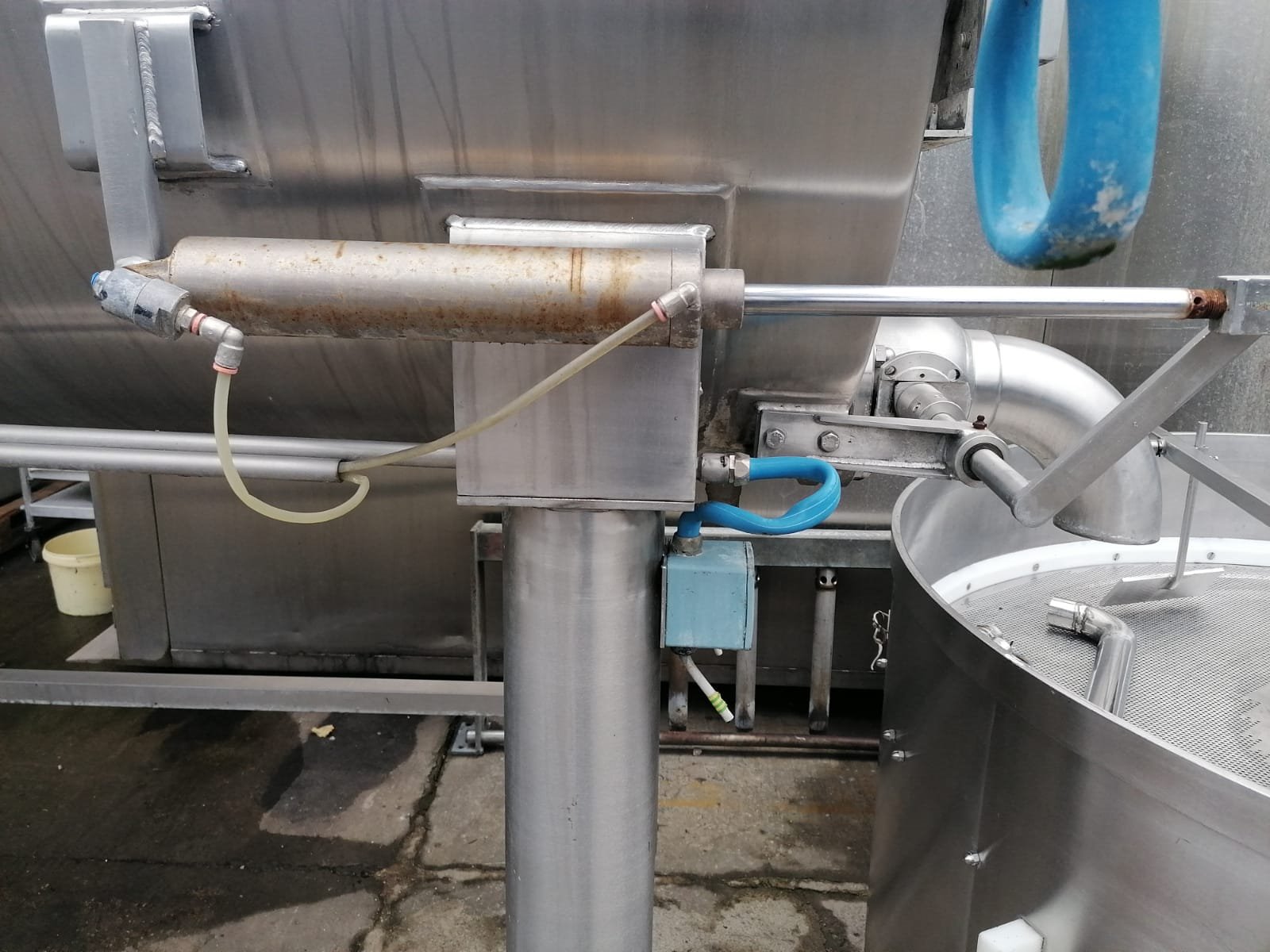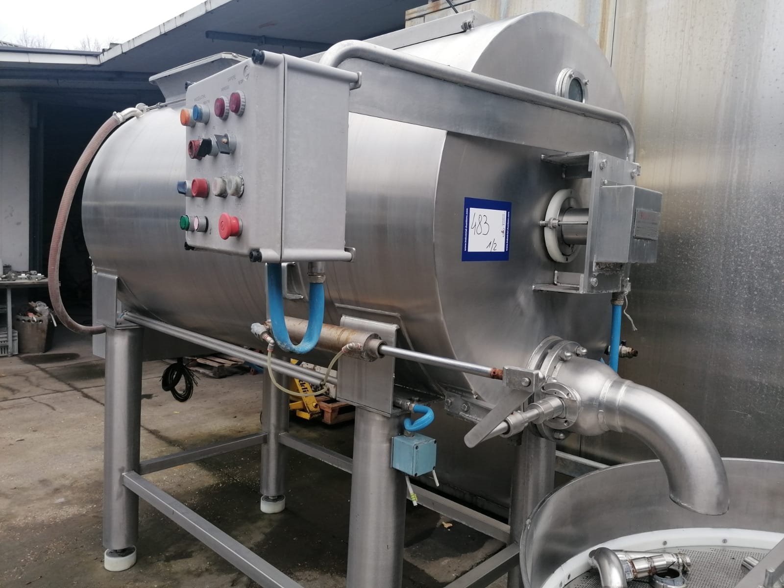 Velati scalding machine for heating and washing fat, type: SLL 1500 LL (Scalda Lava Lardello), 380 V, 50 Hz, steam heated cylindrical tank with agitators, tank capacity: 1500 liter, rotating filter in set, dimensions tank: 3000 mm x 1650 mm x 2300 mm, dimensions filter: 1800 mm x 1800 mm x 1100 mm.