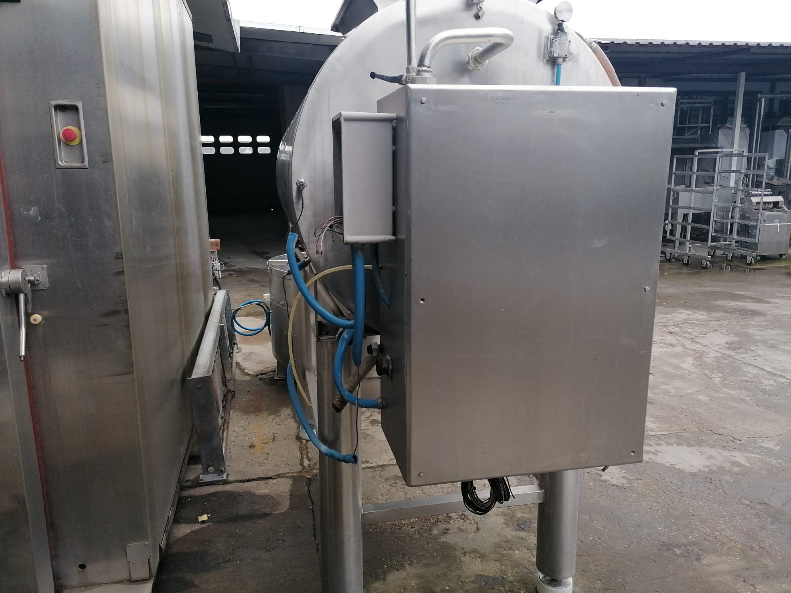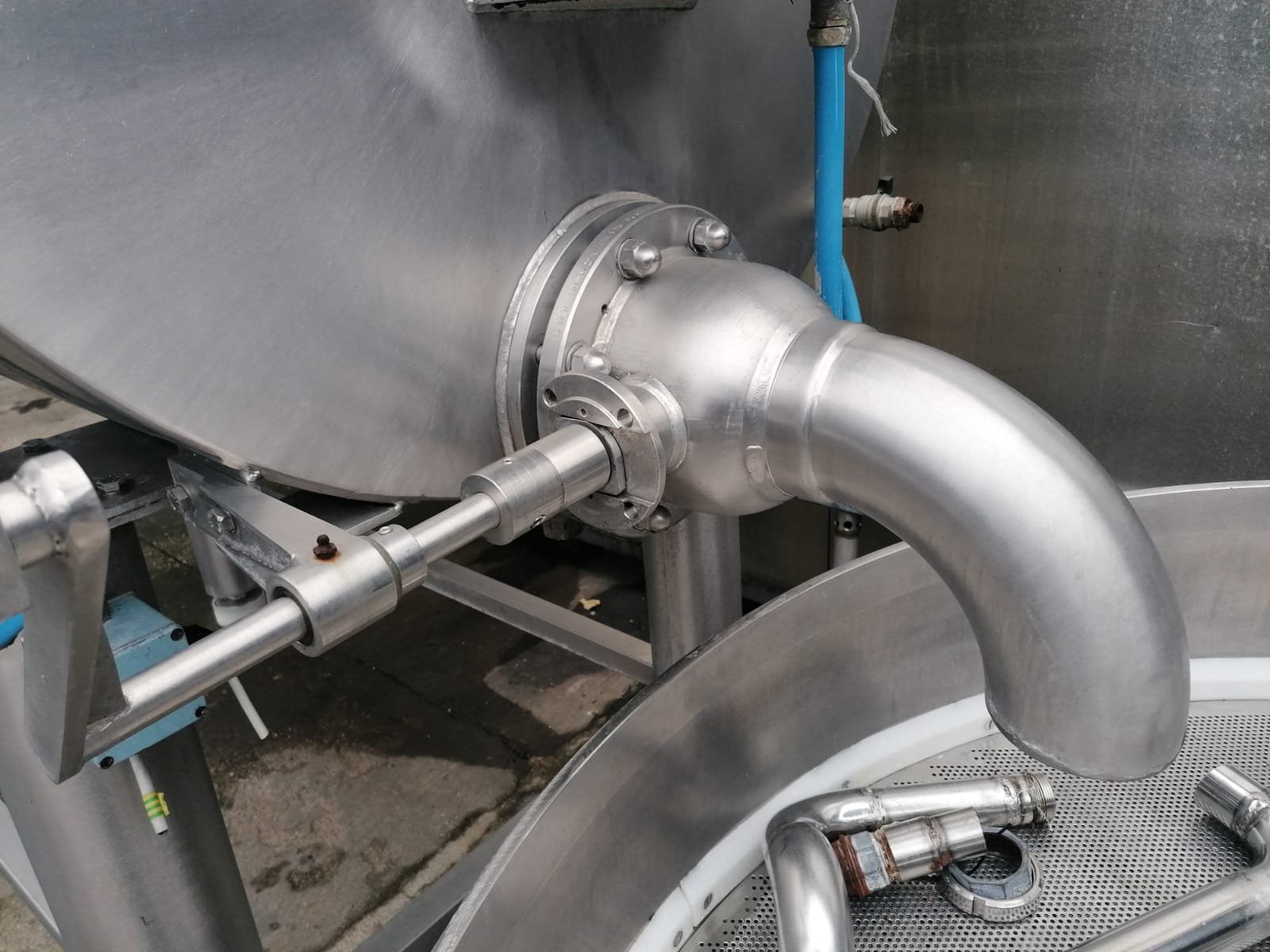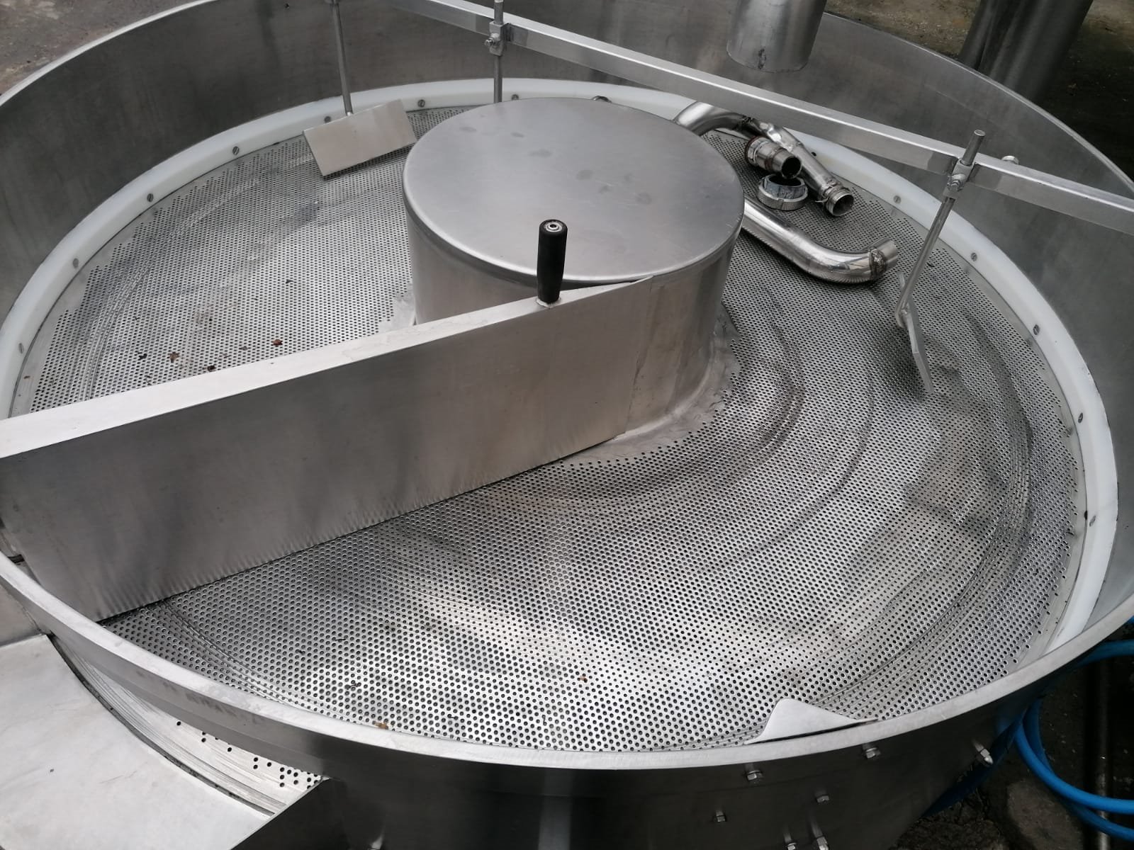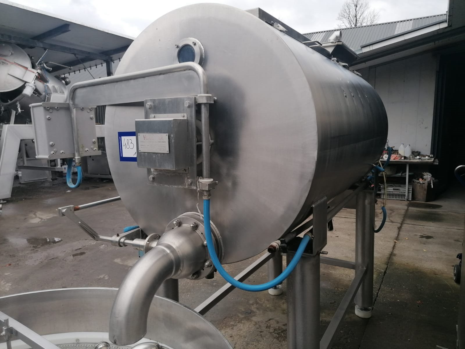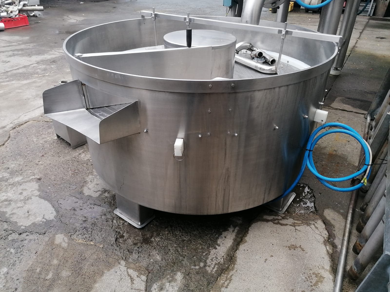Velati scalding machine for heating and washing fat, type: SLL 1500 LL (Scalda Lava Lardello), 380 V, 50 Hz, steam heated cylindrical tank with agitators, tank capacity: 1500 liter, rotating filter in set, dimensions tank: 3000 mm x 1650 mm x 2300 mm, dimensions filter: 1800 mm x 1800 mm x 1100 mm.