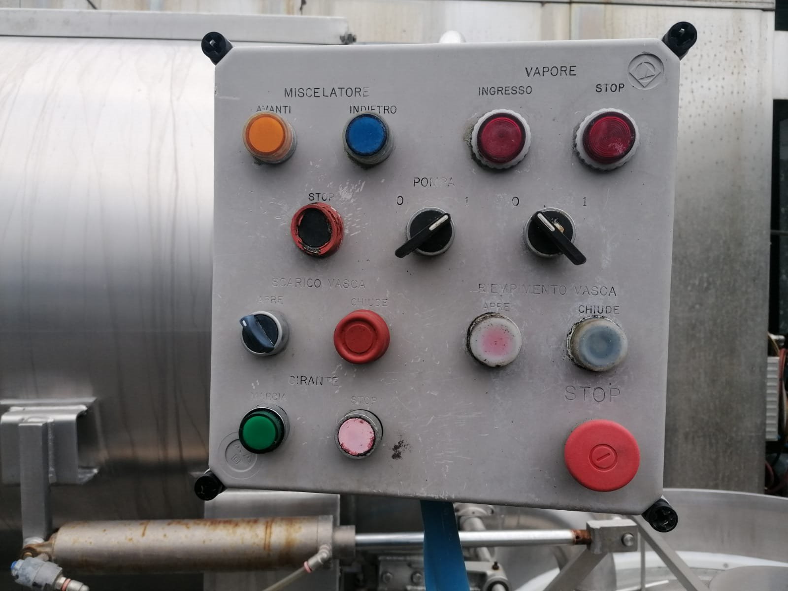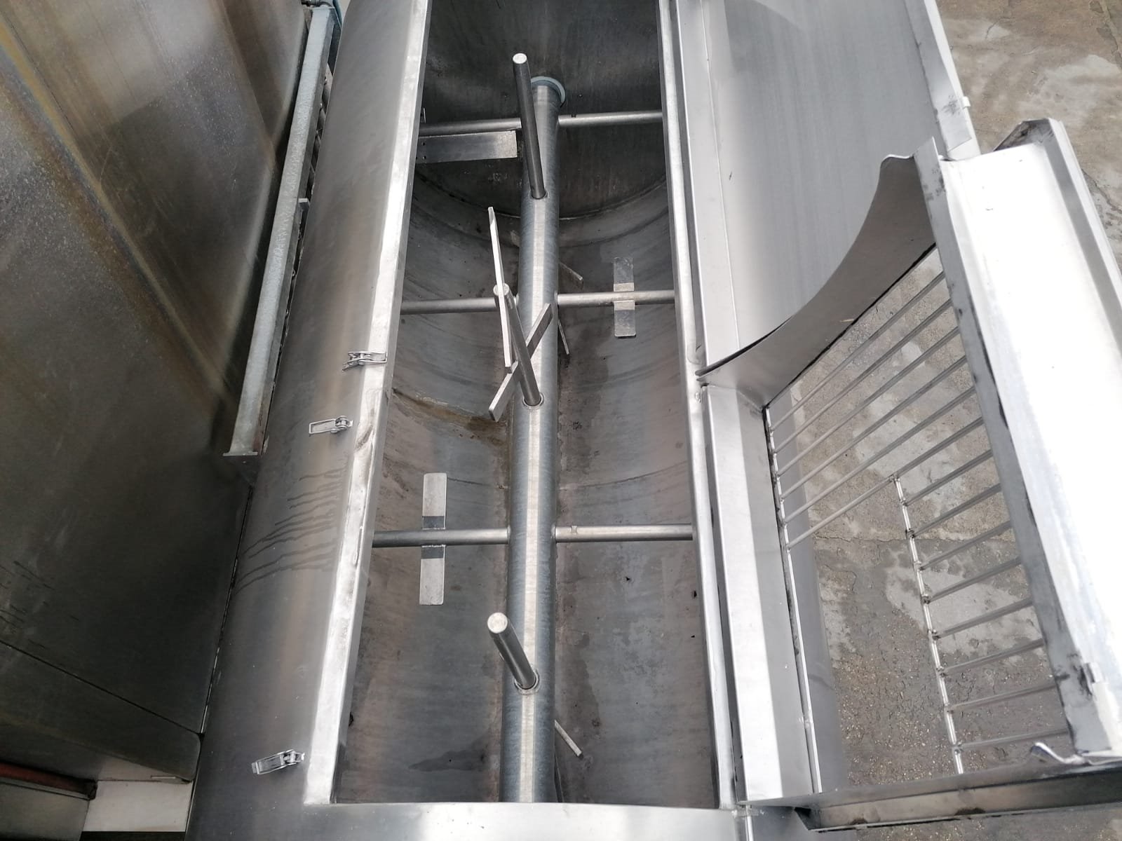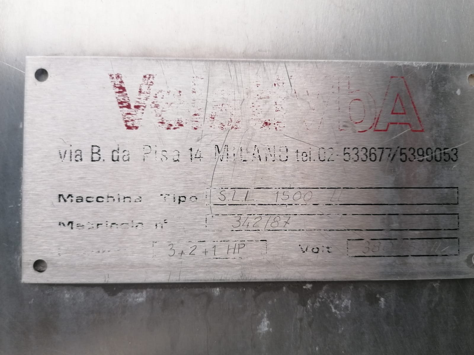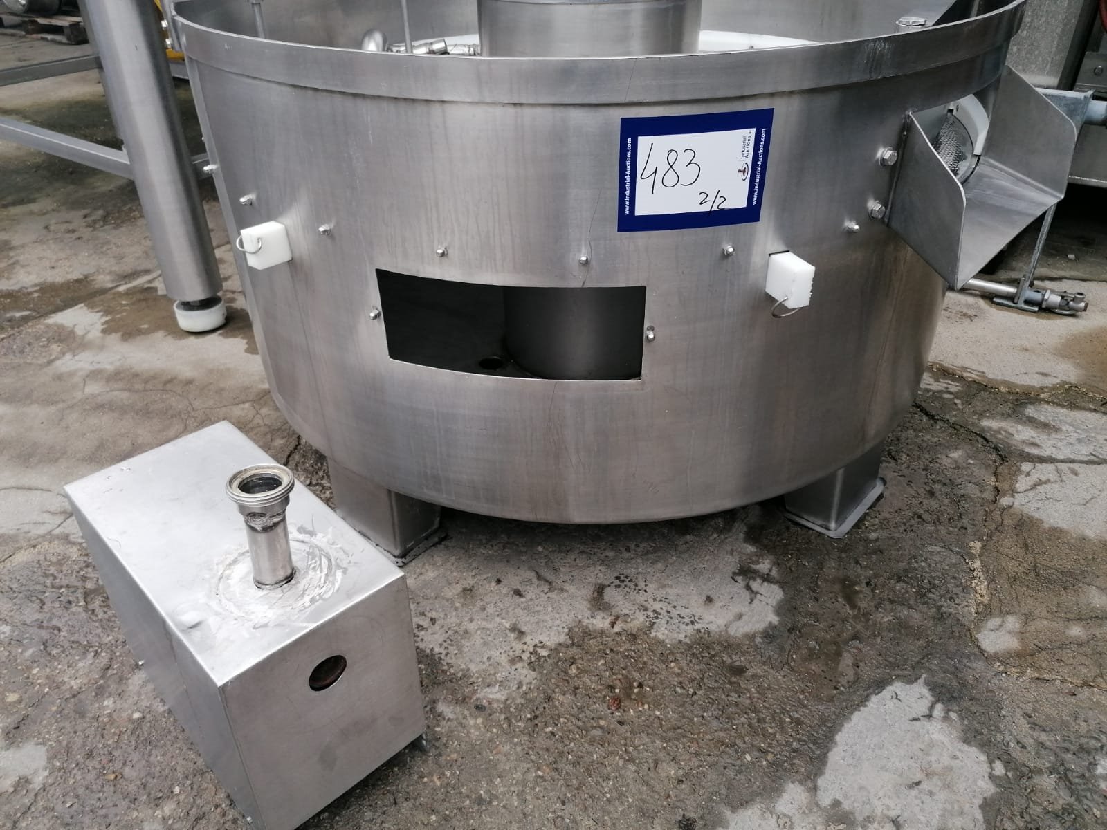 Velati scalding machine for heating and washing fat, type: SLL 1500 LL (Scalda Lava Lardello), 380 V, 50 Hz, steam heated cylindrical tank with agitators, tank capacity: 1500 liter, rotating filter in set, dimensions tank: 3000 mm x 1650 mm x 2300 mm, dimensions filter: 1800 mm x 1800 mm x 1100 mm.