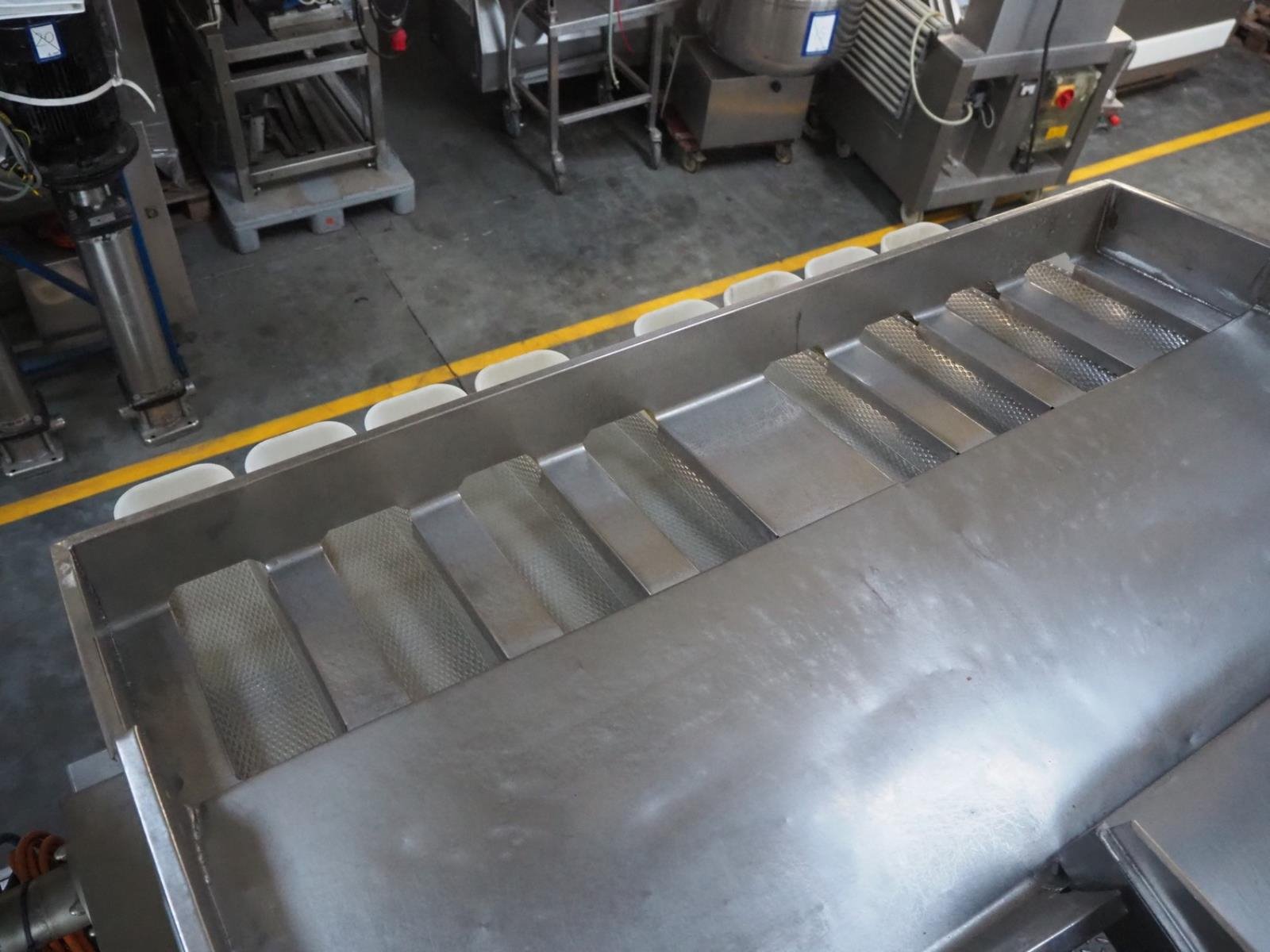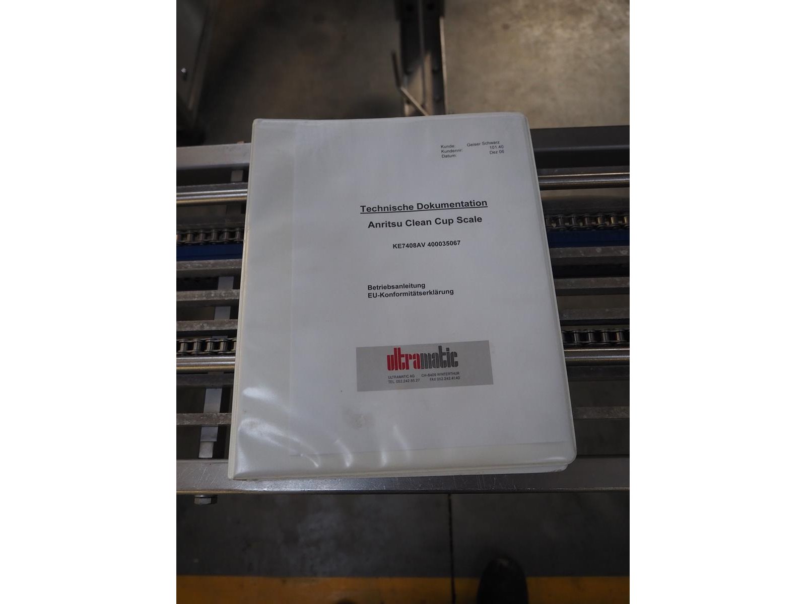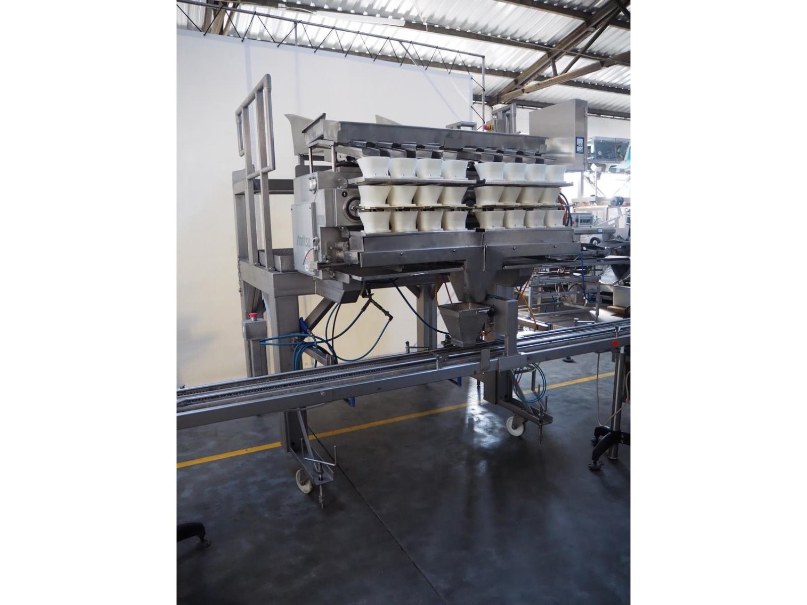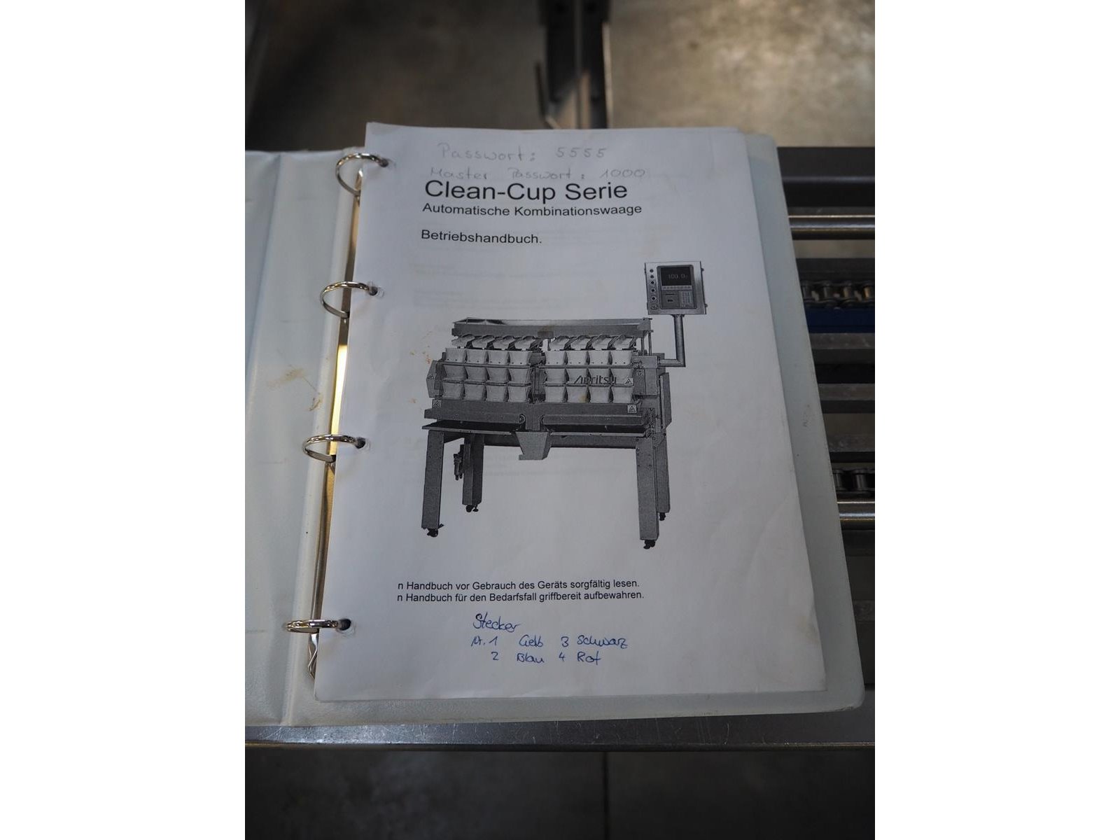 Anritsu/CFS mobile weighing and tray sealing line, consisting of: Anritsu 8 heads linear weigher with platform, type: KE7408AW, serial number: 460035067, year of construction: 2006, 200-240 VAC, 50/60 Hz, d= 0.1 g, capacity: 1-1000 g, maximum speed: 40 pieces per minute, s/s gutter, gutter width: 85 mm, total dimensions linear weigher: 2280 mm x 1880 mm x 2550 mm. Infeed belt, s/s frame, chain belt with dividers, distance between dividers: 295 mm, dividers height: 15 mm, belt width: 130 mm, total dimensions infeed belt: 3500 mm x 550 mm x 1210 mm. CFS traysealer, type: STAR2S, number: 695-113C, year of construction: 2005, 400 V, 3 Ph, 50 Hz, 14.5 A, 10 kW, weight: 1500 kg, infeed belt width: 150 mm, film width: 260 mm, dimensions dyes: (3x) 145 mm x 110 mm, total dimensions traysealer: 3800 mm x 1100 mm x 1850 mm. Vacuum pump Pallet with parts.