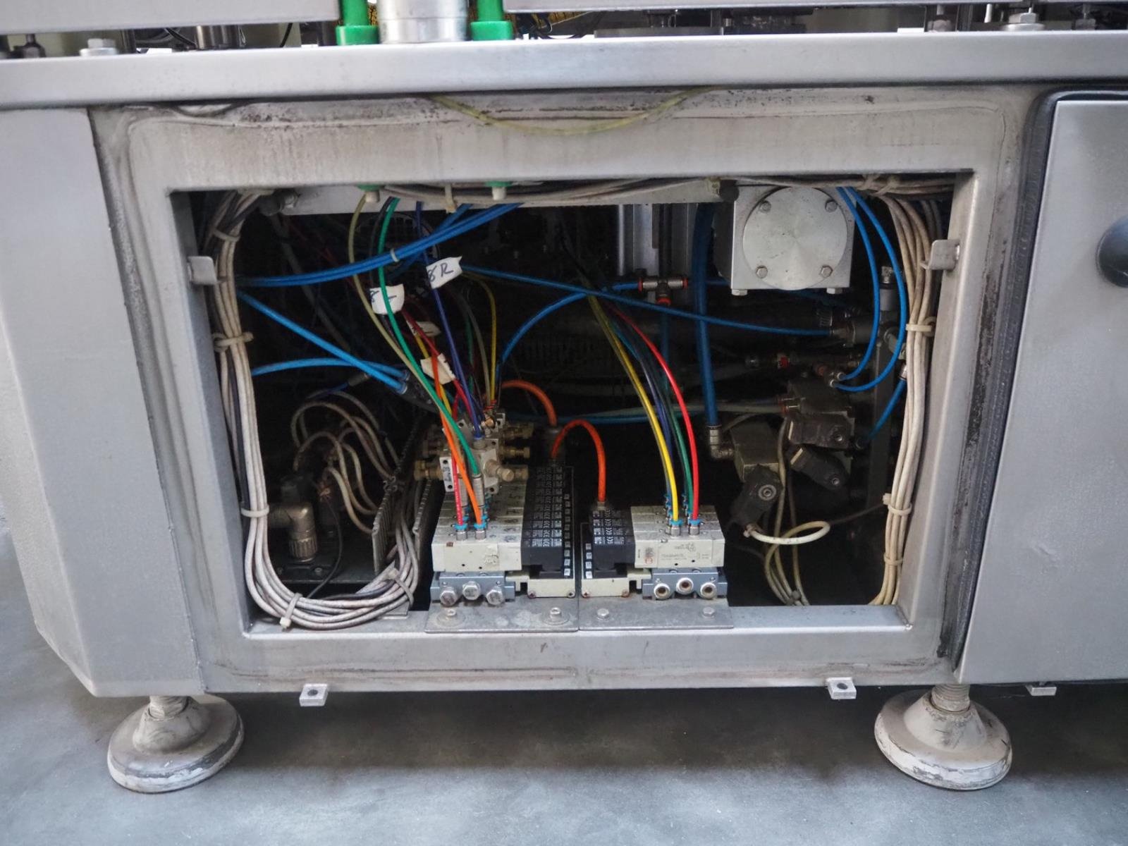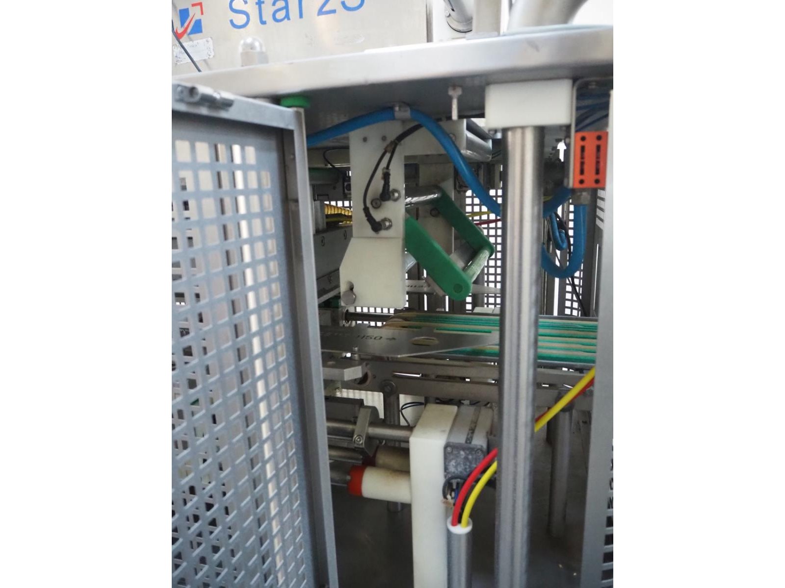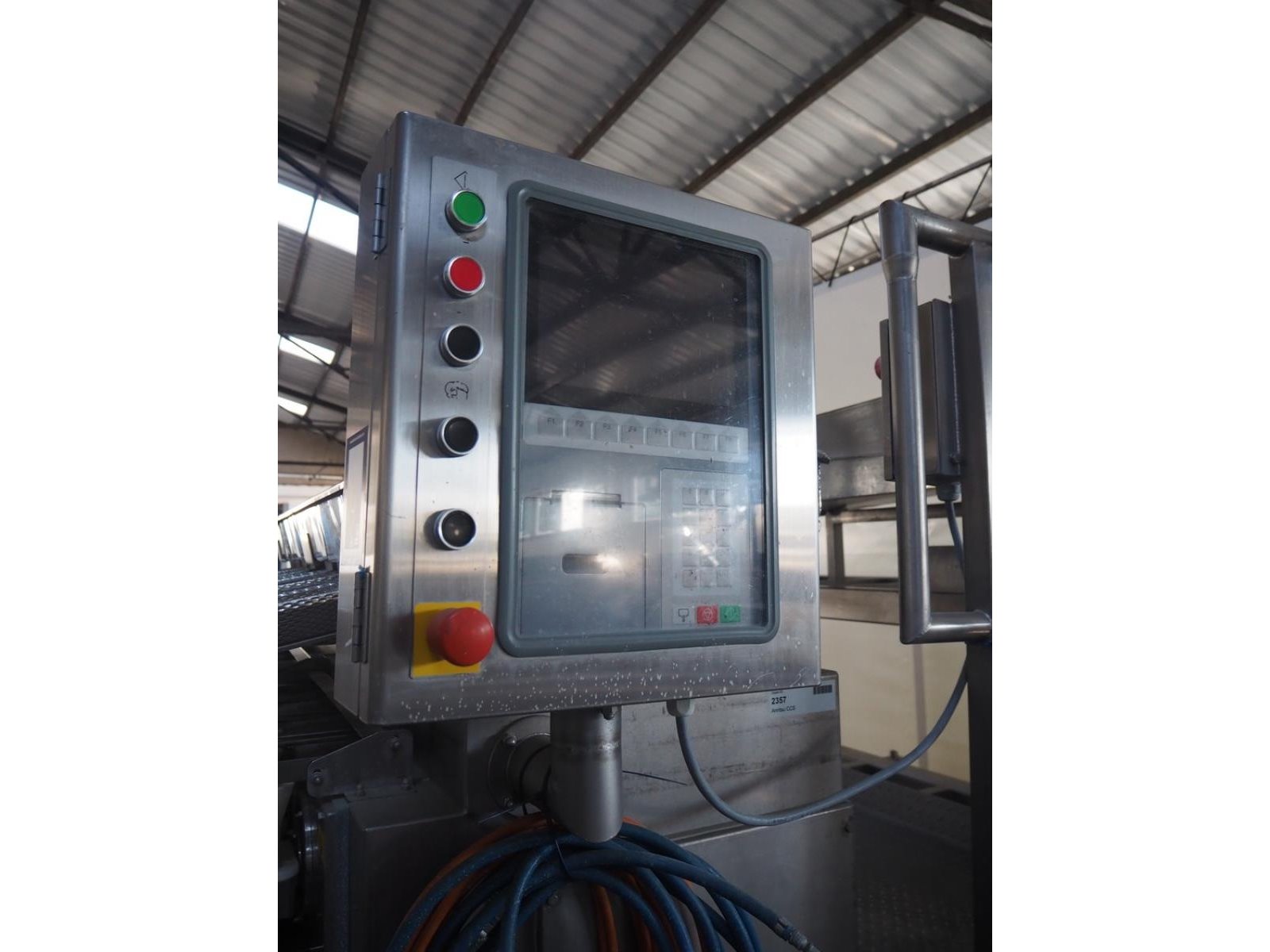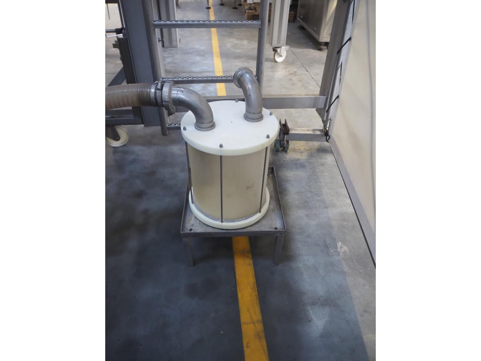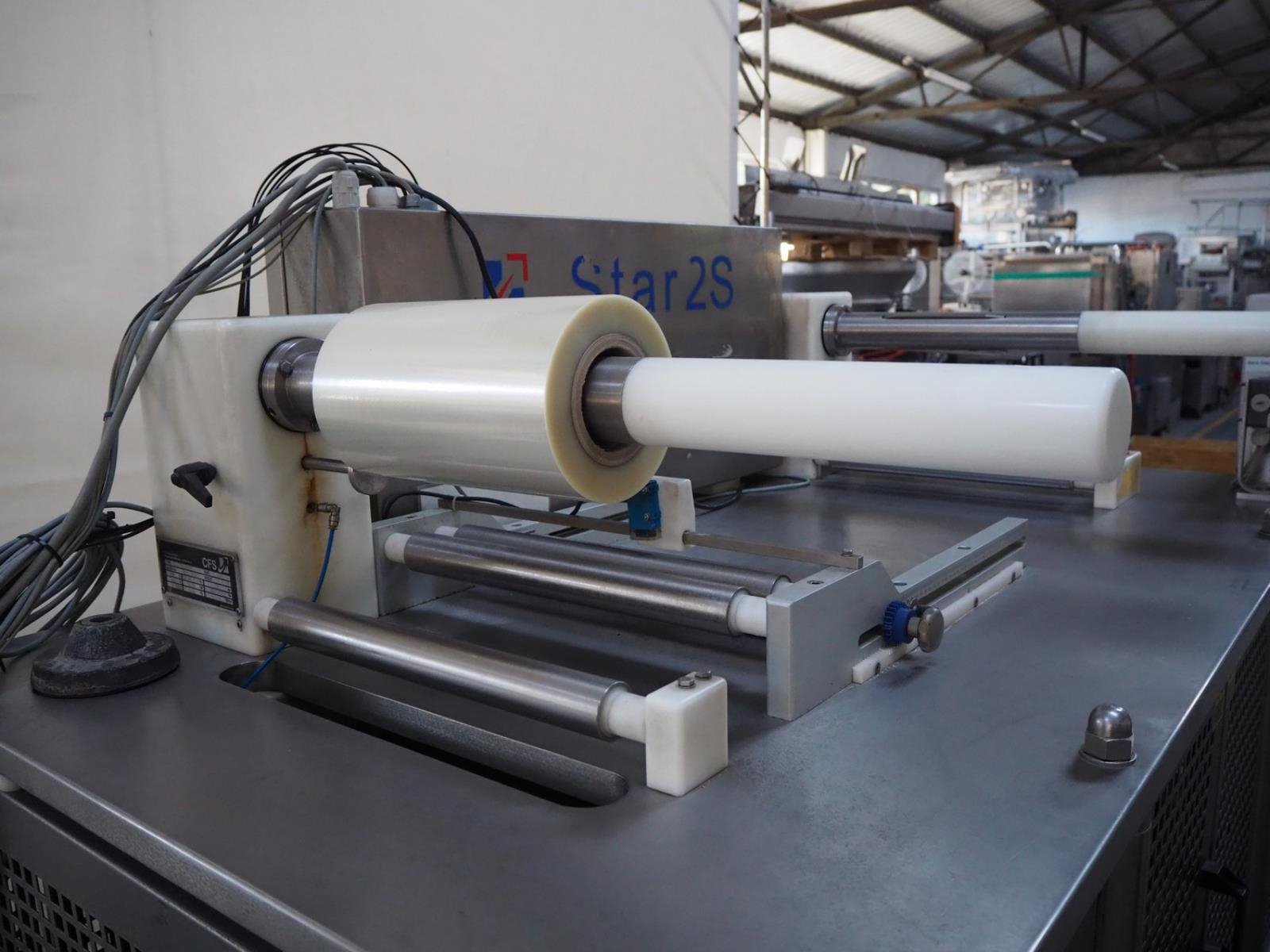 Anritsu/CFS mobile weighing and tray sealing line, consisting of: Anritsu 8 heads linear weigher with platform, type: KE7408AW, serial number: 460035067, year of construction: 2006, 200-240 VAC, 50/60 Hz, d= 0.1 g, capacity: 1-1000 g, maximum speed: 40 pieces per minute, s/s gutter, gutter width: 85 mm, total dimensions linear weigher: 2280 mm x 1880 mm x 2550 mm. Infeed belt, s/s frame, chain belt with dividers, distance between dividers: 295 mm, dividers height: 15 mm, belt width: 130 mm, total dimensions infeed belt: 3500 mm x 550 mm x 1210 mm. CFS traysealer, type: STAR2S, number: 695-113C, year of construction: 2005, 400 V, 3 Ph, 50 Hz, 14.5 A, 10 kW, weight: 1500 kg, infeed belt width: 150 mm, film width: 260 mm, dimensions dyes: (3x) 145 mm x 110 mm, total dimensions traysealer: 3800 mm x 1100 mm x 1850 mm. Vacuum pump Pallet with parts.