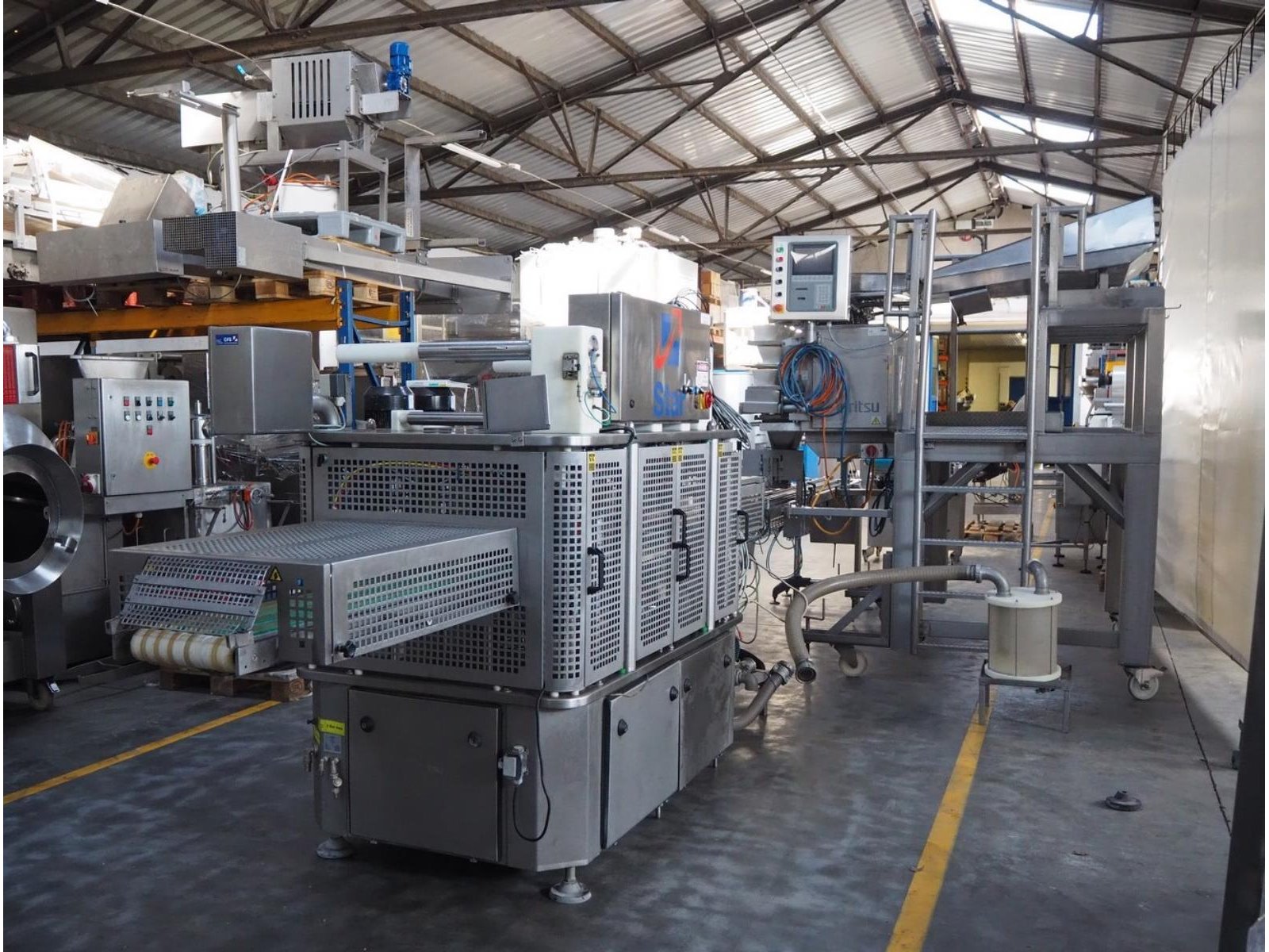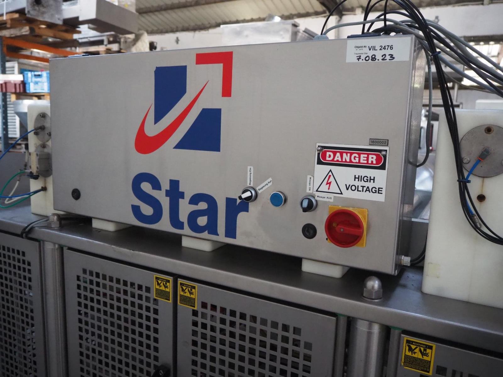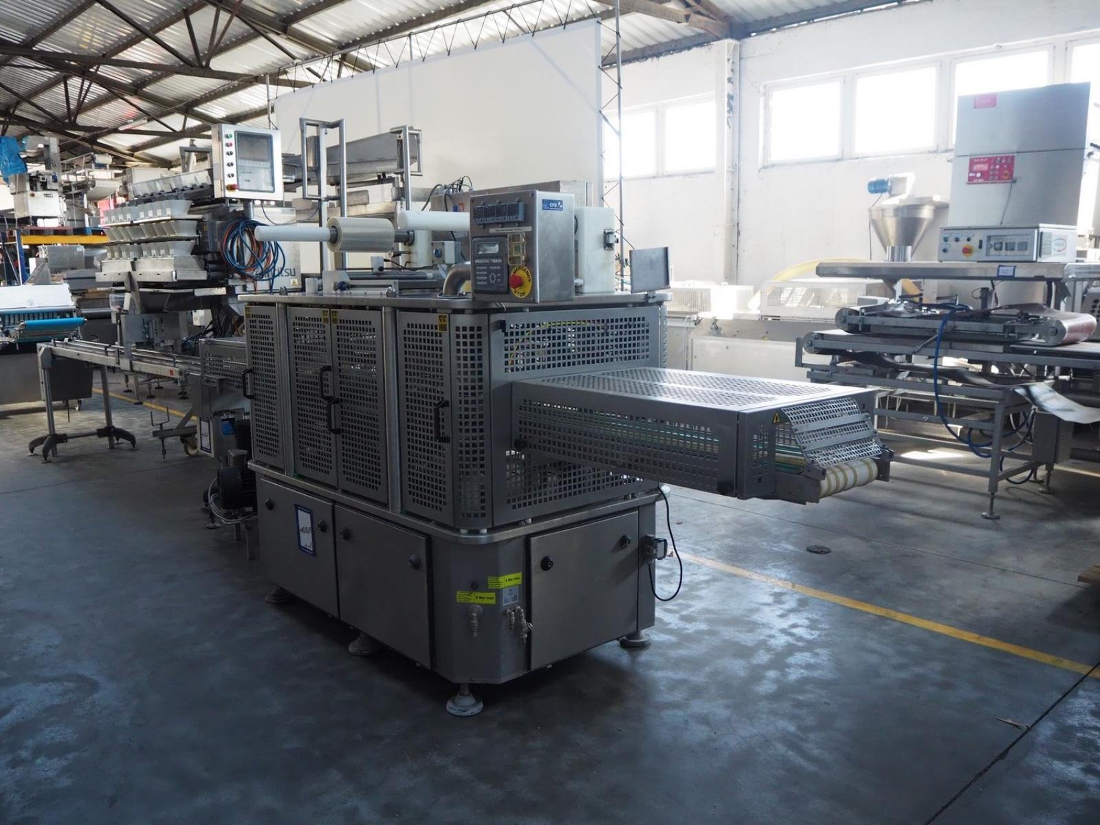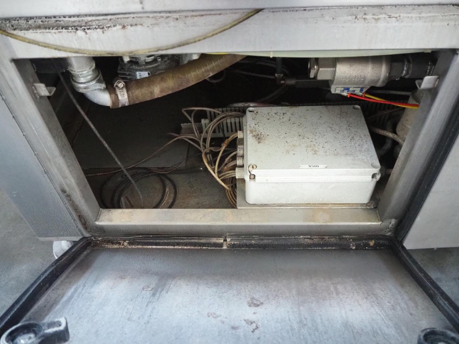 Anritsu/CFS mobile weighing and tray sealing line, consisting of: Anritsu 8 heads linear weigher with platform, type: KE7408AW, serial number: 460035067, year of construction: 2006, 200-240 VAC, 50/60 Hz, d= 0.1 g, capacity: 1-1000 g, maximum speed: 40 pieces per minute, s/s gutter, gutter width: 85 mm, total dimensions linear weigher: 2280 mm x 1880 mm x 2550 mm. Infeed belt, s/s frame, chain belt with dividers, distance between dividers: 295 mm, dividers height: 15 mm, belt width: 130 mm, total dimensions infeed belt: 3500 mm x 550 mm x 1210 mm. CFS traysealer, type: STAR2S, number: 695-113C, year of construction: 2005, 400 V, 3 Ph, 50 Hz, 14.5 A, 10 kW, weight: 1500 kg, infeed belt width: 150 mm, film width: 260 mm, dimensions dyes: (3x) 145 mm x 110 mm, total dimensions traysealer: 3800 mm x 1100 mm x 1850 mm. Vacuum pump Pallet with parts.