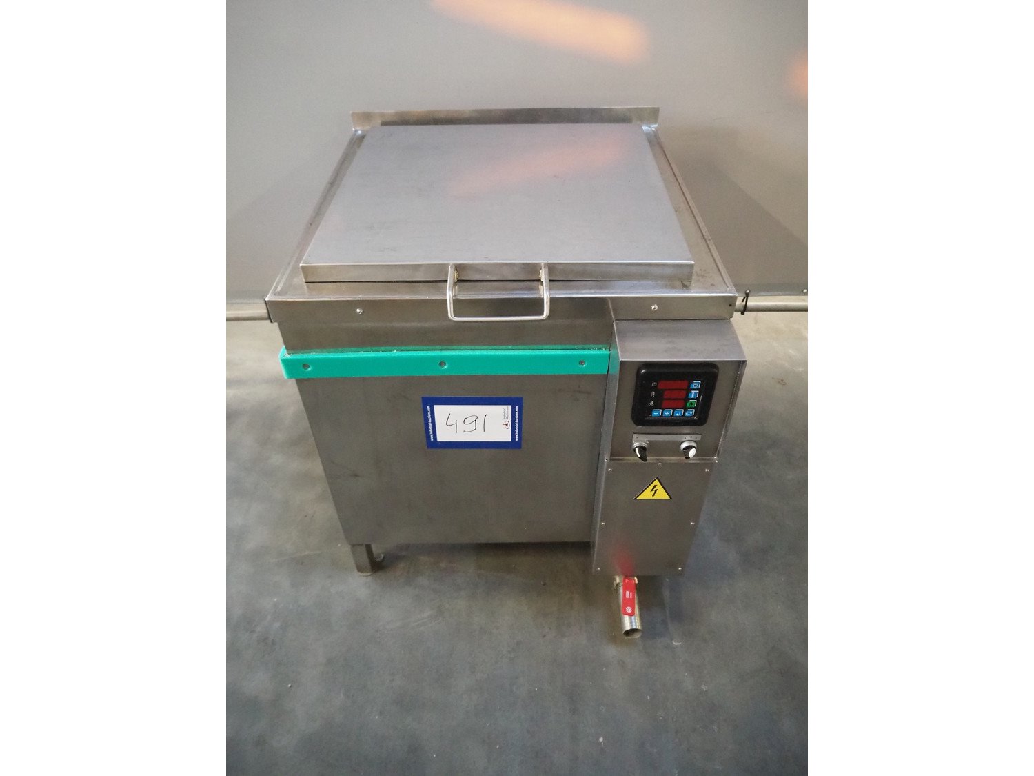S/s cooking vessel, inside dimensions: 640 mm x 640 mm x 500 mm, total dimensions: 800 mm x 920 mm x 900 mm. Overhauled by Servo.