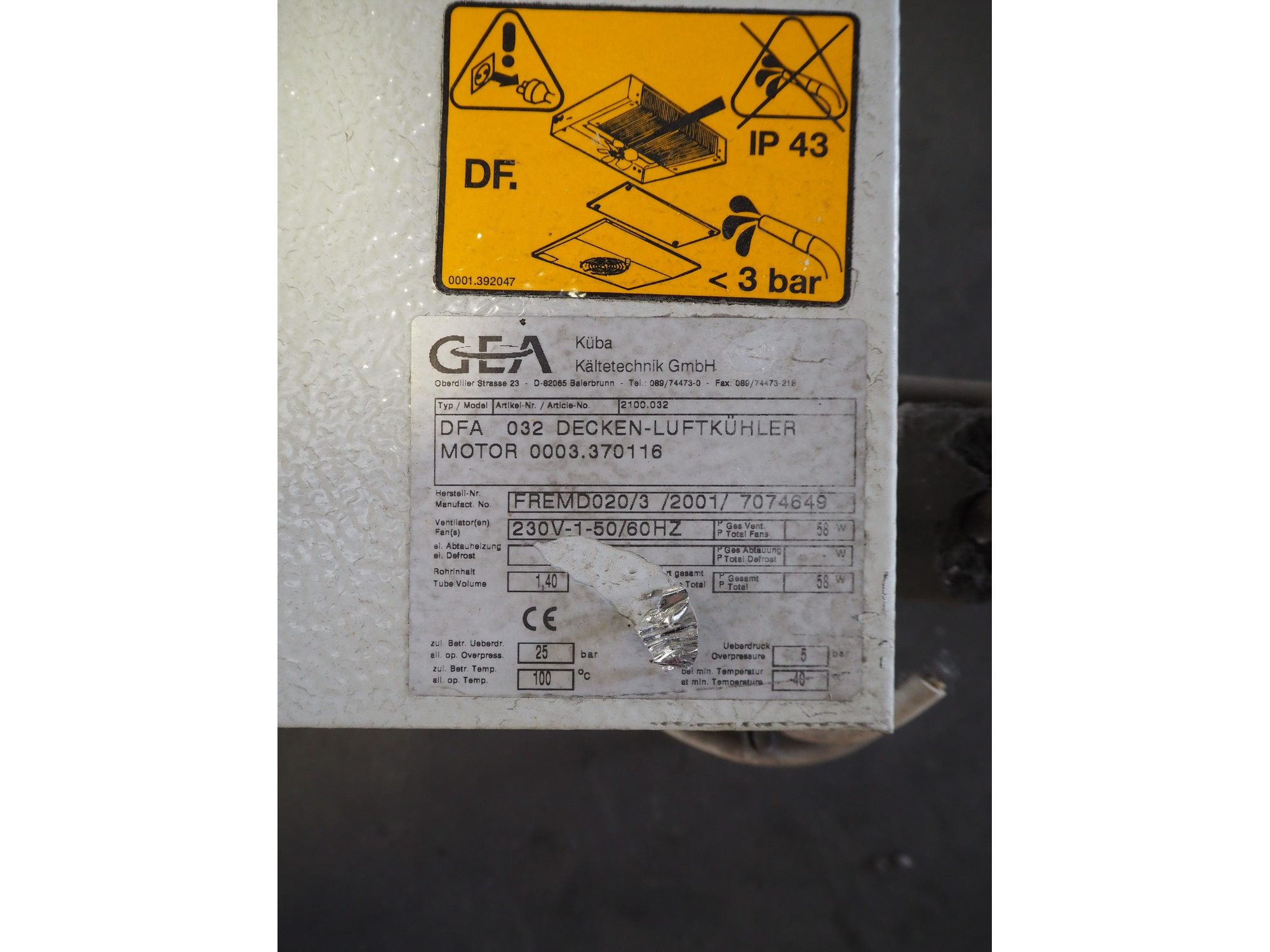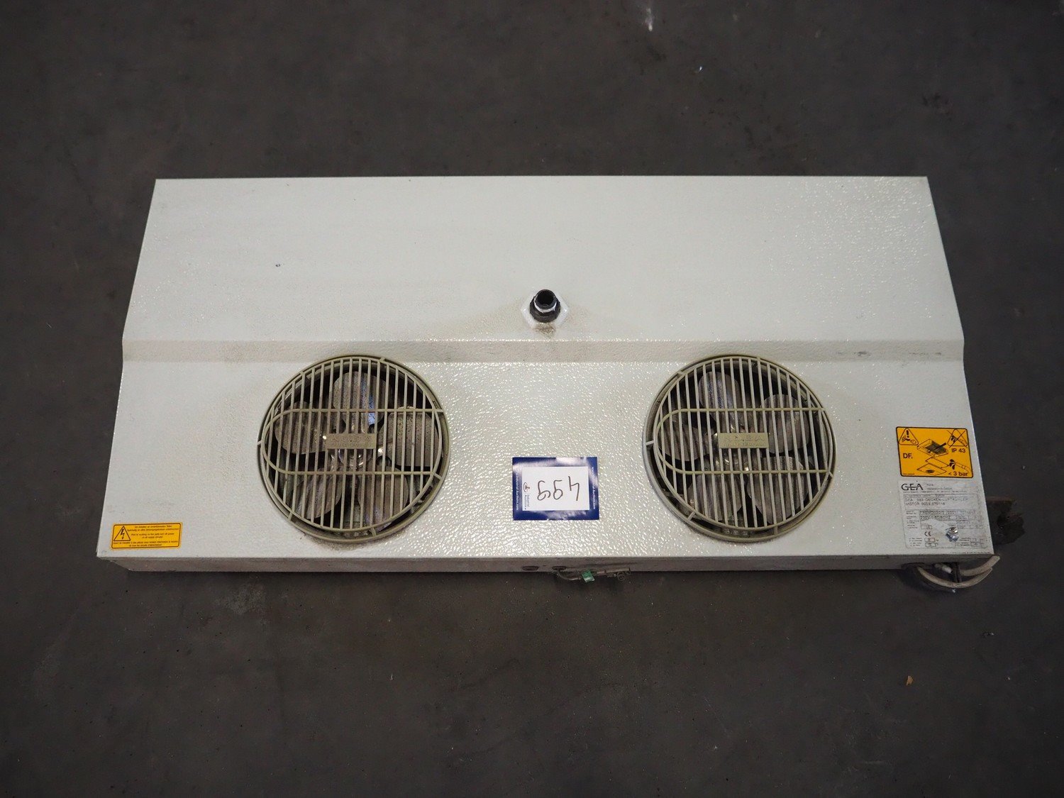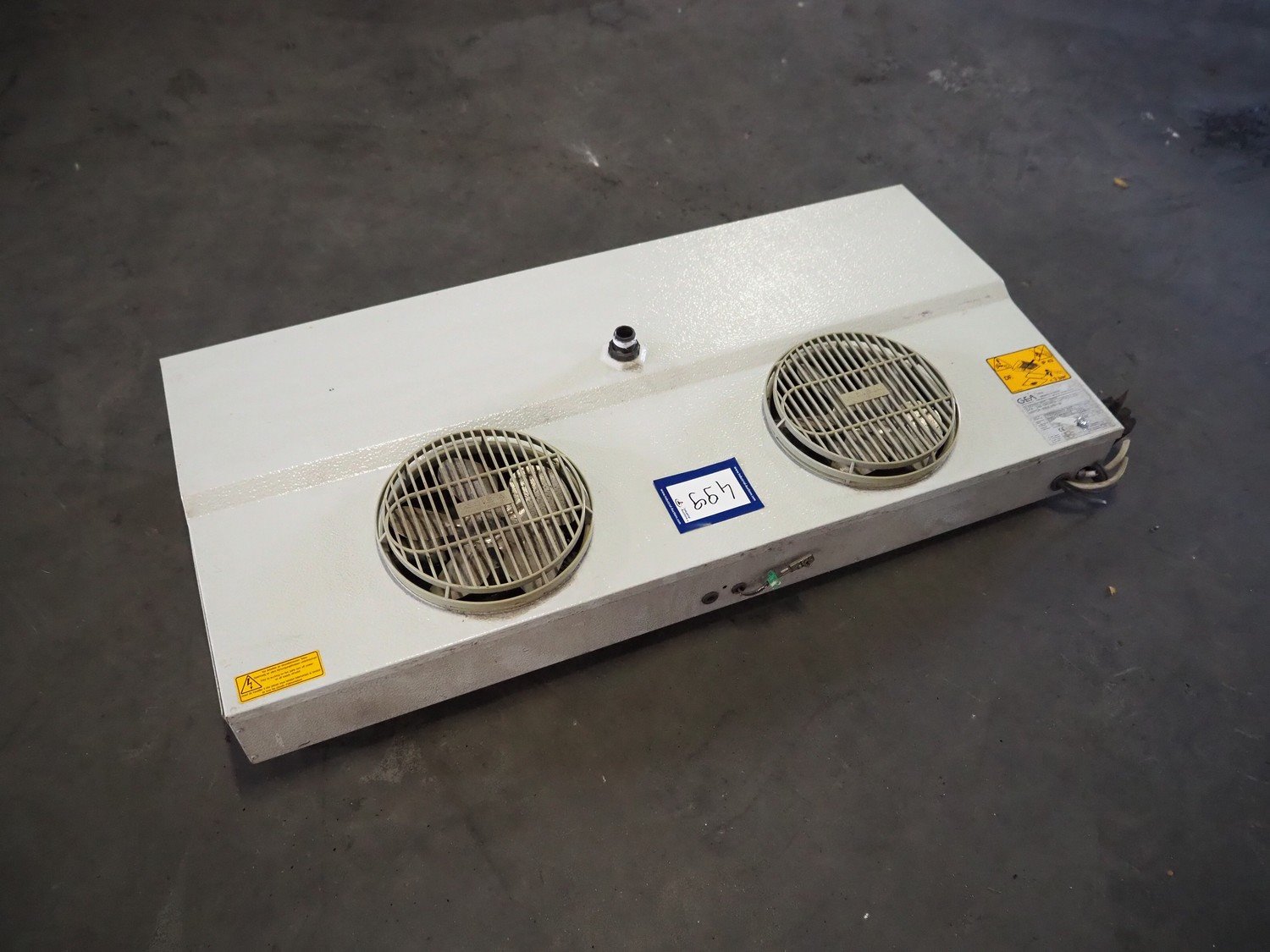 GEA Küba Kältetechnik GmbH evaporator, 2 fans, type: DFA 032 Decken-Luftkühler, 230 V, 1 Ph, 50/60 Hz, dimensions: 1030 mm x 520 mm x 150 mm.