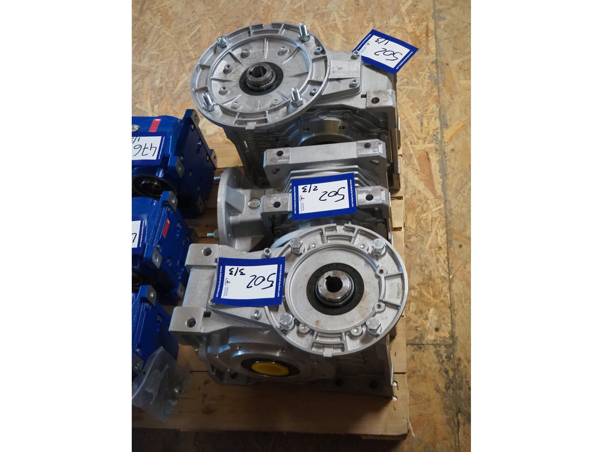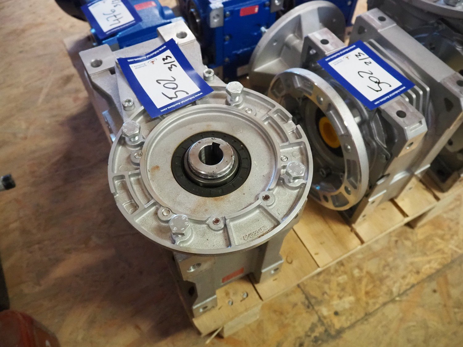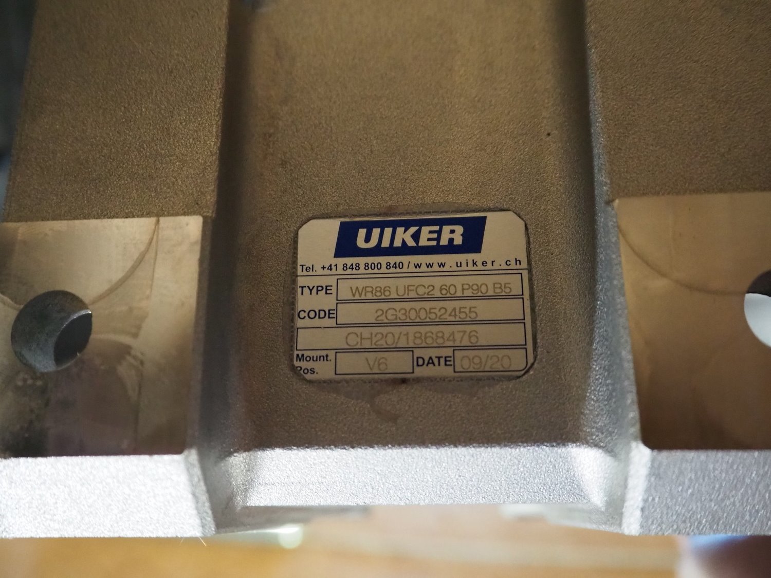 2 Bonfiglioli gears, type: W110 U 40 P100 B5 UH1, and W110 040 U P90 B5 LS, dimensions: (2x) 360 mm x 250 mm x 300 mm 1 UIKER gear, type: WR86 UFC2 60 P90 B5, dimensions: 300 mm x 200 mm x 250 mm.