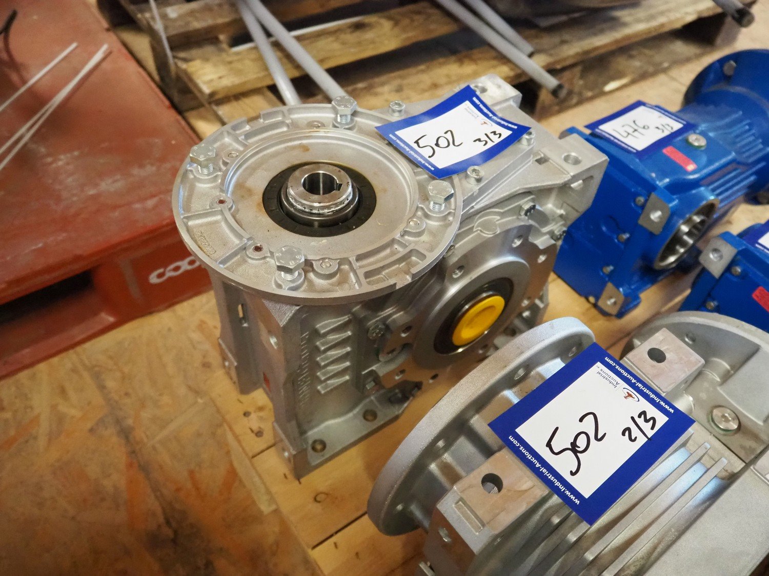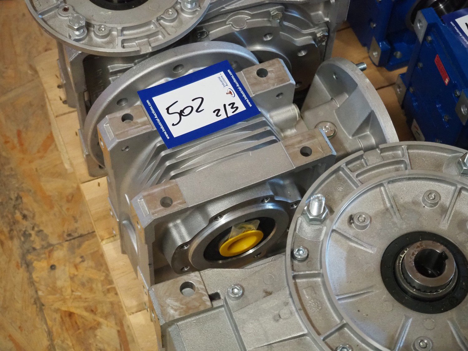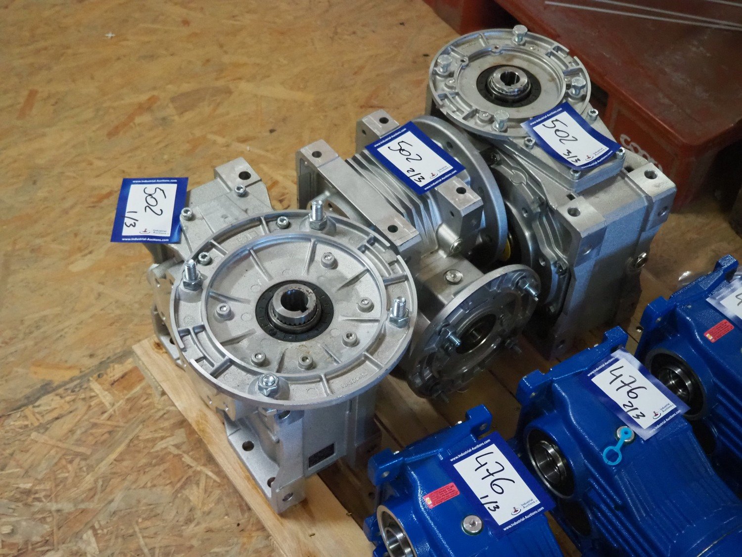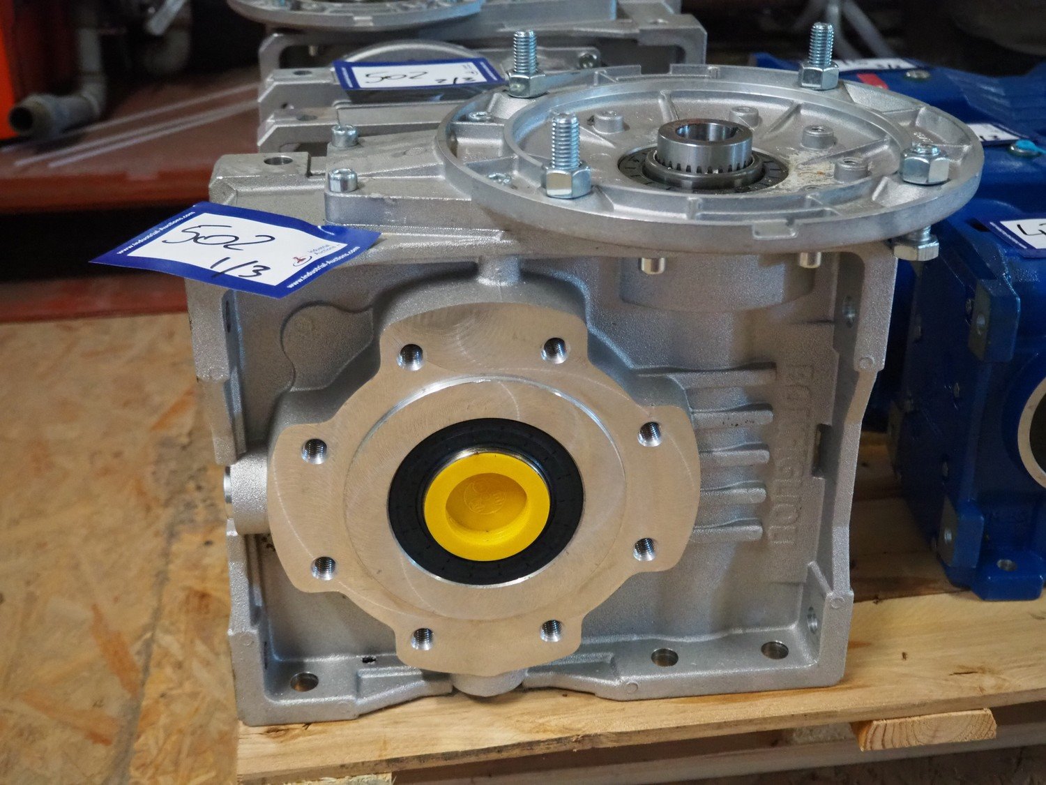 2 Bonfiglioli gears, type: W110 U 40 P100 B5 UH1, and W110 040 U P90 B5 LS, dimensions: (2x) 360 mm x 250 mm x 300 mm 1 UIKER gear, type: WR86 UFC2 60 P90 B5, dimensions: 300 mm x 200 mm x 250 mm.