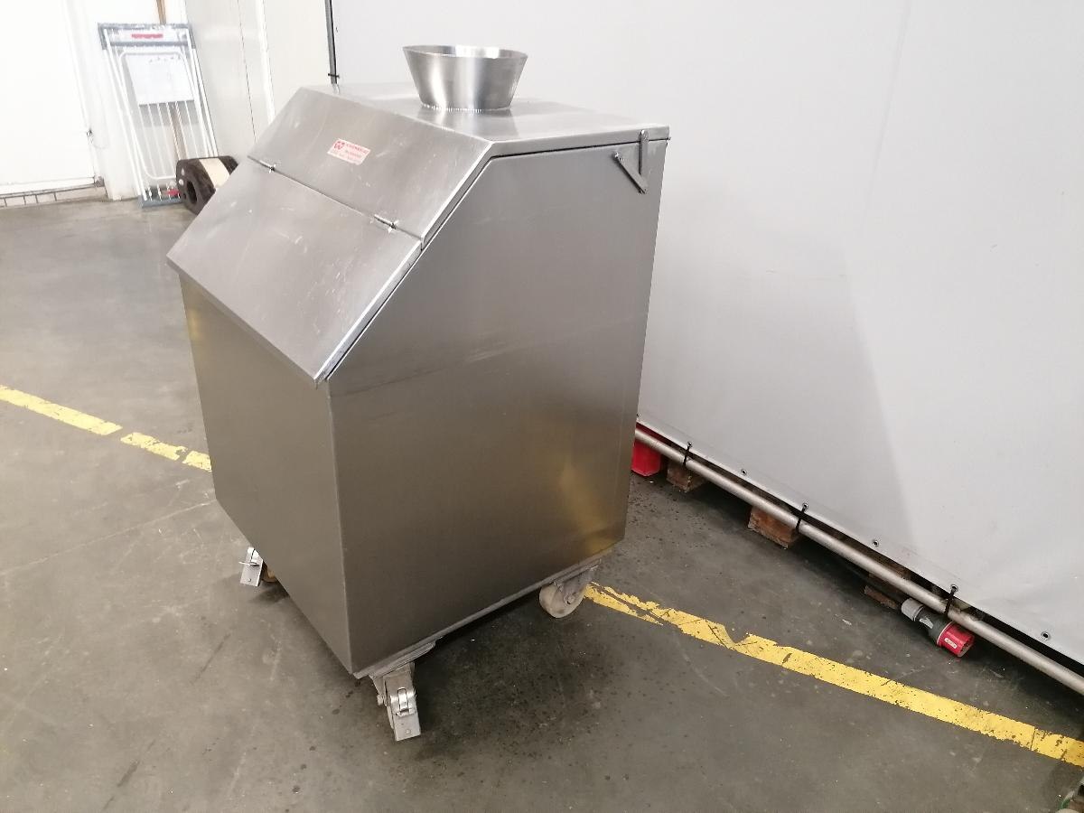 R. Widmer AG mobile s/s ice storage tank, inside dimensions: 690 mm x 700 mm x 700 mm, total dimensions: 760 mm x 750 mm x 1300 mm.