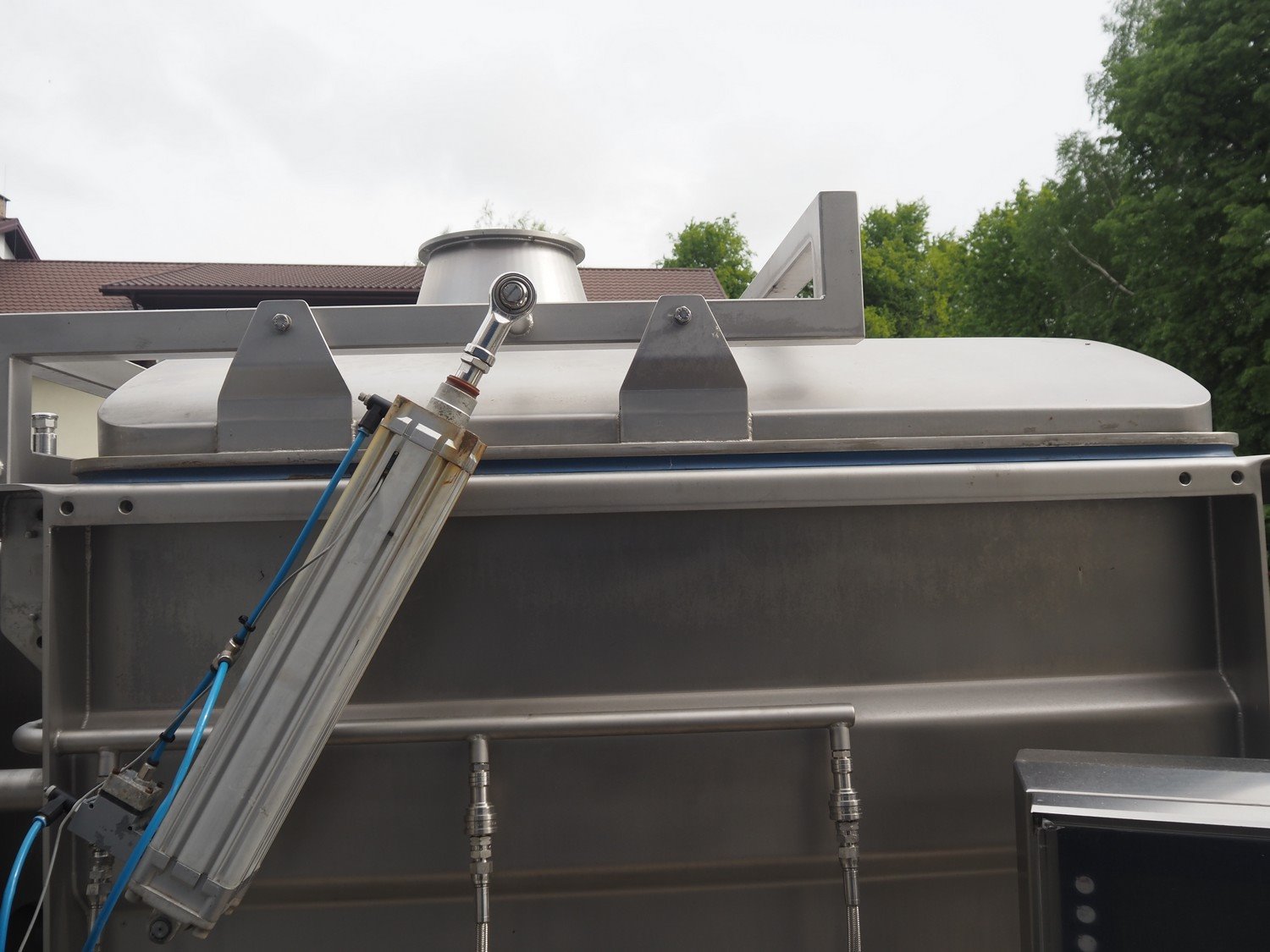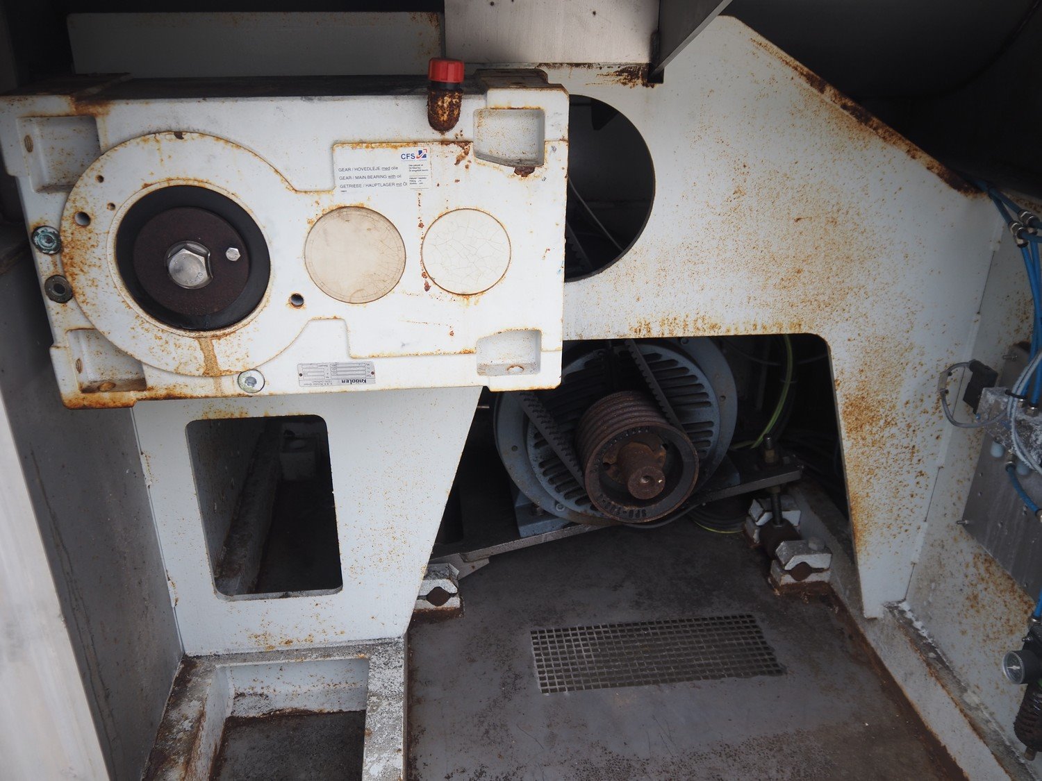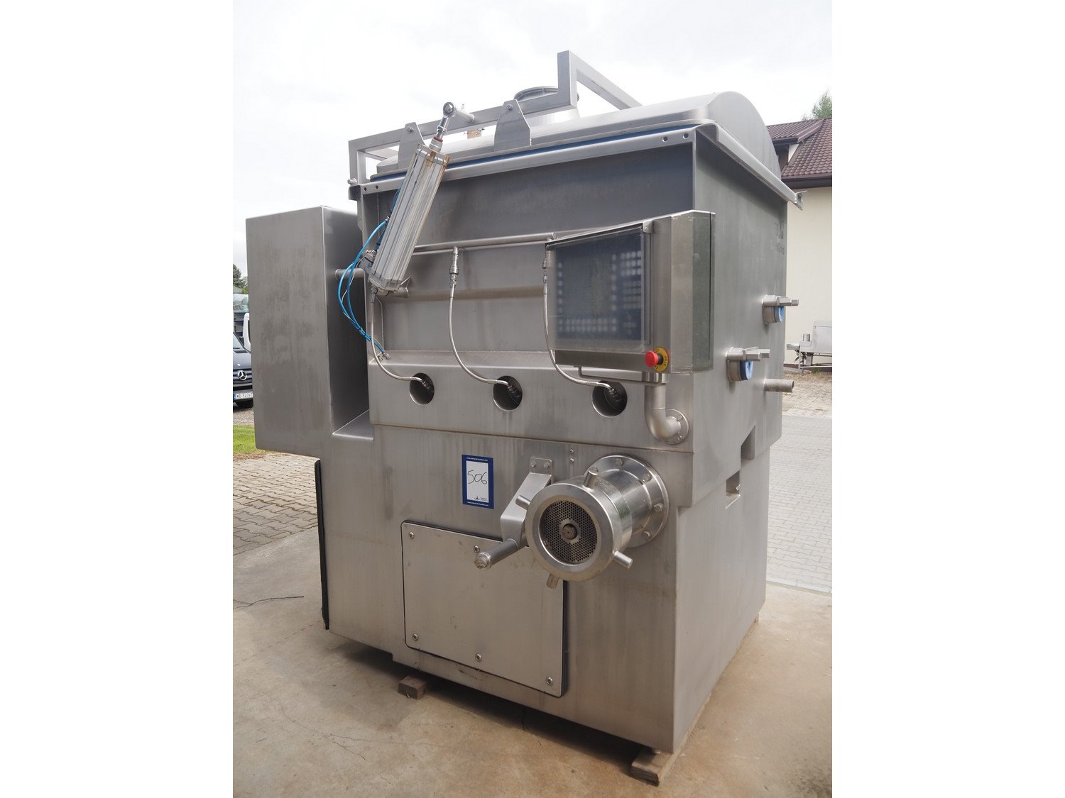 CFS Slagelse A/S double shaft mixer-grinder with nitrogen injection, type: Combigrind-1500, machine number: 5000064591, year of construction: 2005, 400 V, 50 Hz, 143 A, 77 kW, plate diameter: 200 mm, total dimensions: 2300 mm x 2050 mm x 2700 mm.