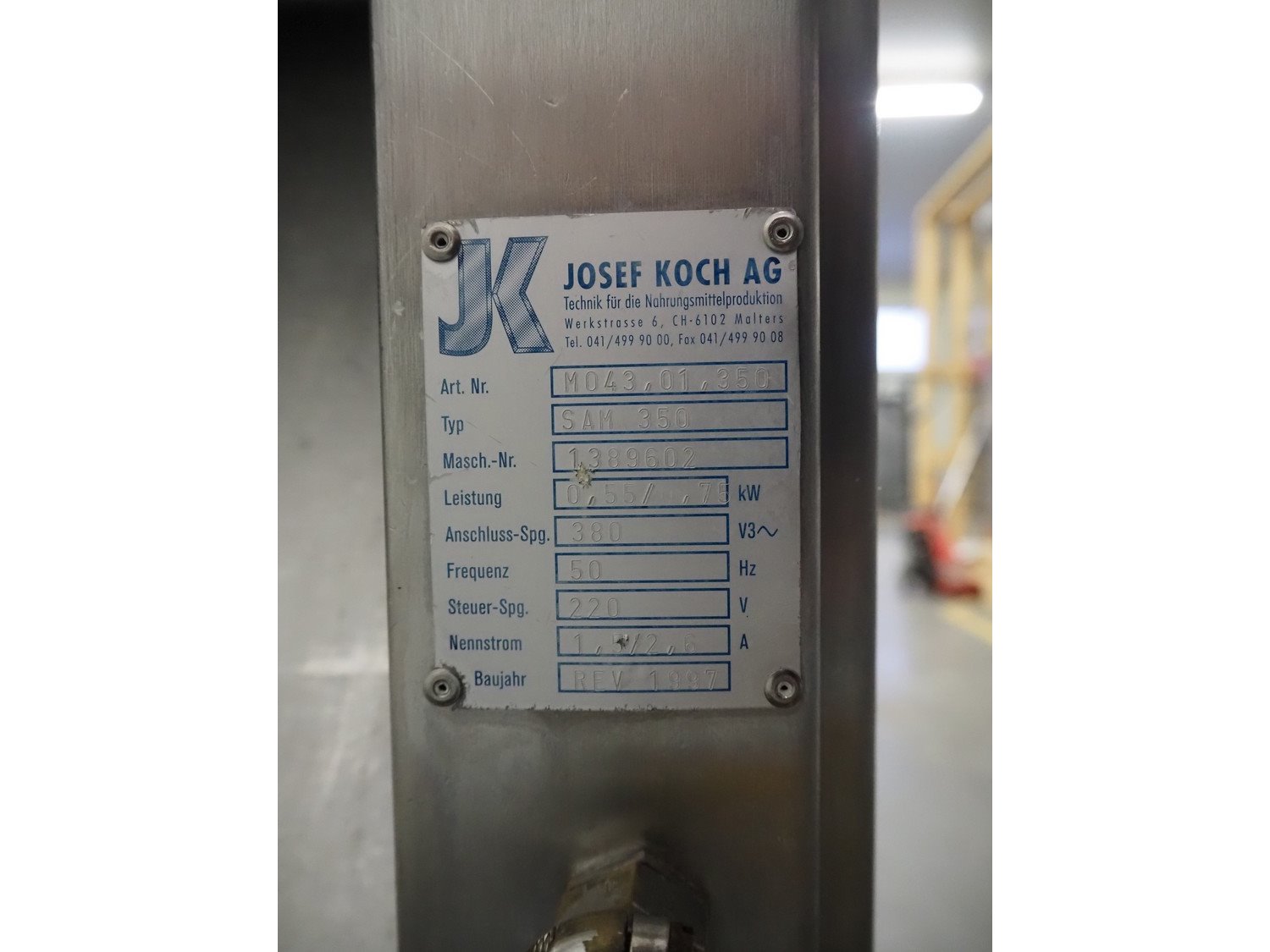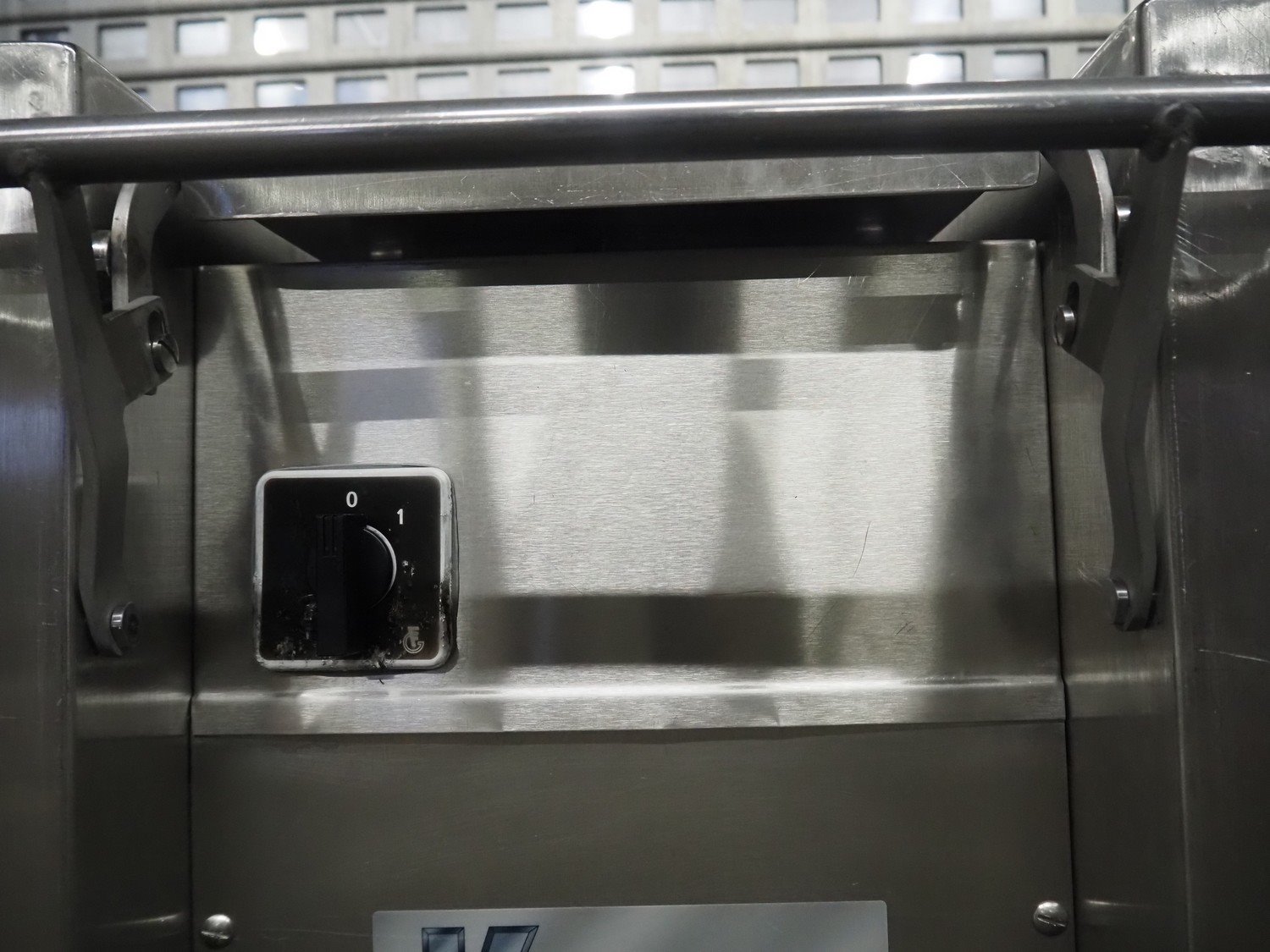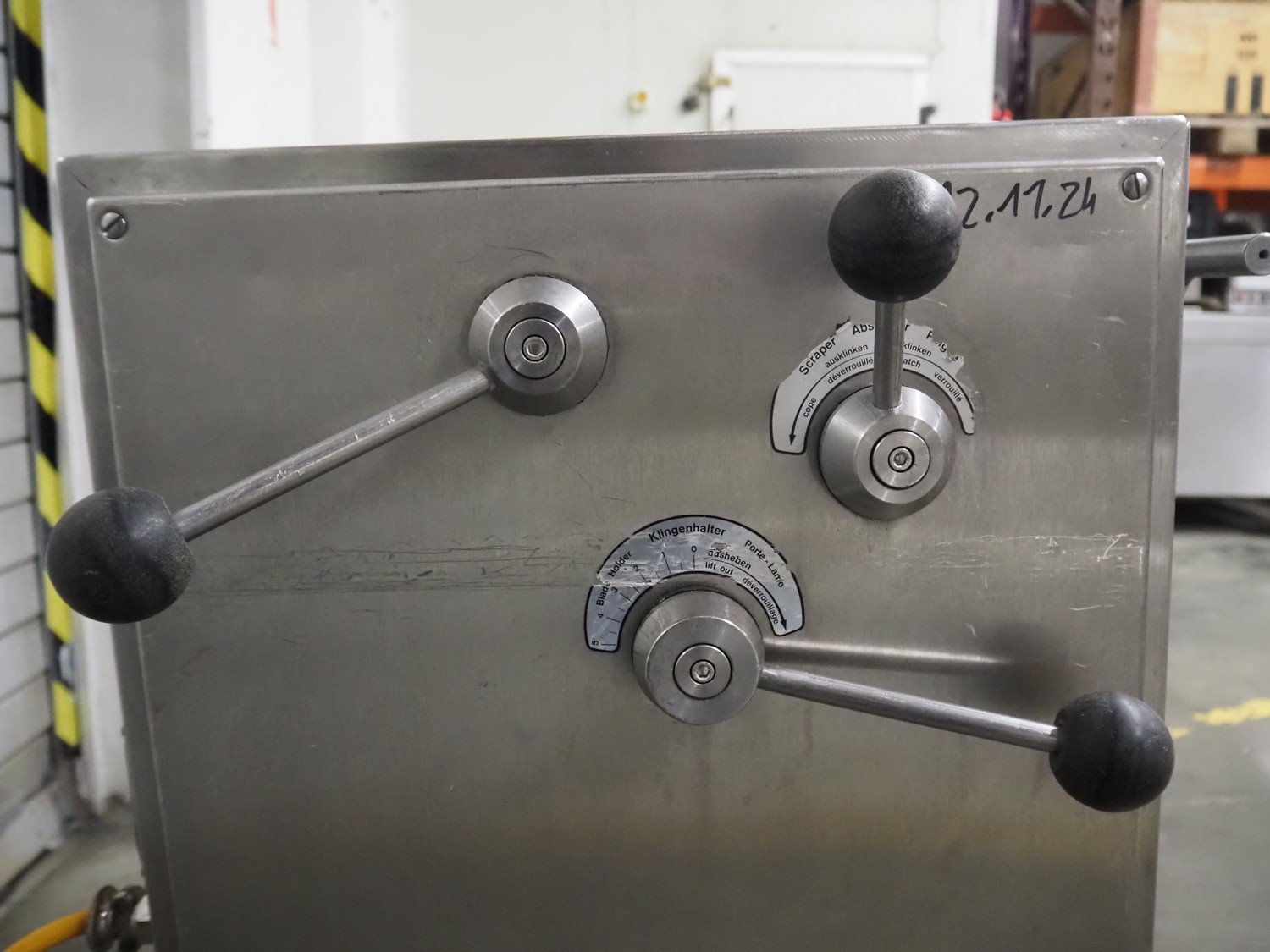 Maja mobile skinning machine, type: SAM 350, machine number: 1389602, year of construction: 1997, 380 V, 3 Ph, 50 Hz, 2.6 A, 0.55/0.75 kW, working width: 290 mm, total dimensions: 620 mm x 650 mm x 980 mm.