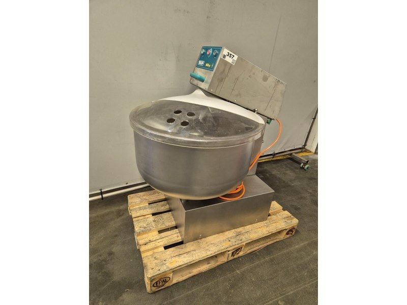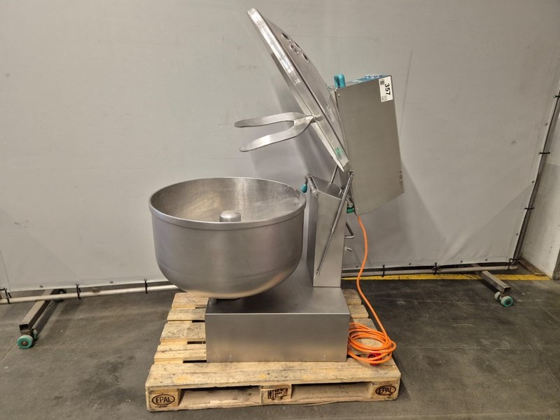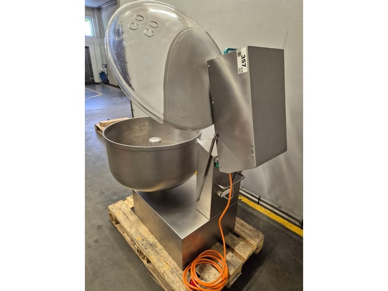 Talsa bowl mixer on s/s frame, model: MIX150, version: P, serial number: 1609052, year of construction: 2016, 400 V, 3 Ph, 50 Hz, inside dimensions: Ø 700 mm x 400 mm, total dimensions: 1200 mm x 900 mm x 1900 mm. Overhauled by Servo in 2024.